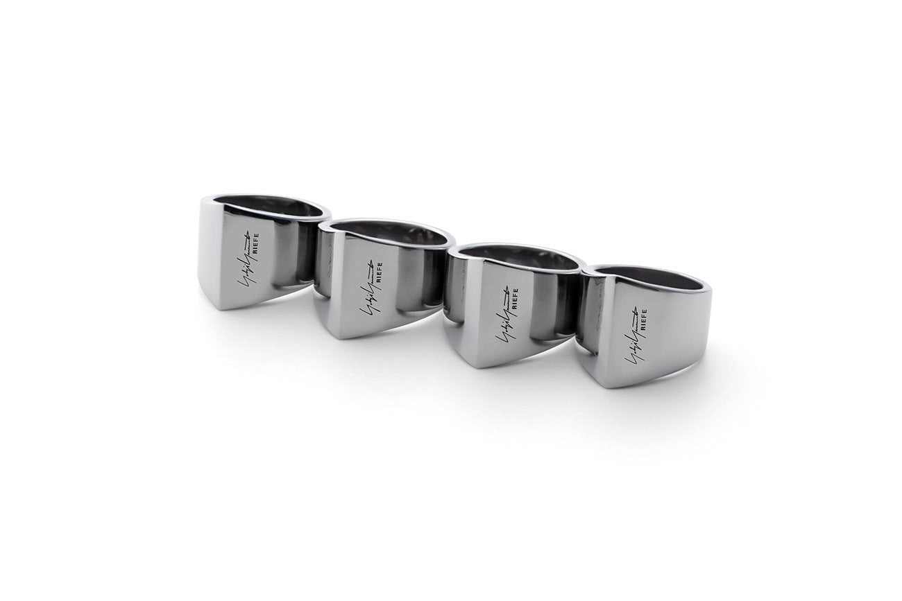 这枚戒指通过其关节设计和沉重的存在感展现了力量,由银925制成并采用黑色涂层。受到黑色在时尚中多样性的启发,它在珠宝中引入了新的诠释。佩戴四枚戒指能展现其全部魅力。