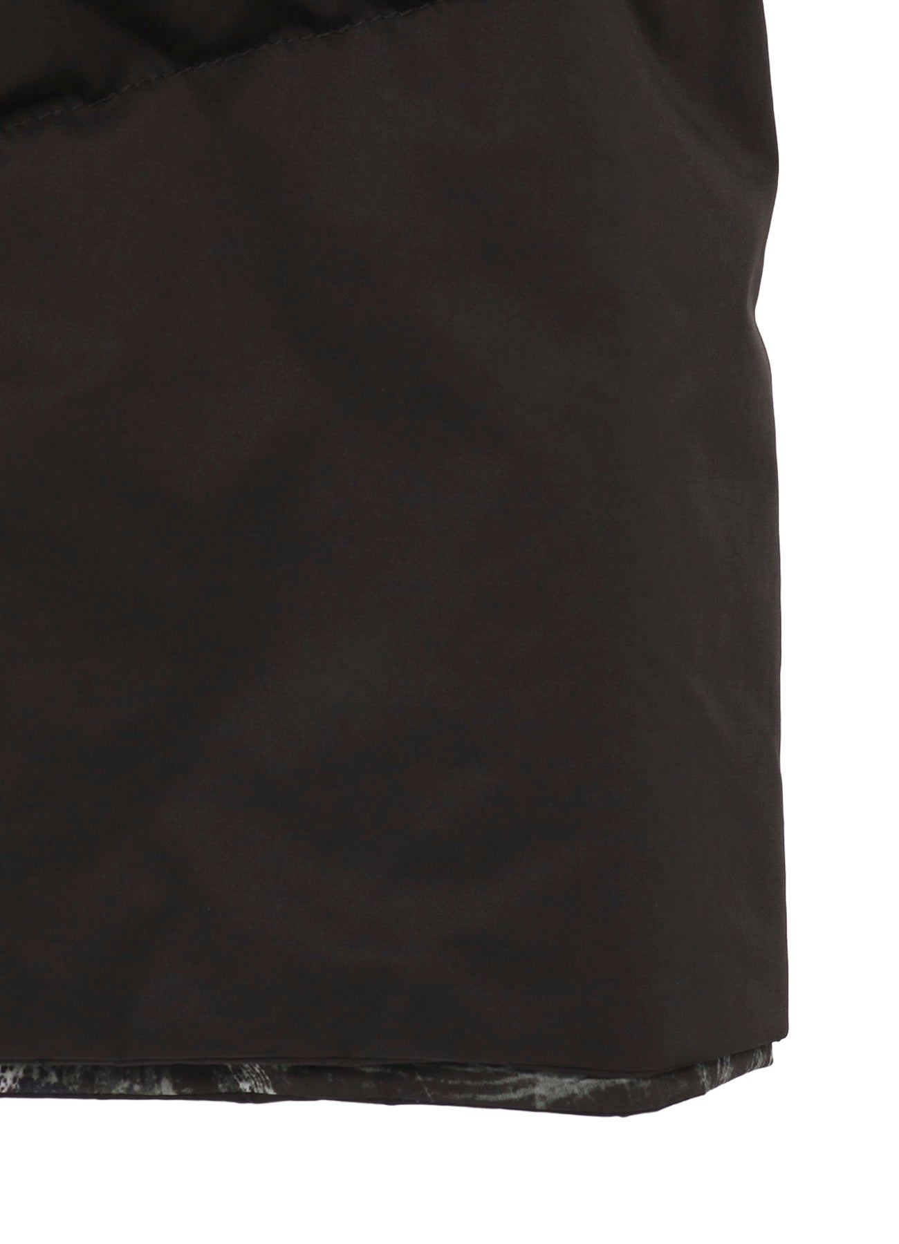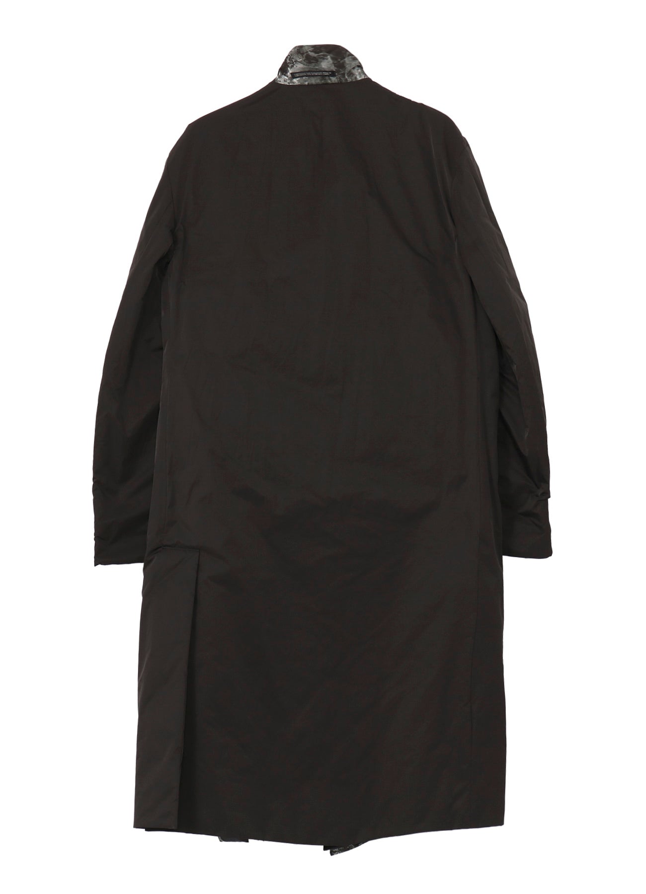 Yohji Yamamoto POUR HOMME A/W 2025-26系列的这款加棉长外套采用经纬均为精细聚酯纱的斜纹布制成,手感光滑。面料在京都的印刷工厂通过喷墨印花实现独特图案,为这件精致单品增添别样风采。
