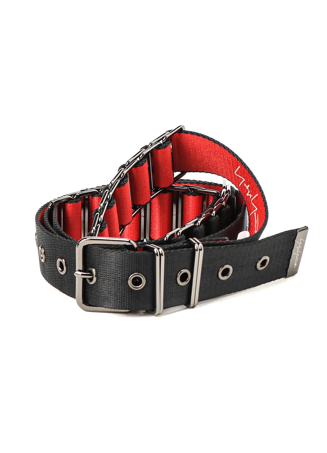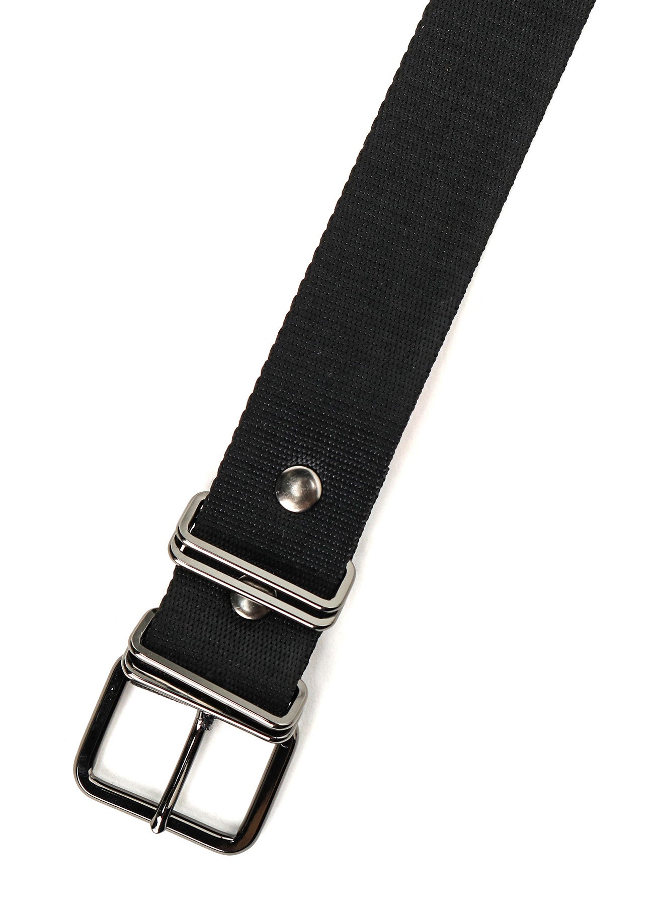 这是一个使用30毫米宽单面转印尼龙带的管状腰带。该带子编织成一个设计,展示了圆形金属丝压缩横截面形状转变为方形管的样子。