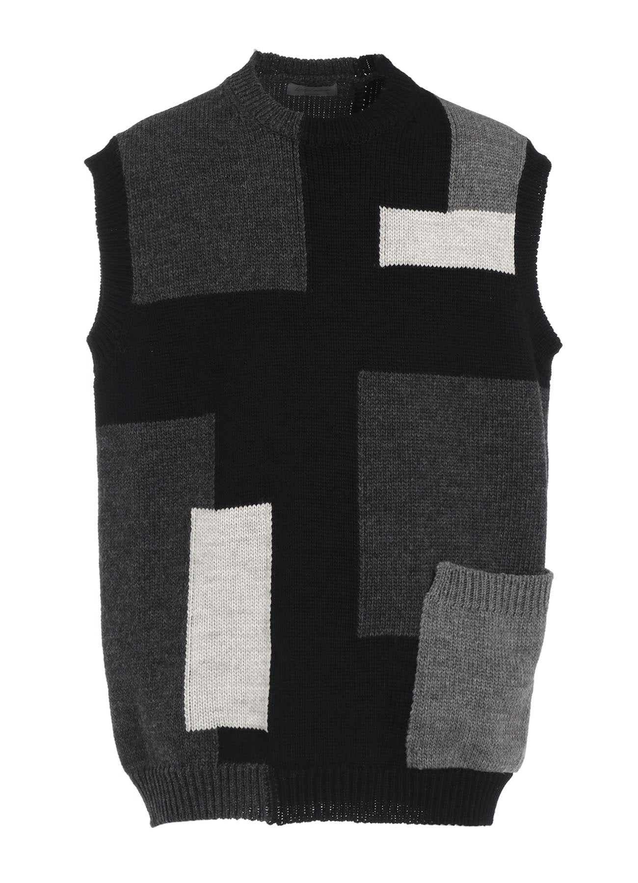 这款针织马甲由100%羊毛制成,采用混纺四种颜色的英国羊毛。它的设计类似于拼布图案,具有羊毛织物特有的温暖和质感,不仅在视觉上引人注目,而且保暖。