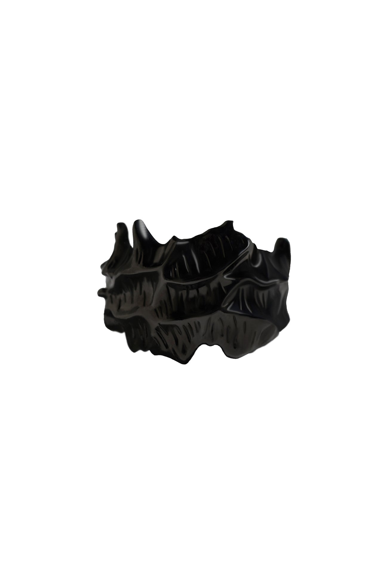 灵感源于“美丽事物是奇怪的”主题,这款在Yohji Yamamoto POUR HOMME S/S 2025系列第8和第20款展示的戒指从海洋中奇特而美丽的生命形式中汲取灵感。海马独特的身体纹理成为图案,巧妙地将美与奇结合在其设计中。