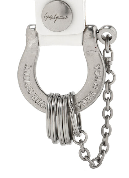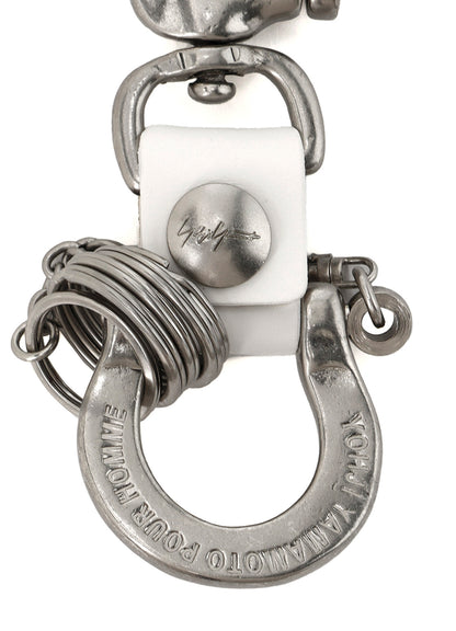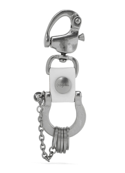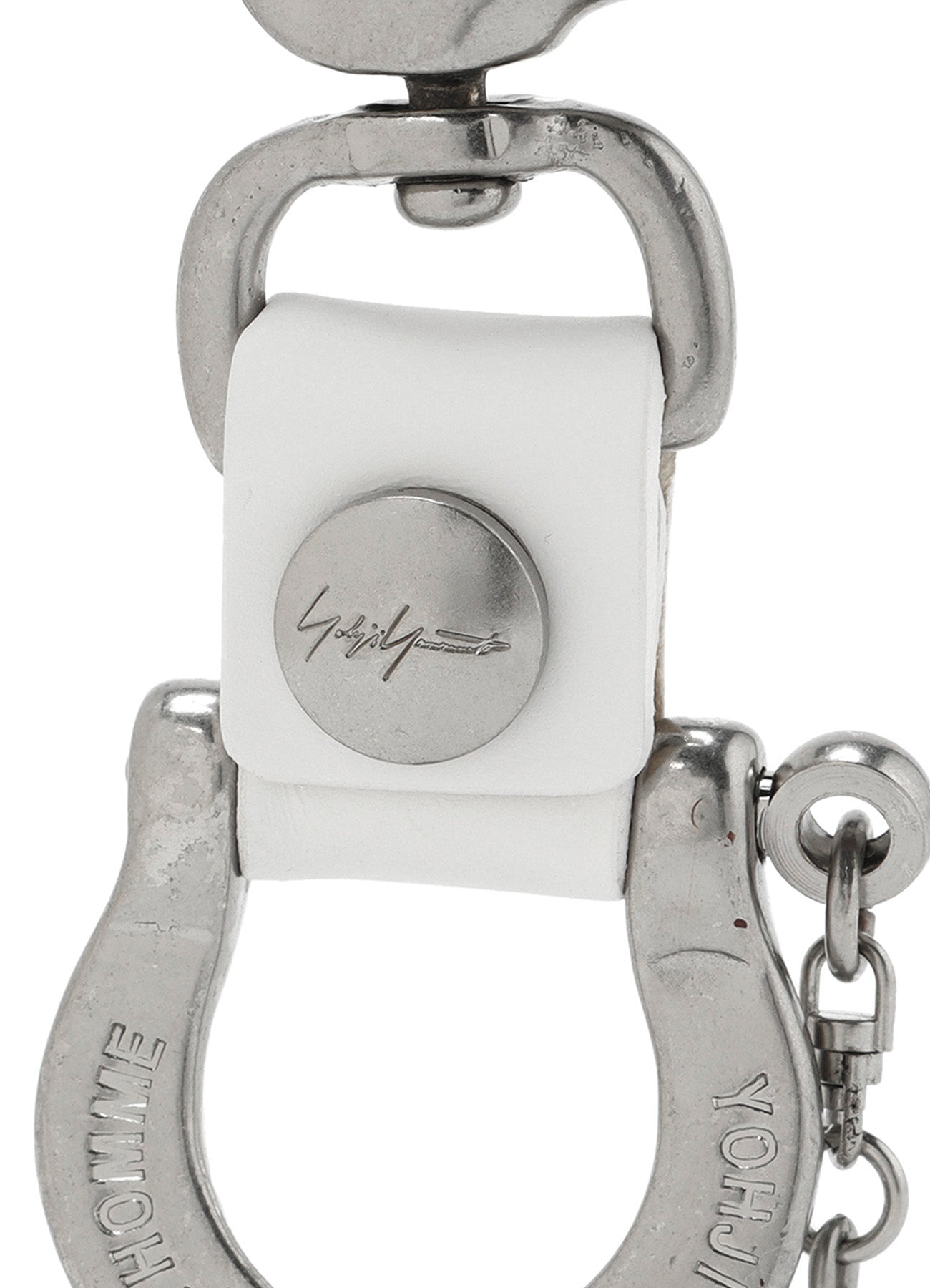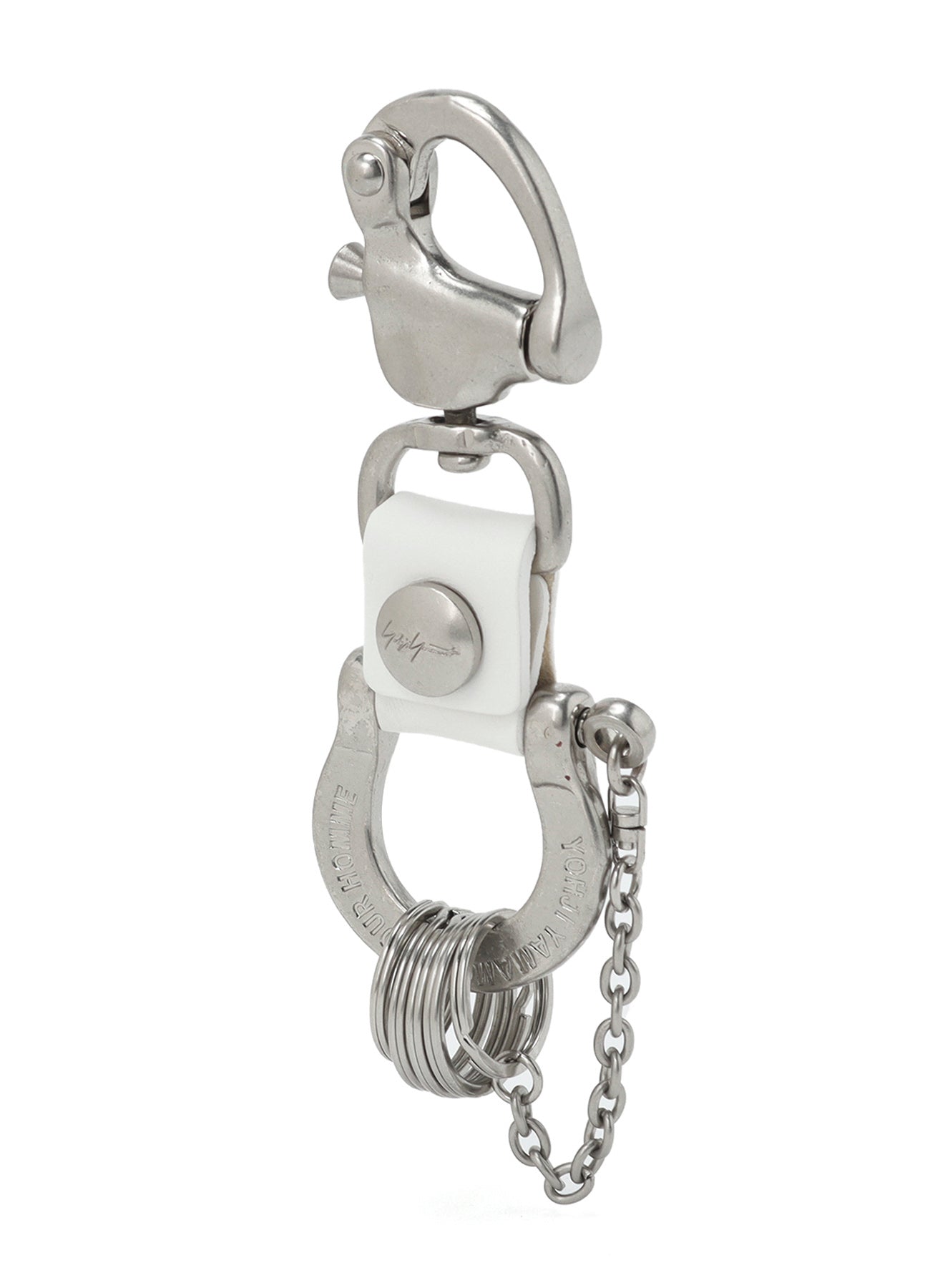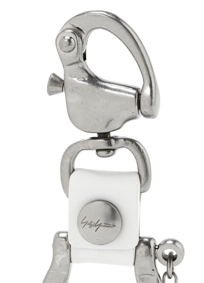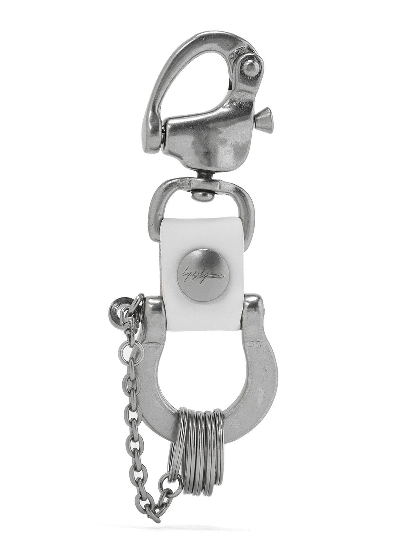 这款独特的carabiner由黄铜/铁/锌合金制成,具有Yohji Yamamoto POUR HOMME的独特雕刻,螺旋设计无需钥匙圈即可直接附加钥匙。白色皮革版本仅在THE SHOP YOHJI YAMAMOTO独家出售。