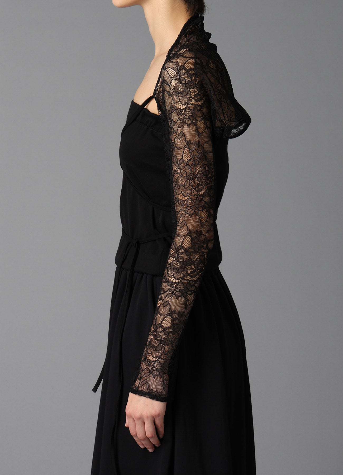 FLOWER LACE+SIGLE JERSEY SLEEVE SLIT BOLERO