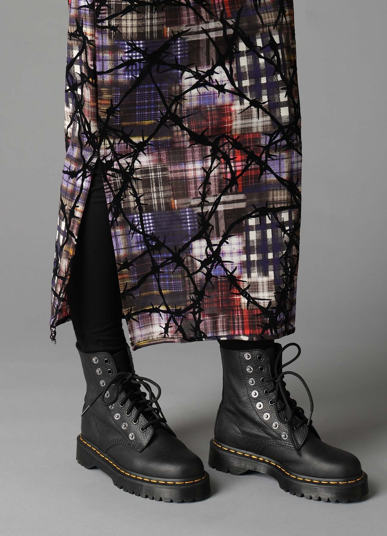 CHECK + FLORAL COMBINATION SLIT DRESS