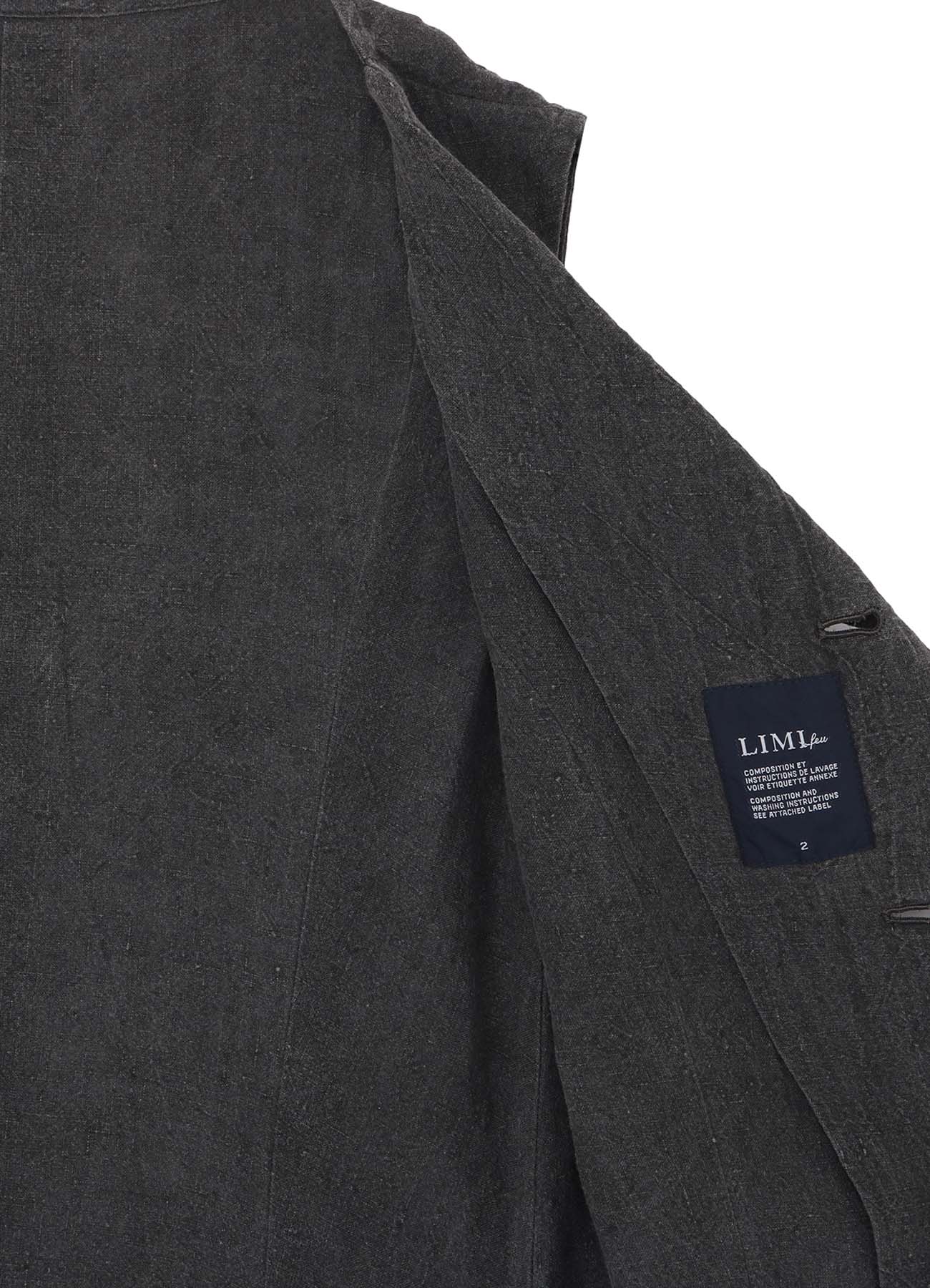This vest, made from fine flax, boasts a unique color and irregularity from ink-dyeing, giving it a distinct crinkle and texture. With a fitted silhouette that flares towards the hem, its front opening and V-neck design enhance its clean appearance. Note: Color migration may occur, especially with white clothing.