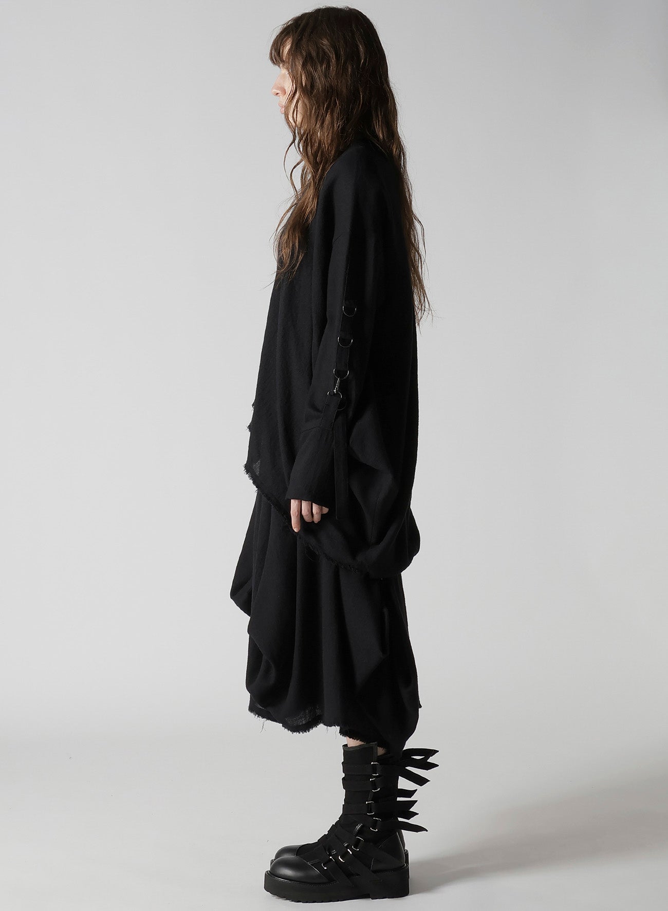 这款衬衫采用高品质羊毛制成,质地柔软轻盈,织有宽松的纱状粗斜纹,并经过fulled处理。衬衫配有可调节的D形环袖口和褶皱背部设计,增添随意风格。需要注意的是,原始边缘可能会随时间磨损。