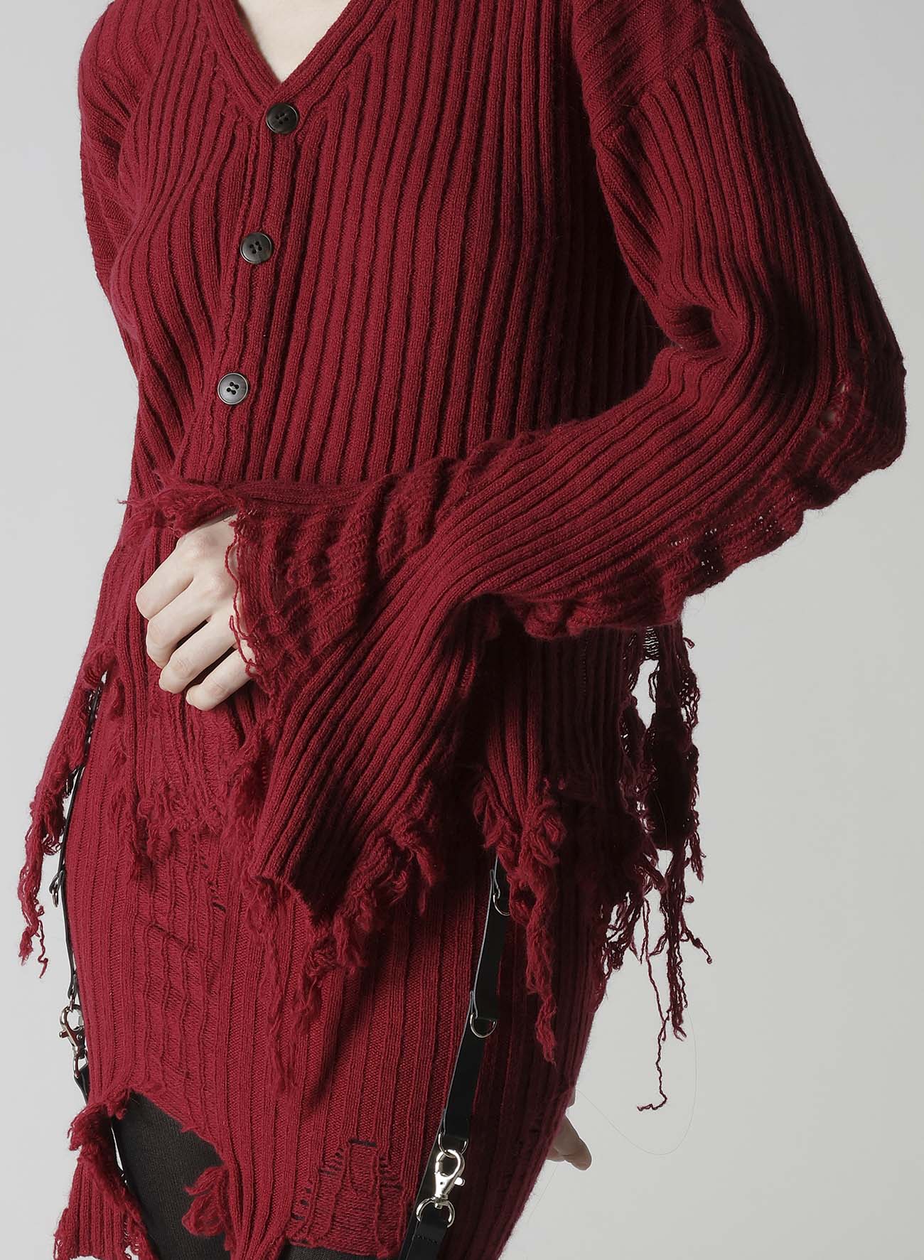 这款针织衫采用羊毛、安哥拉兔毛和尼龙混纺制成,由于安哥拉兔毛的中空纤维能够捕获空气,故而面料轻盈且具高度保暖性。经过产品水洗后经手工剪裁,呈现独特细节—每件作品是耗时的工艺。体验LIMI feu的朋克精神,V领设计优化冬季穿搭。