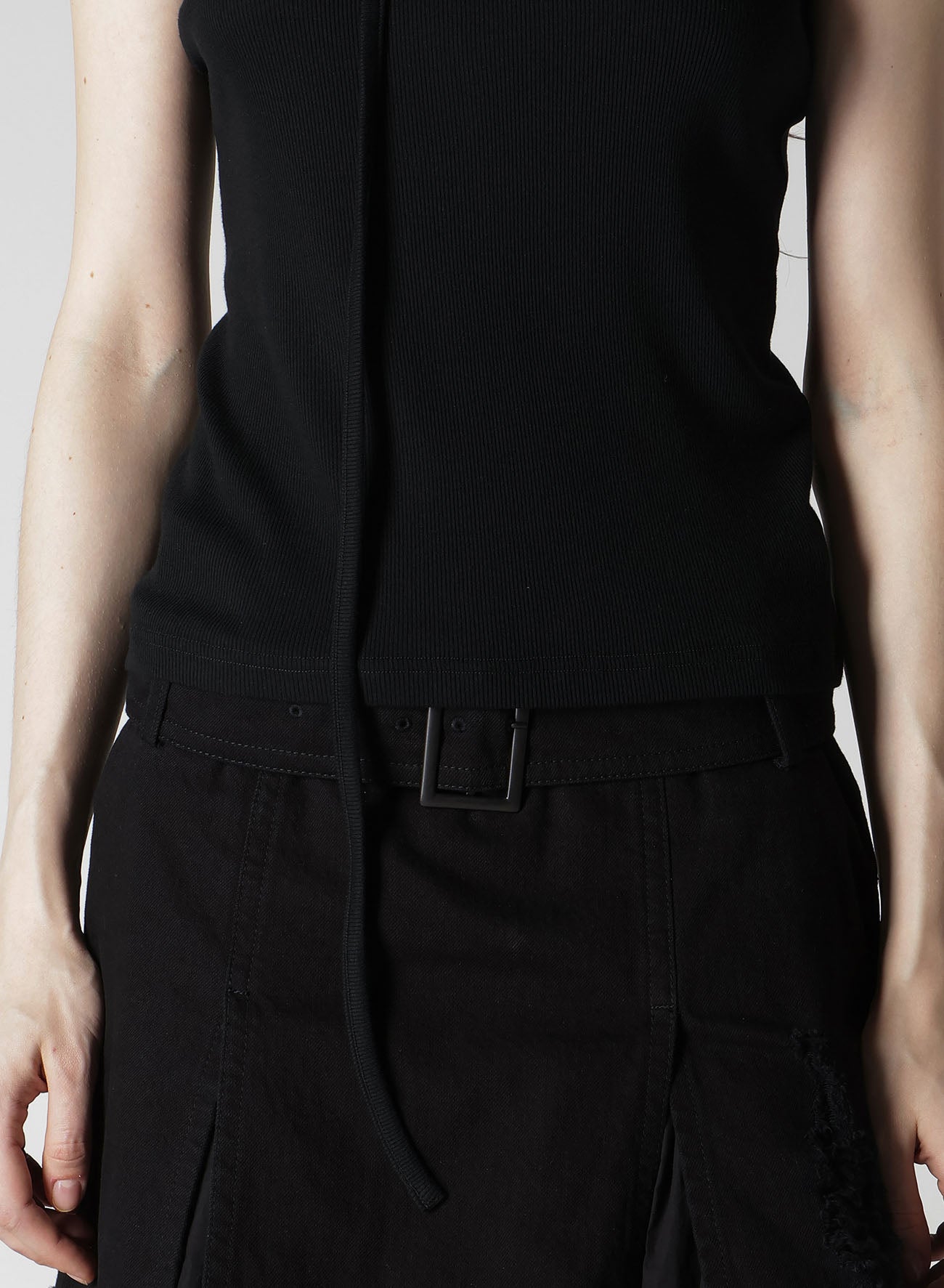 这件背心由棉和人造丝混合而成,质地柔软,贴合度极佳,穿着舒适。非常适合作为透视上衣的内搭,是一款多功能单品,也能为多层次搭配增添风格。