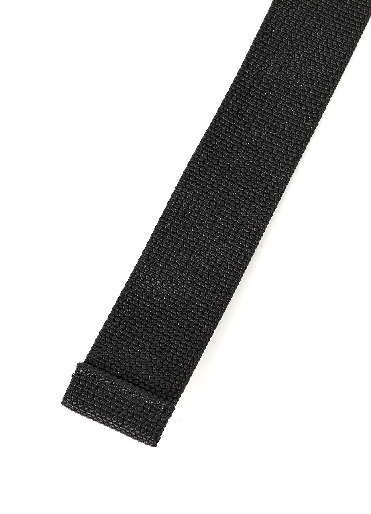 这条皮带采用柔软的牛皮,表面有纹理。其独特的设计包括将皮带尖穿过一个圆环。皮带悬挂部分的长度可以通过8个扣子进行调整,使其成为多种服装的多功能配饰。