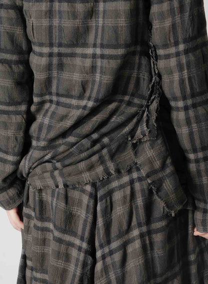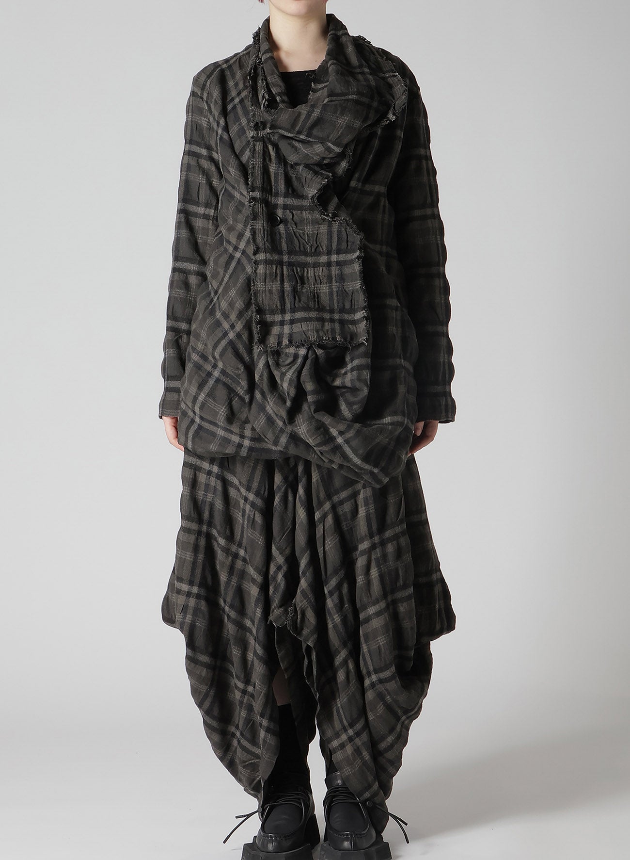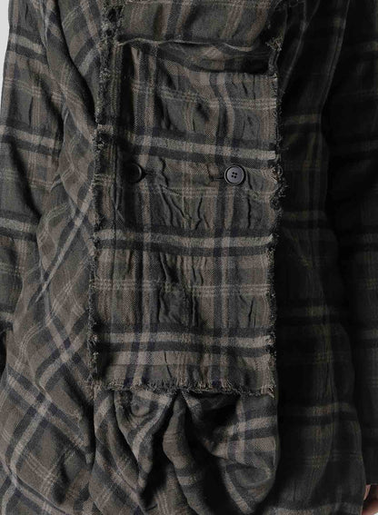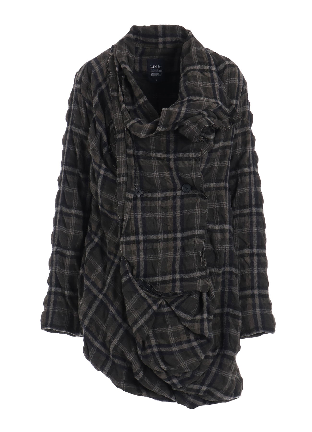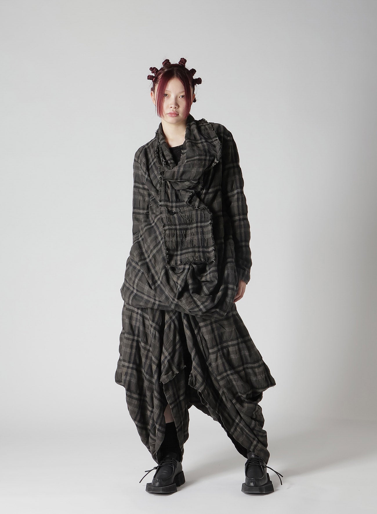 这款夹克以灰色为底色,采用羊毛和棉混纺的GLEN PLAID图案,用墨水染色。染色过程产生独特的色调、色差和褶皱。穿得越久,它的颜色变化越多,增强复古感。夹克特色包括独特拼接、前面廓形饱满、背面线条利落。 - 墨水染色的GLEN PLAID面料,羊毛混棉 - 独特色调和自然褶皱 - 未完成边缘的复古风格,边缘逐渐磨损 - 带有独特领口及下摆的拼接设计 - 避免与白色或浅色单品搭配,以防染色转移