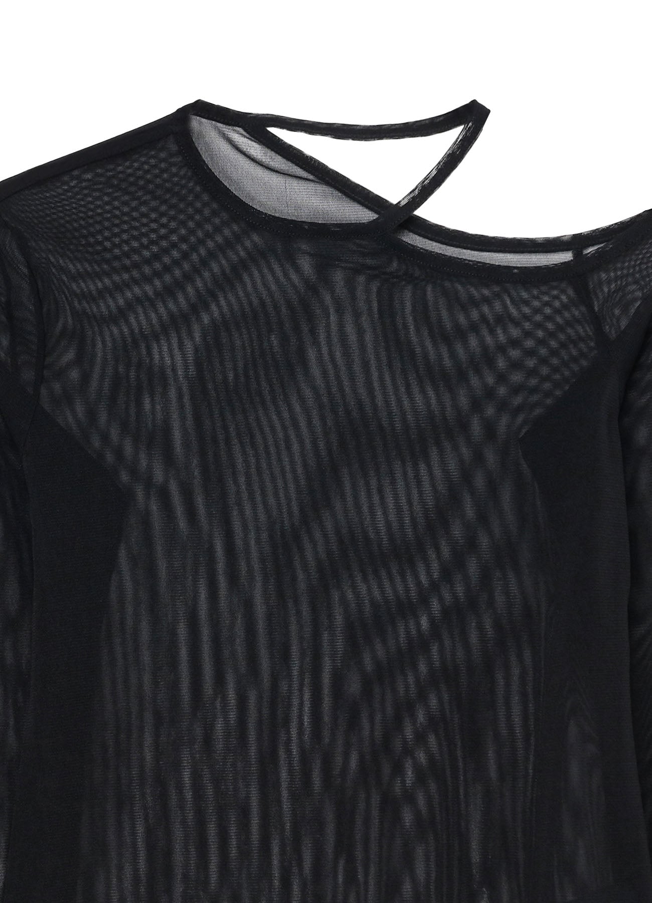 这种可以向各个方向拉伸的chul材料,提供了出色的弹性、形状保持和轻便舒适,减少穿着压力。这个chul上衣左肩的露肩设计在搭配不同裤子时提供了多样化的外观。