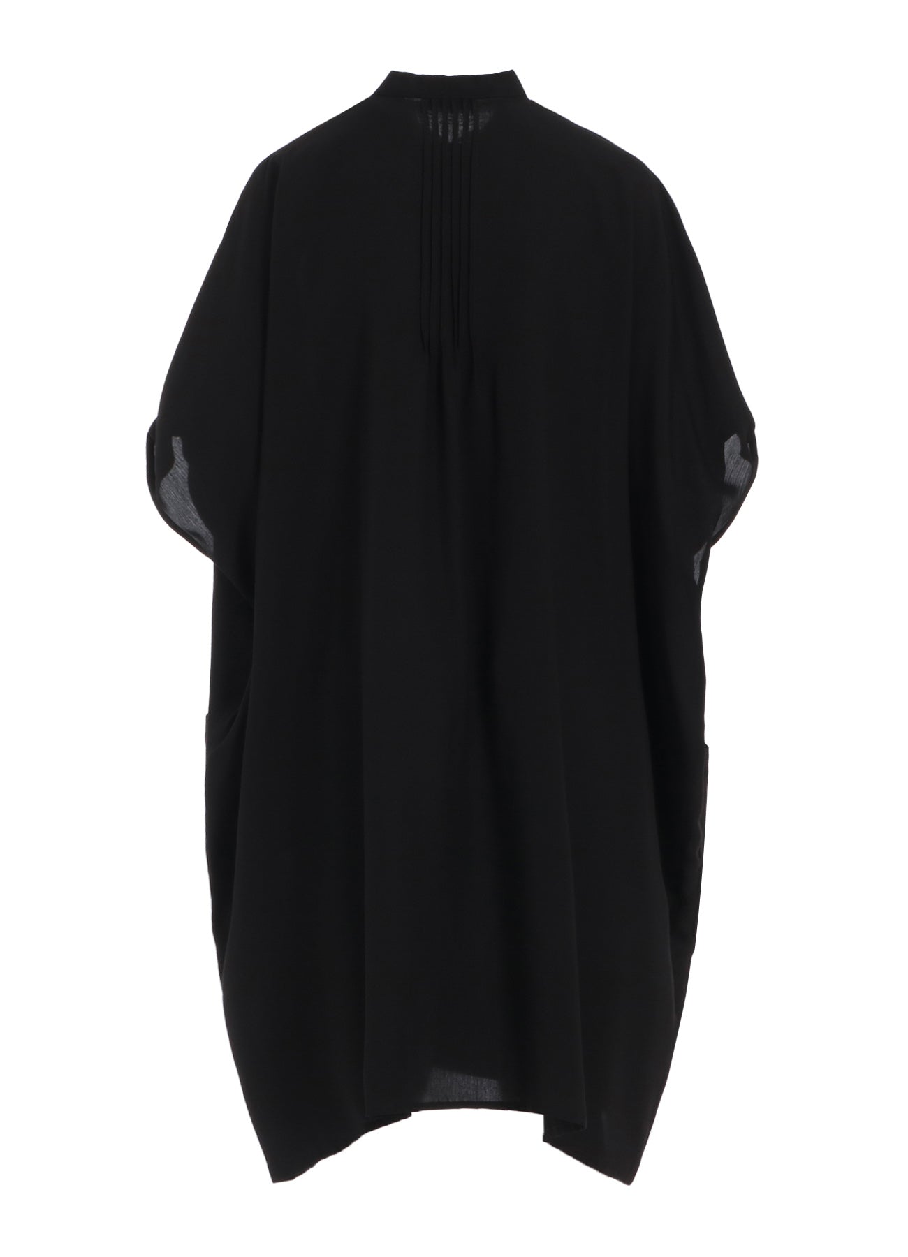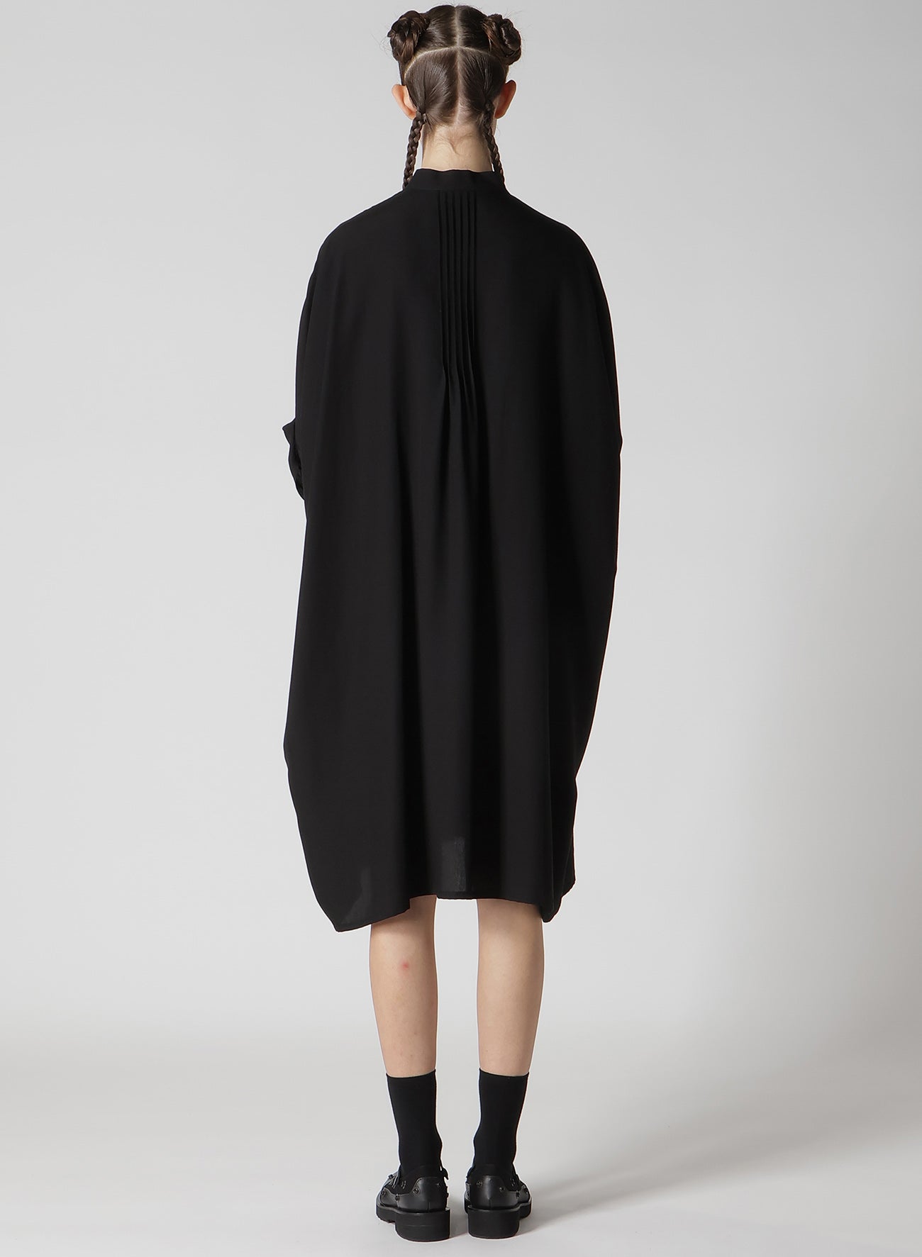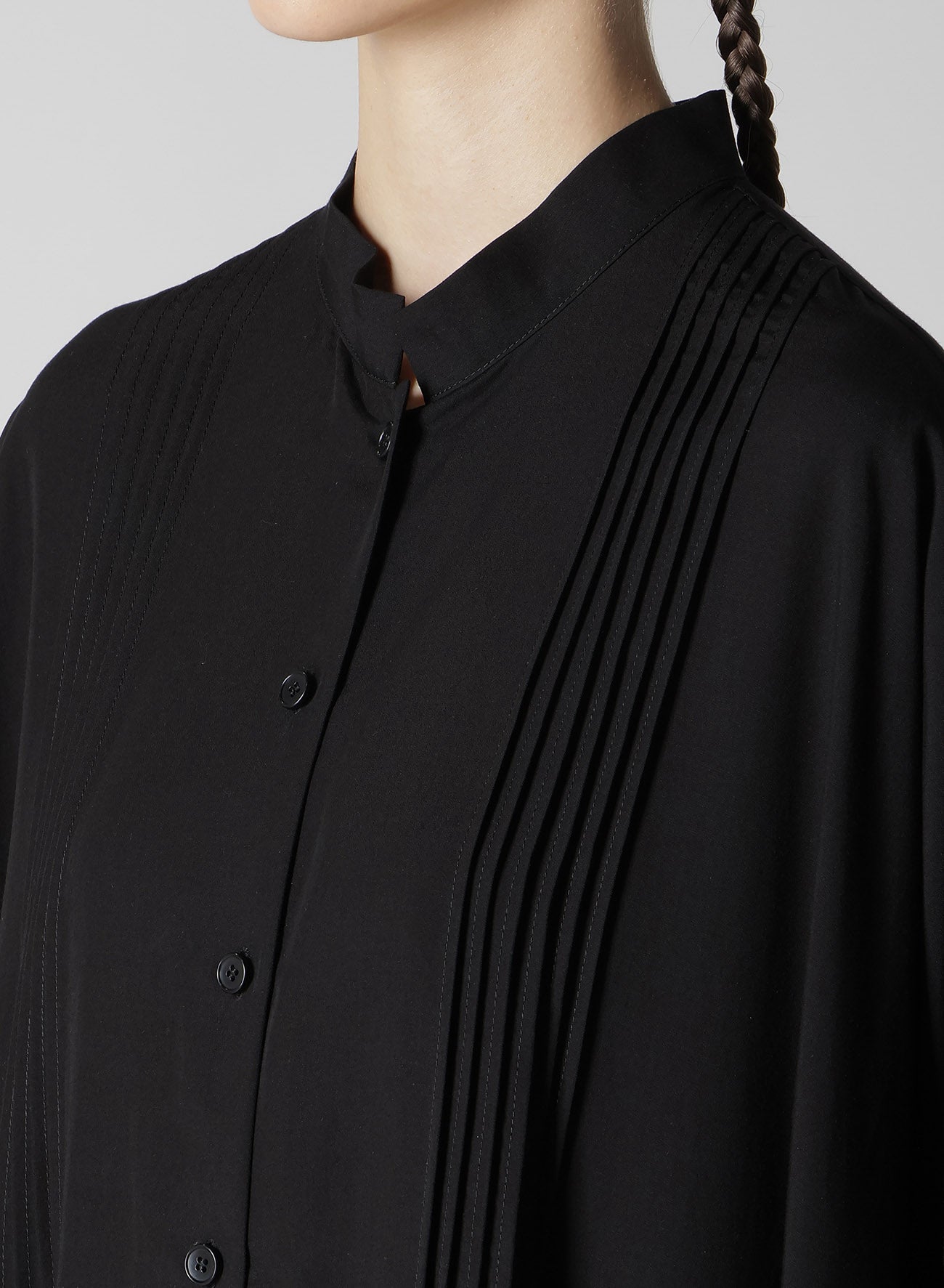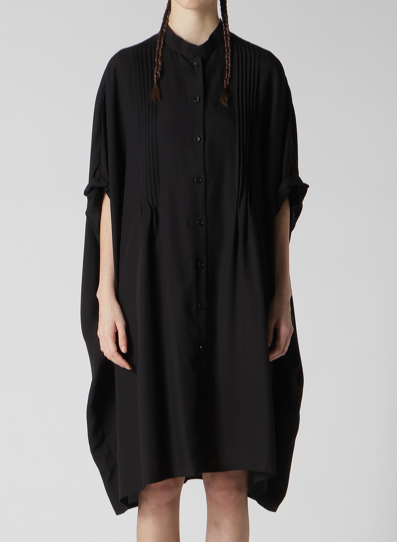 这种面料稍带光泽,手感柔软,具有极佳的垂感。宽松的轮廓营造出休闲氛围,同时稍微光泽的材质、细褶和立领提升了整体外观。
