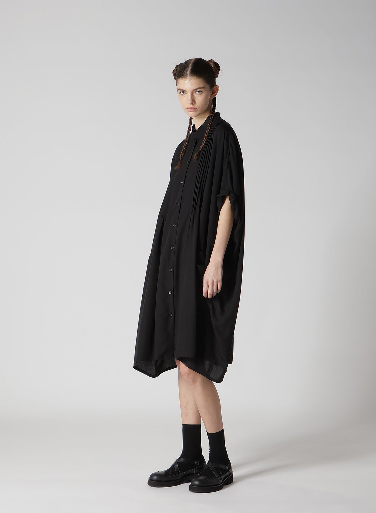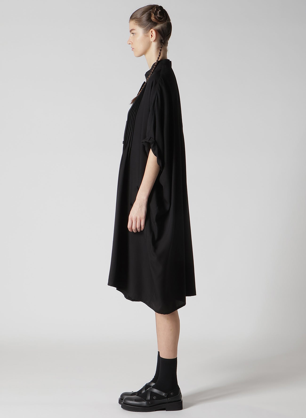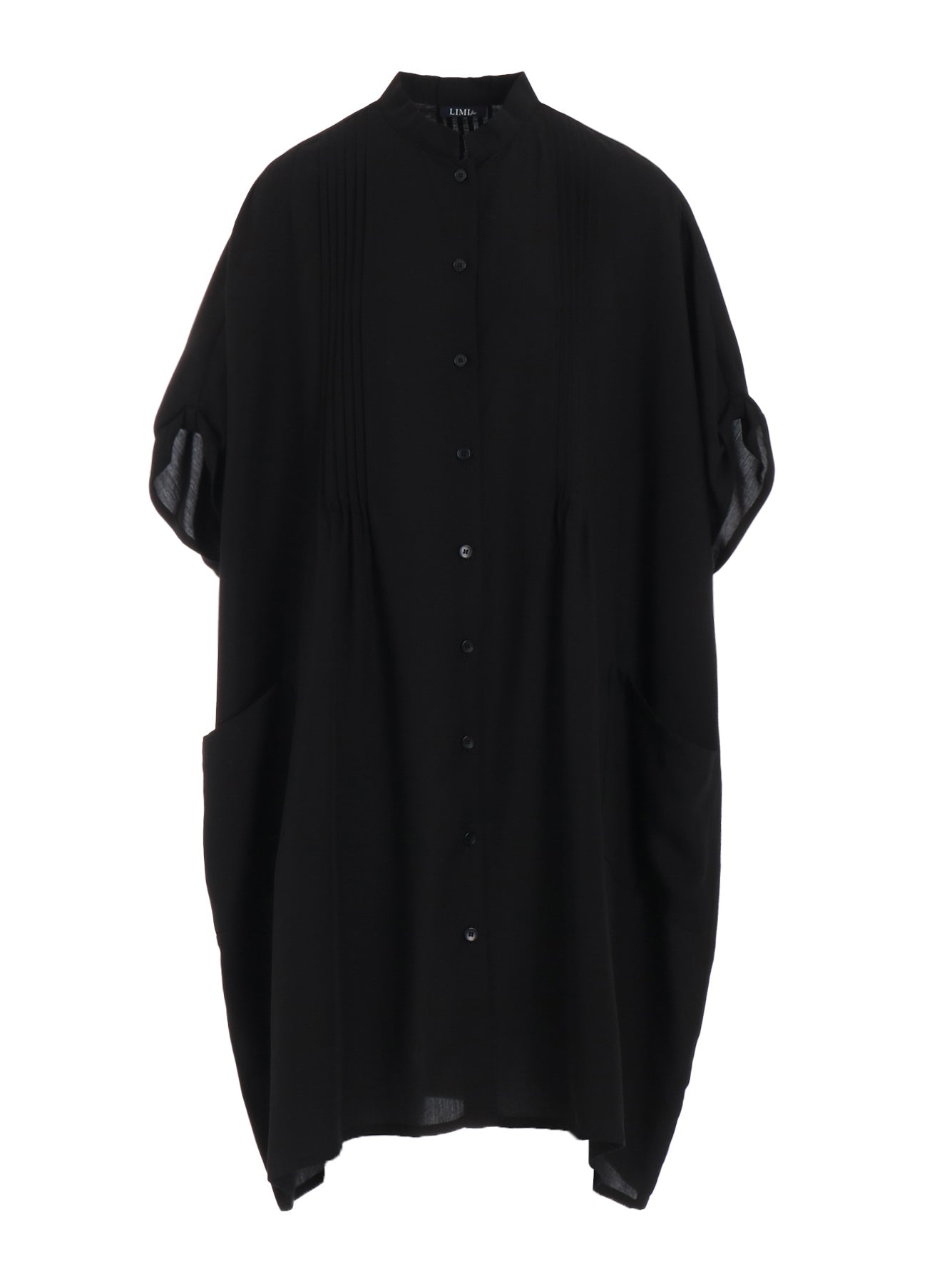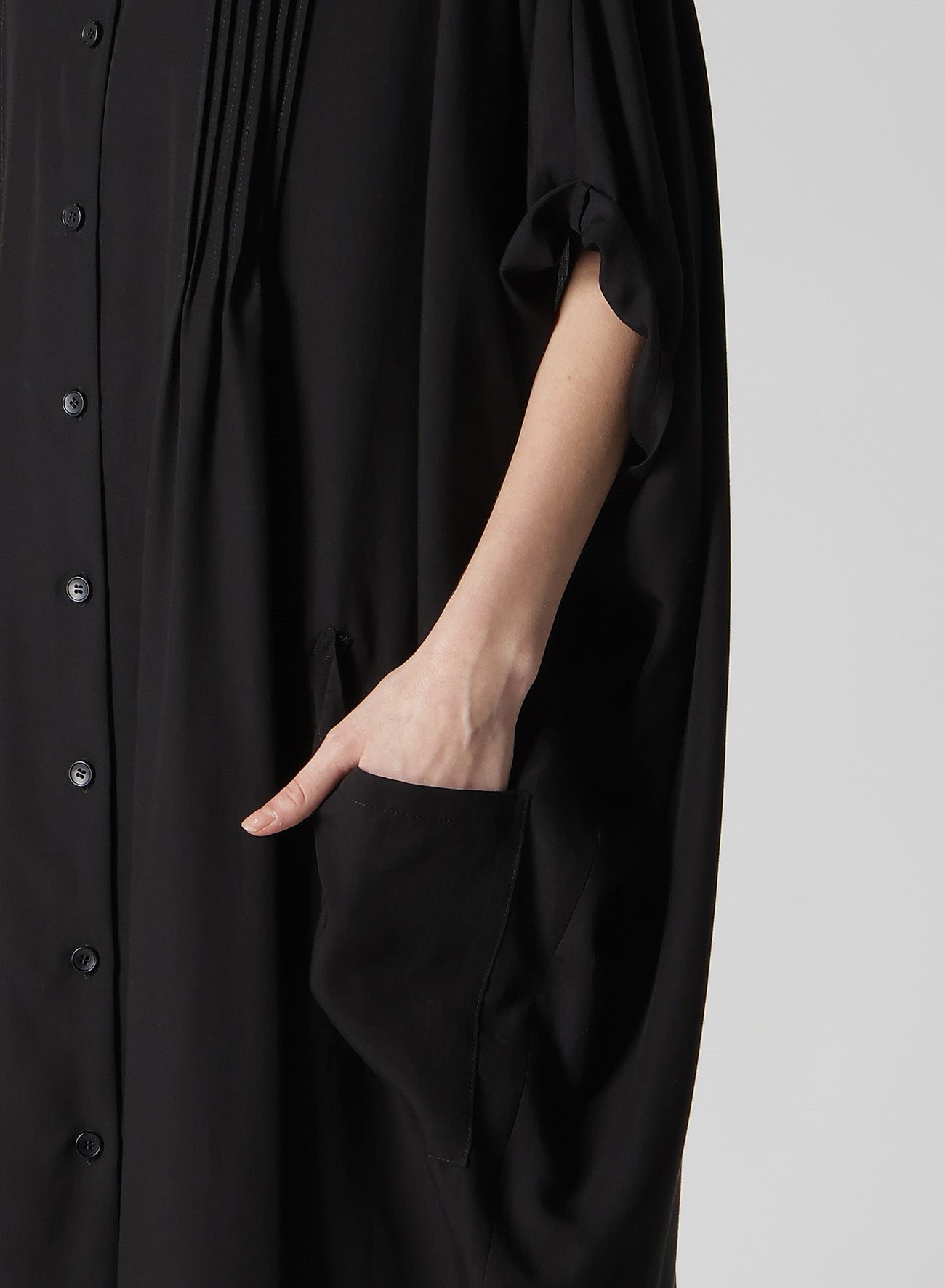 这种面料稍带光泽,手感柔软,具有极佳的垂感。宽松的轮廓营造出休闲氛围,同时稍微光泽的材质、细褶和立领提升了整体外观。