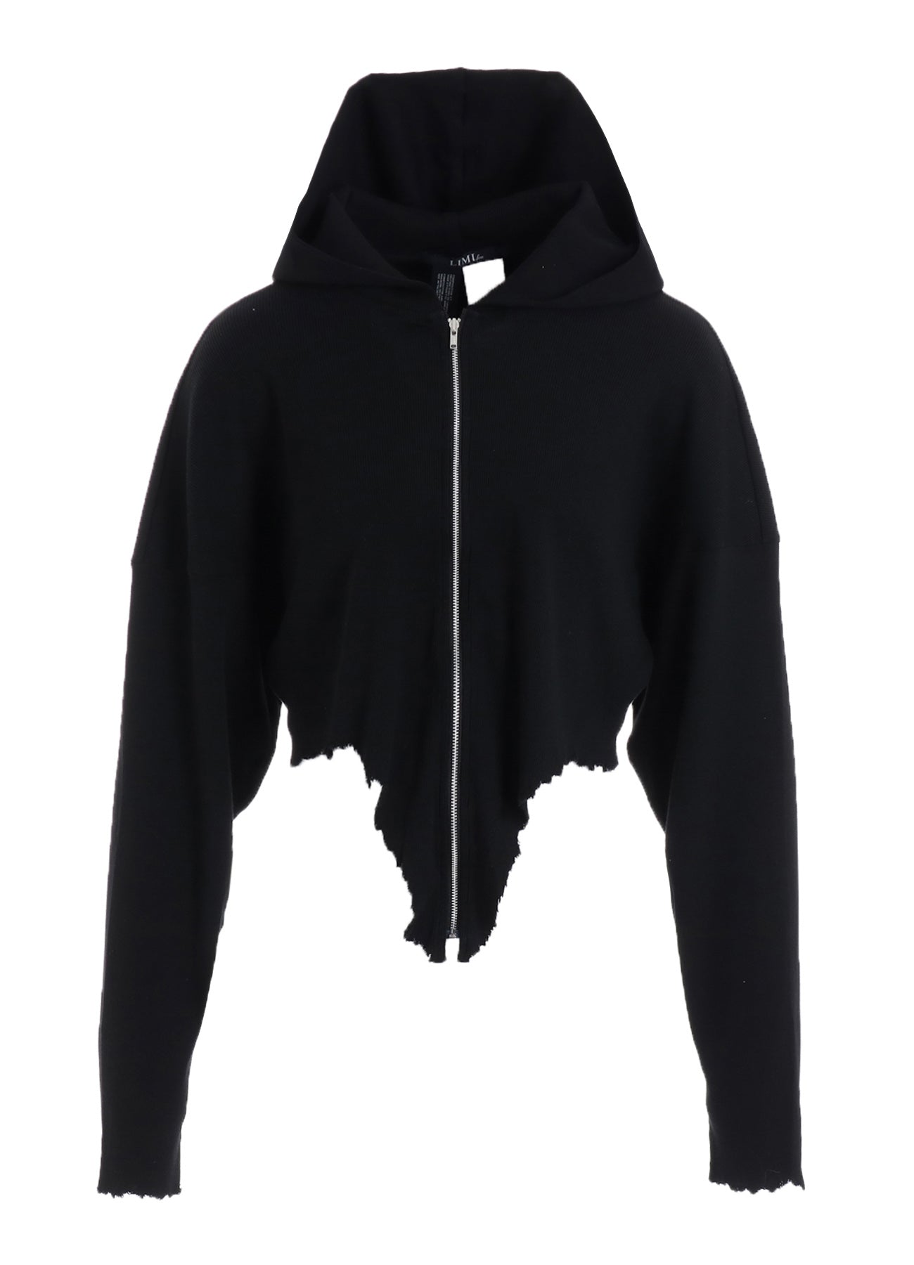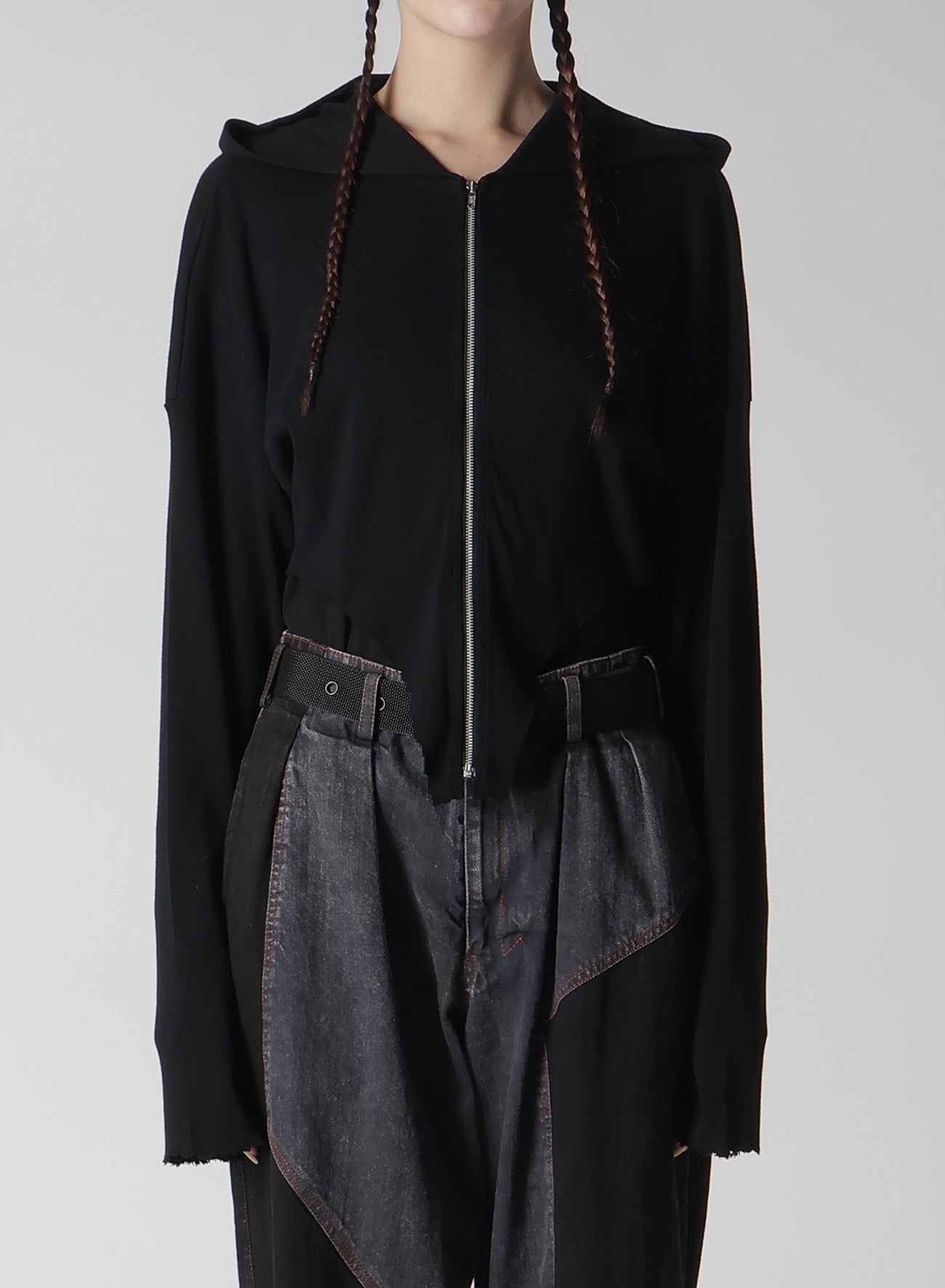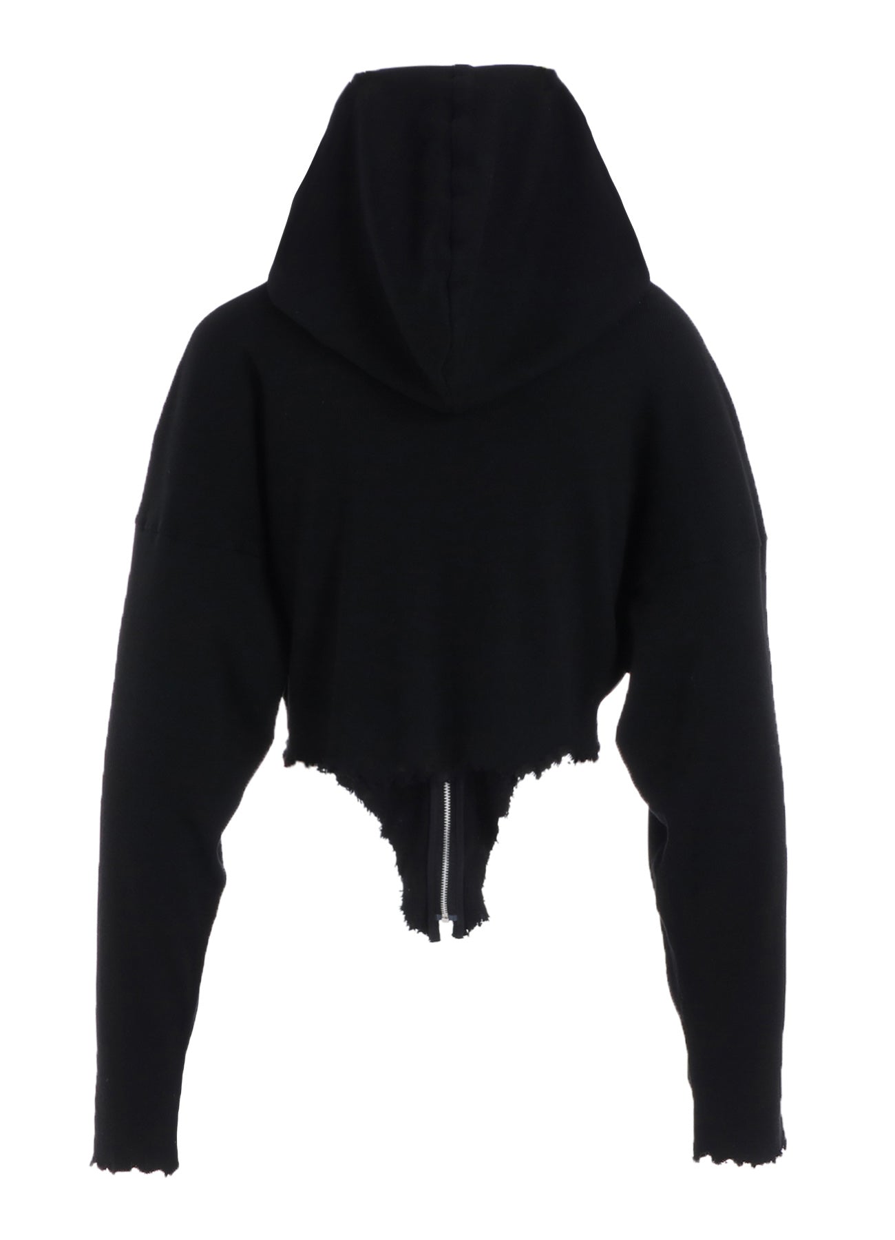 CRUSHED RIB STITCH CURVED HEM HOODIE