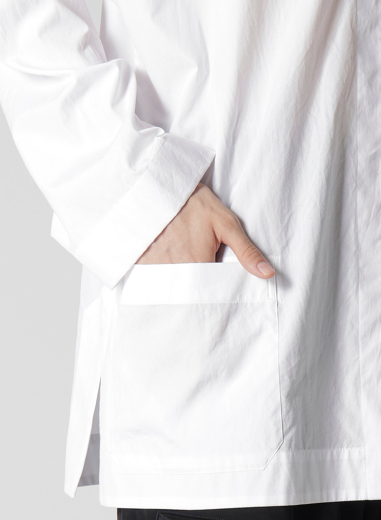 这款立领衬衫采用柔软的全棉面料,质感温和。其独特设计包括一个佛珠扣作为第一颗扣子,宽松的剪裁和特色外侧口袋。每种颜色变体的扣子缝线独具一格,既适合单独穿着也适合叠穿。