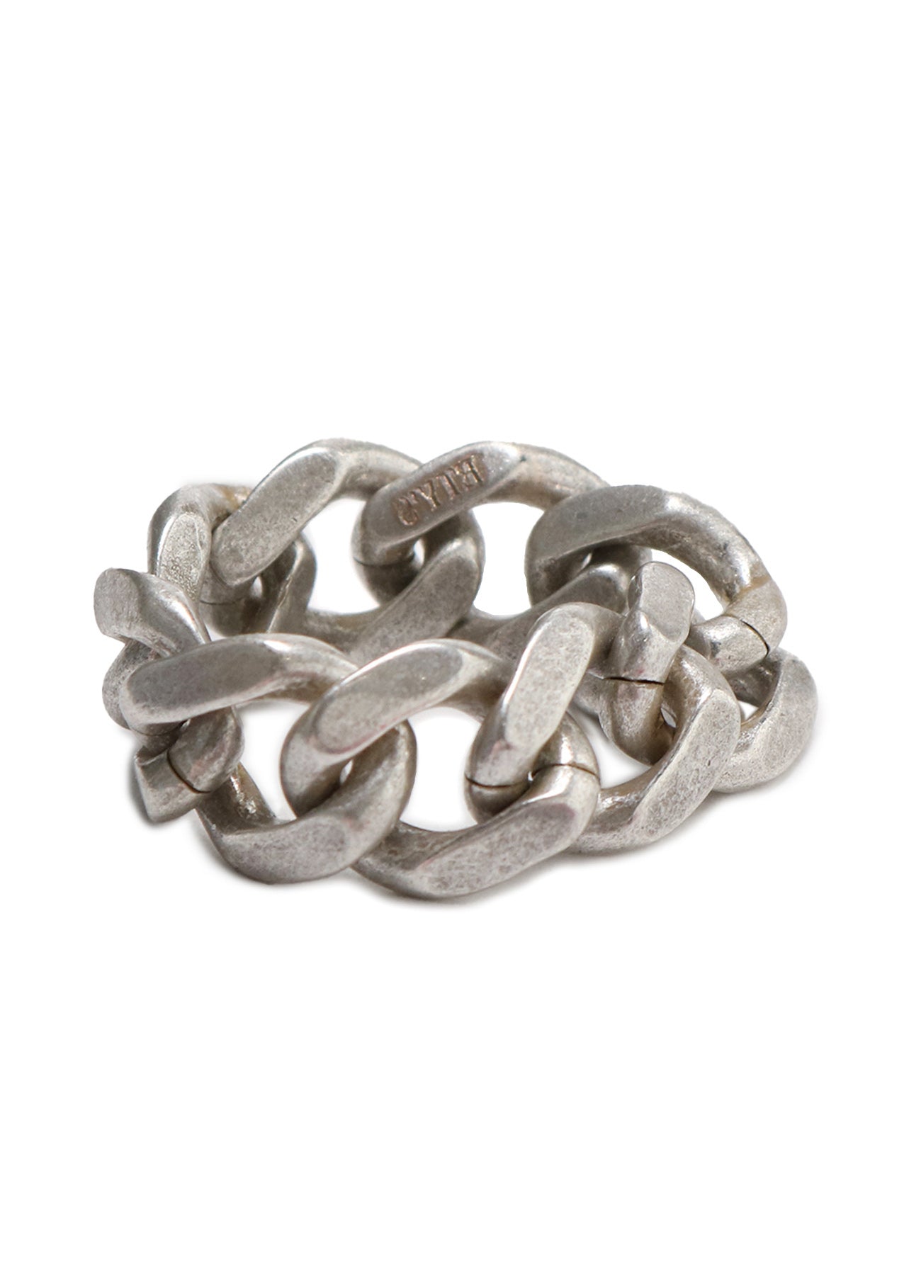 这款链环由黄铜制成,表面光滑,经过古银处理以减少光泽并增强粗犷的时尚外观。与标准戒指相比,链结构提供了灵活性和舒适的佩戴感。它包含S'YTE标志,并附带一个天鹅绒袋。