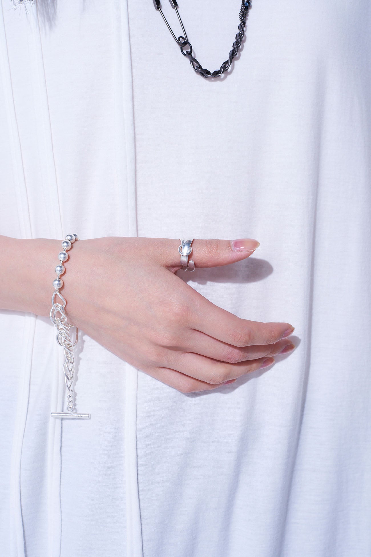 两枚不同厚度的交错戒指组合,创造出层叠戒指设计。简单的外观因重叠设计增添厚度,是露臂造型的必备单品。银镀层可搭配多种风格,并随时间形成独特的光泽。戒指可分开佩戴,建议进行轻微尺寸调整以确保佩戴舒适。