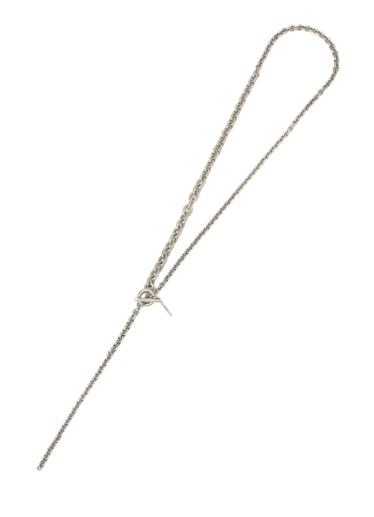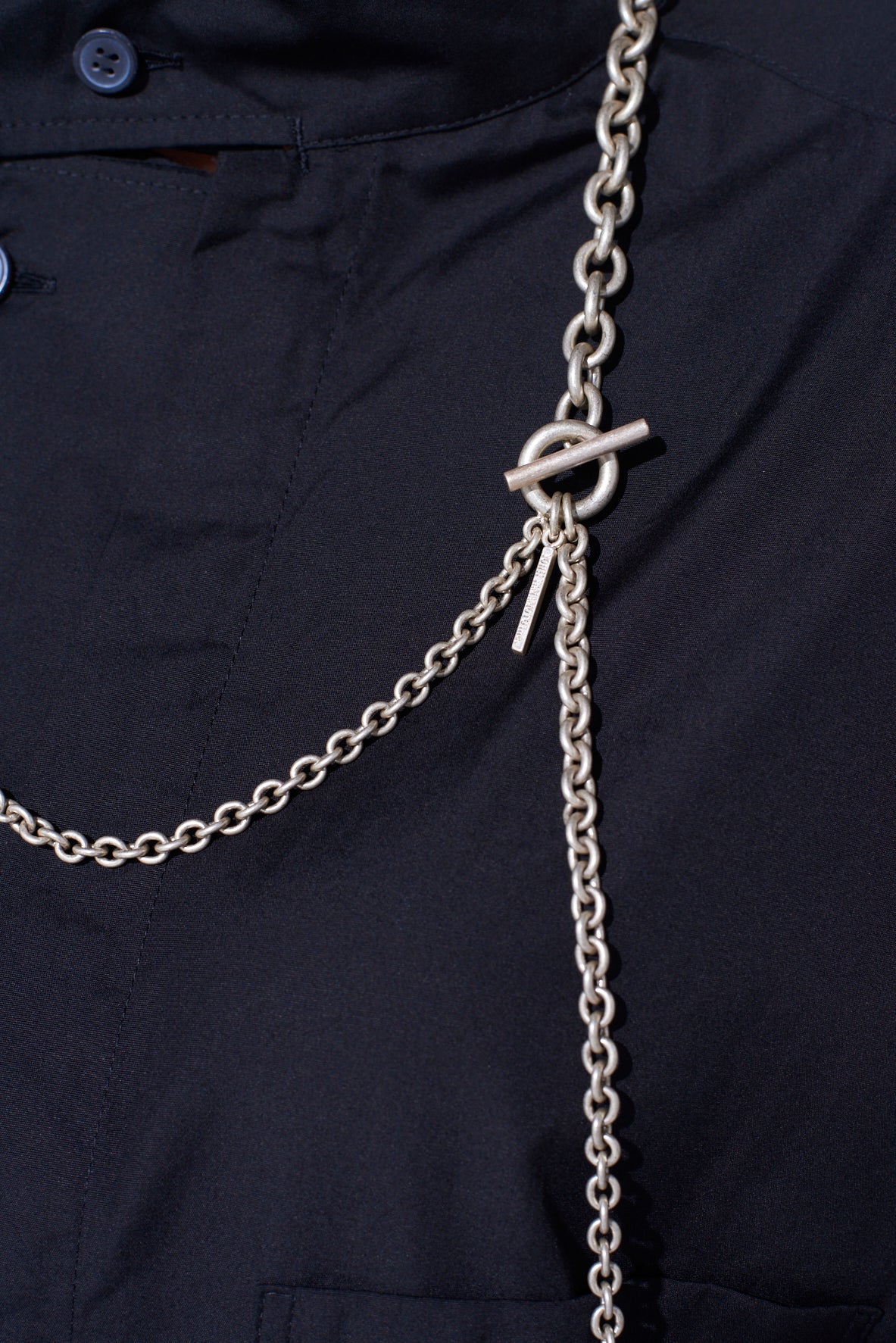 这款项链以大胆的大风衣和T型条为特色,采用连接不同尺寸小豆链的不对称设计。其简单又富有变化的设计,通过旋转链条和调整顶部位置,呈现多样造型。充足的体积感为如拉链细节夹克等朋克风物品增添风采。 - 带大风衣和T型条的不对称设计 - 配有各种尺寸的小豆链 - 通过旋转链条可调整外观 - 衬托如拉链细节夹克等朋克风物品 - 增添深度和个性于您的装扮