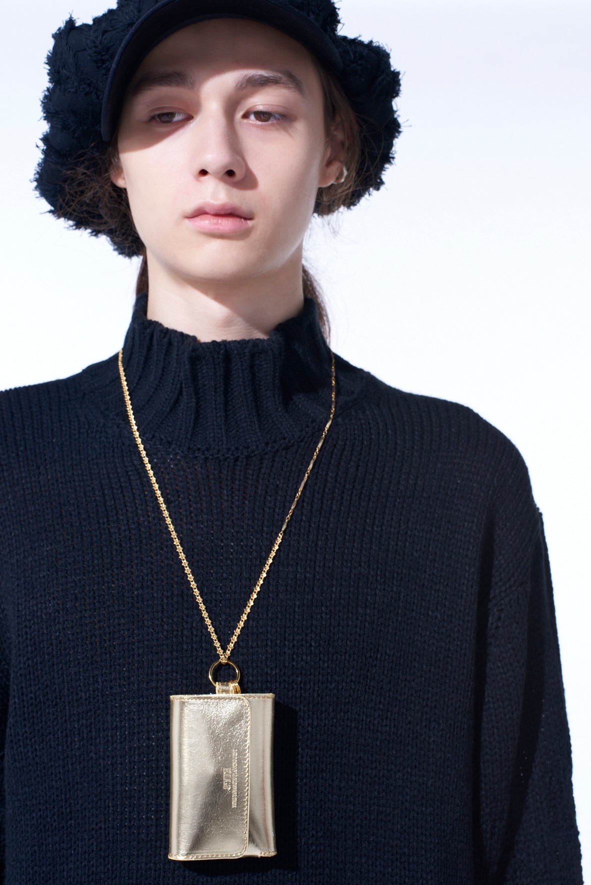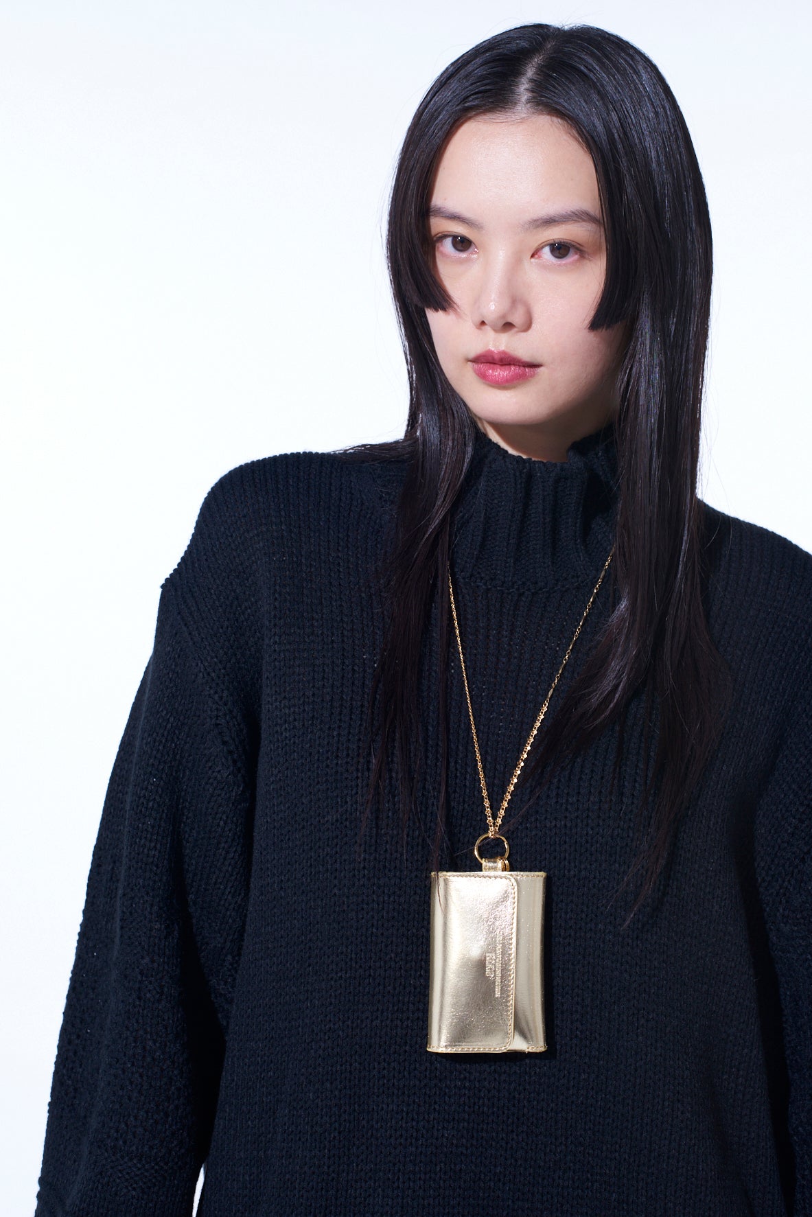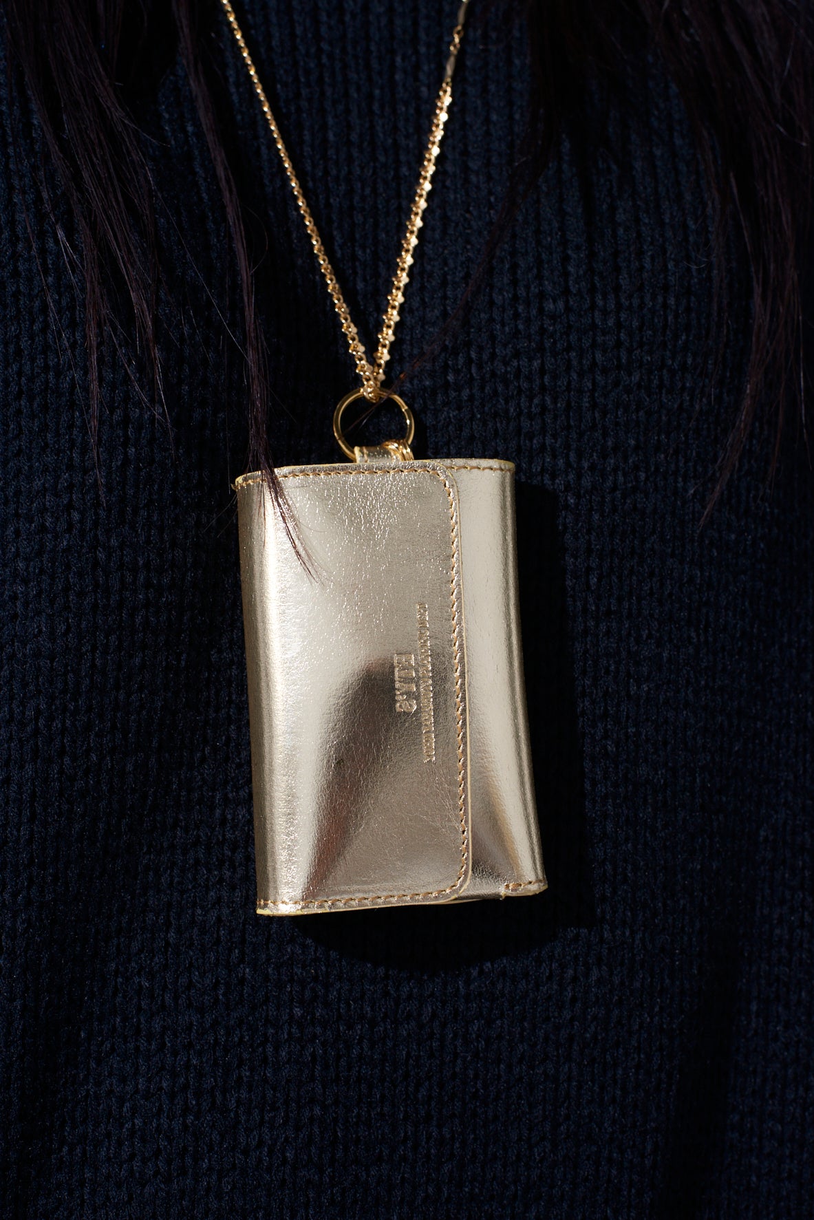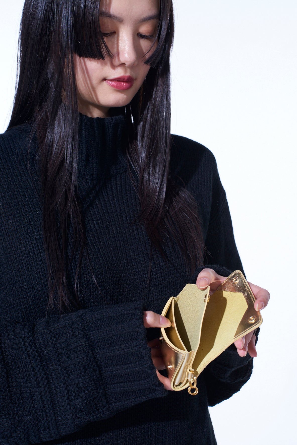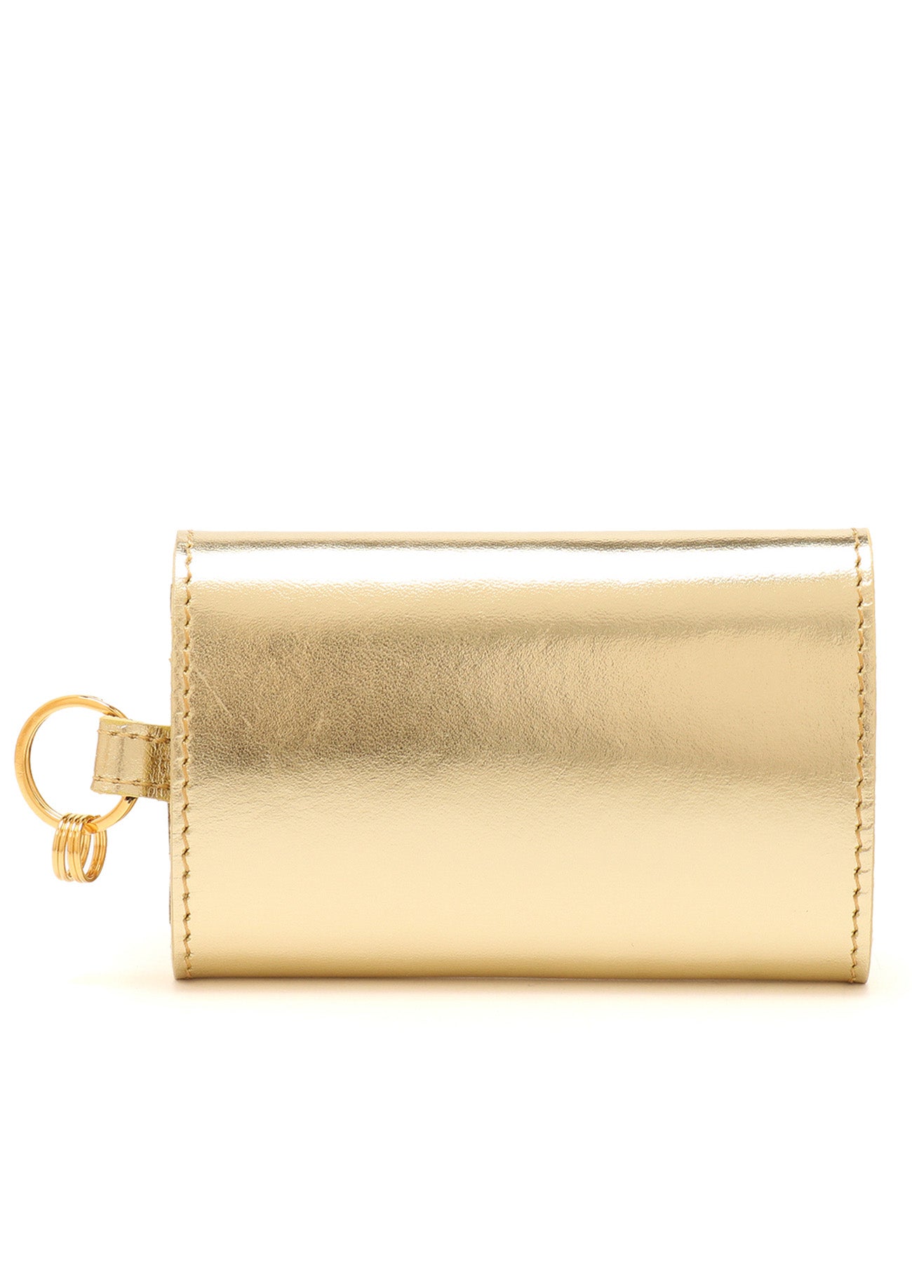 GOLD FOIL PRINT LEATHER TRI-FOLD MINI WALLET