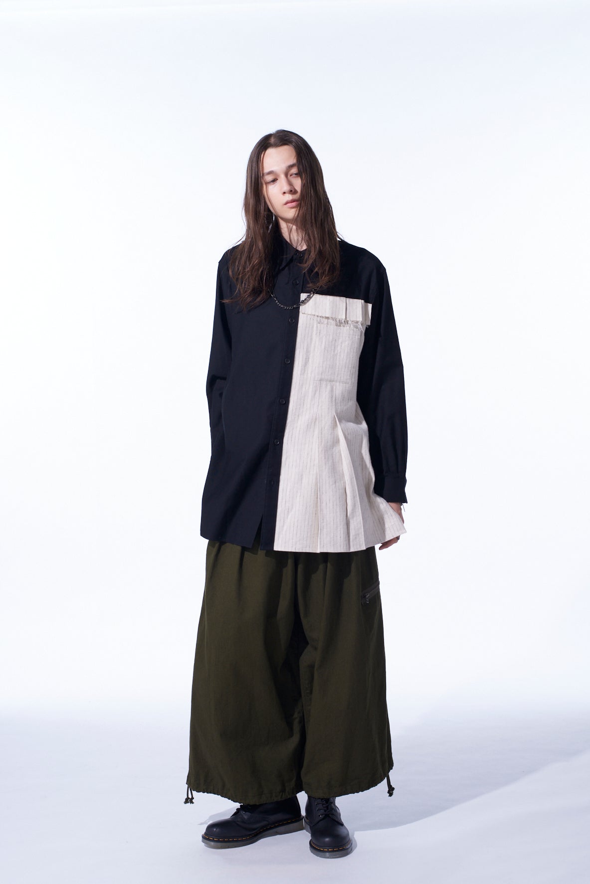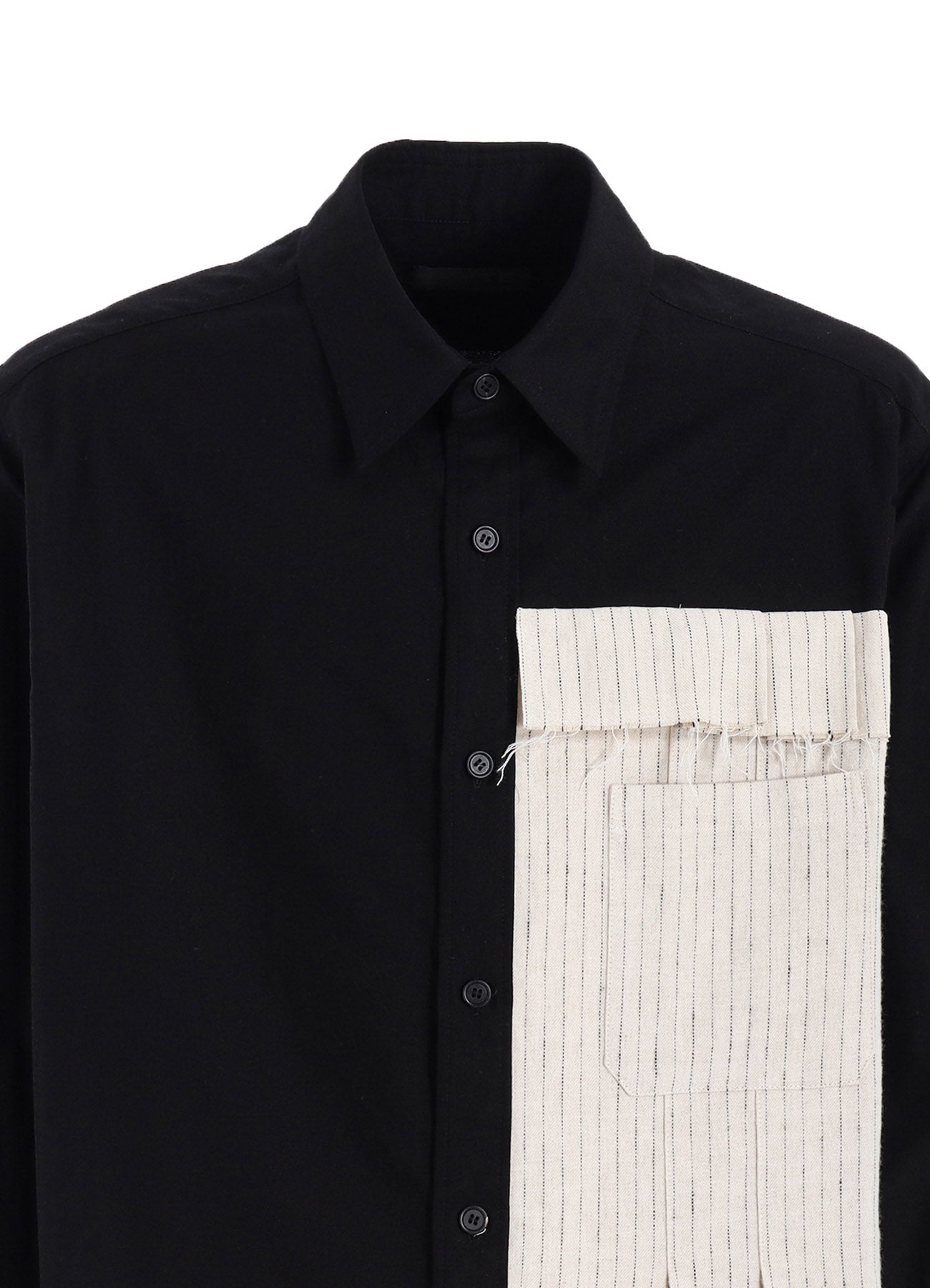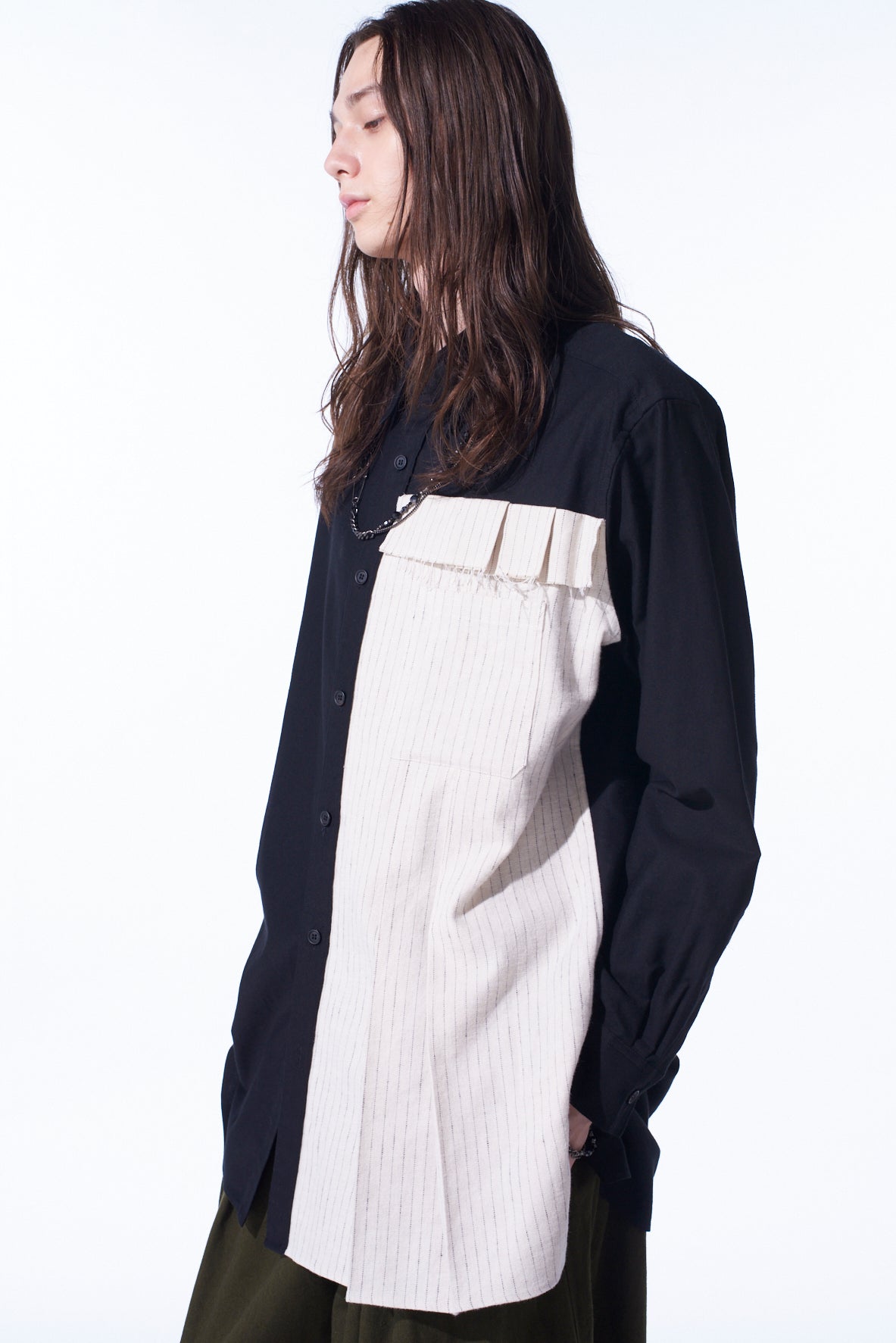 COTTON TWILL SHIRT WITH STRIPED PLEATED FABRIC