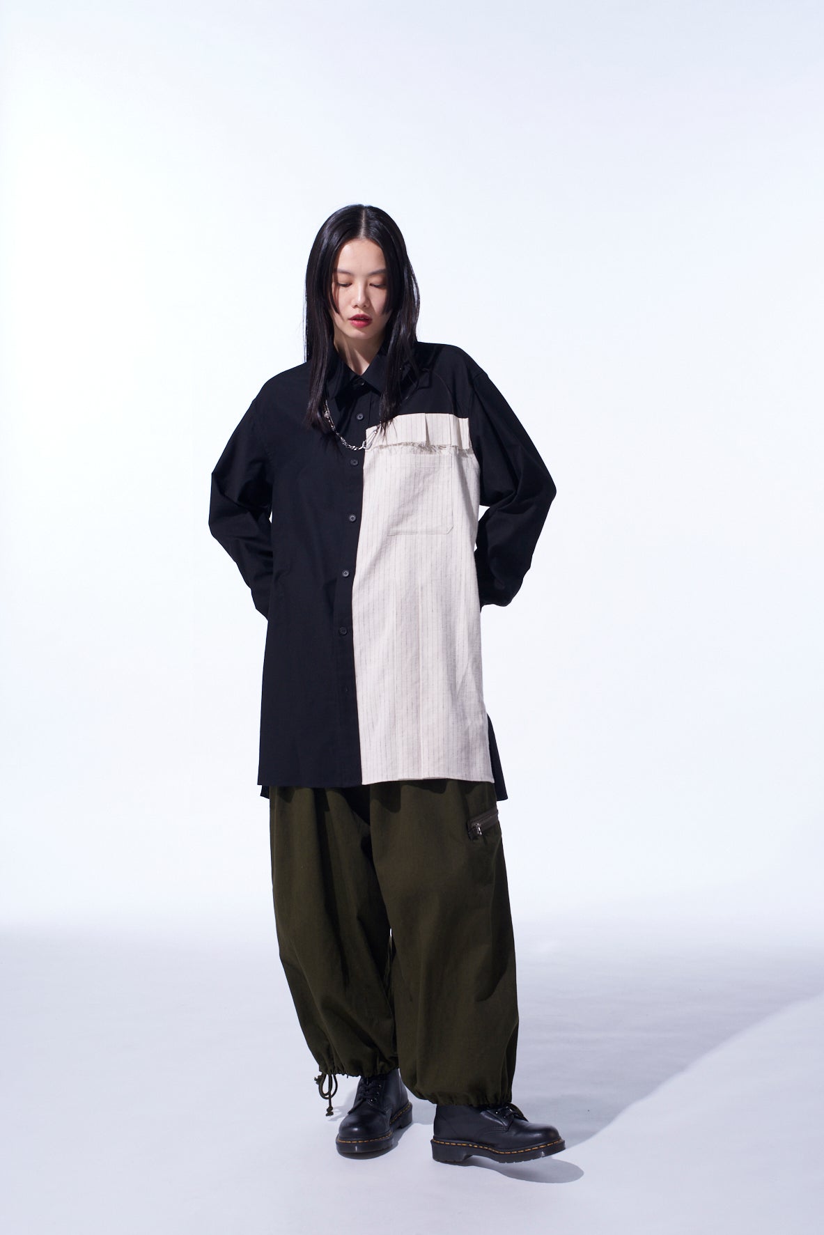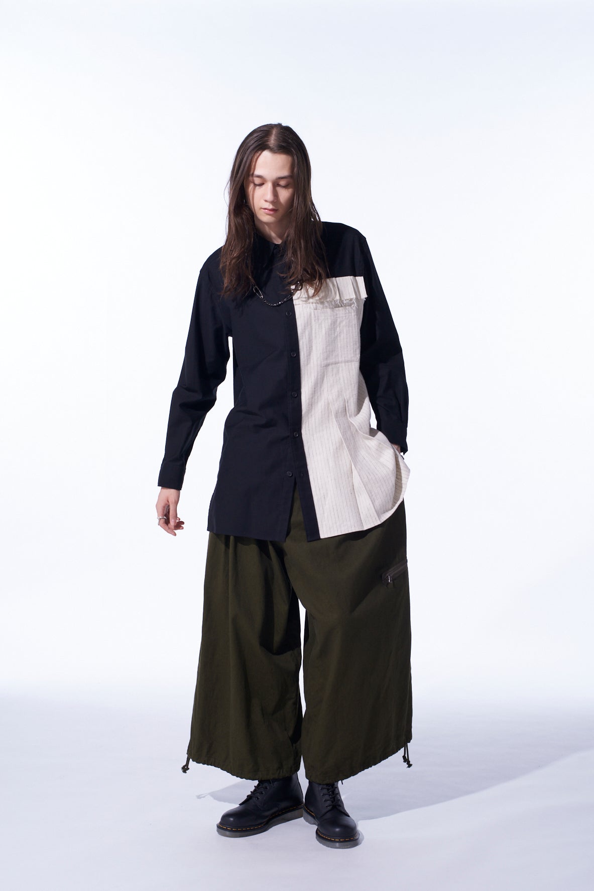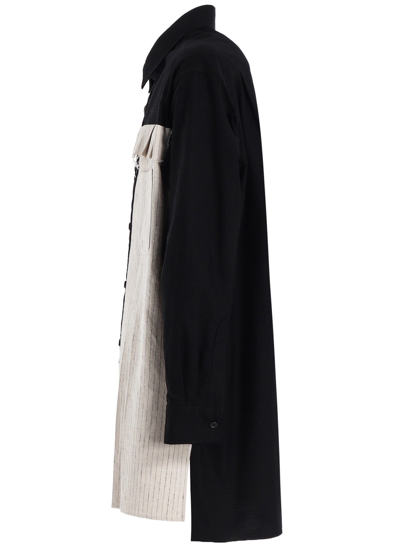 COTTON TWILL SHIRT WITH STRIPED PLEATED FABRIC