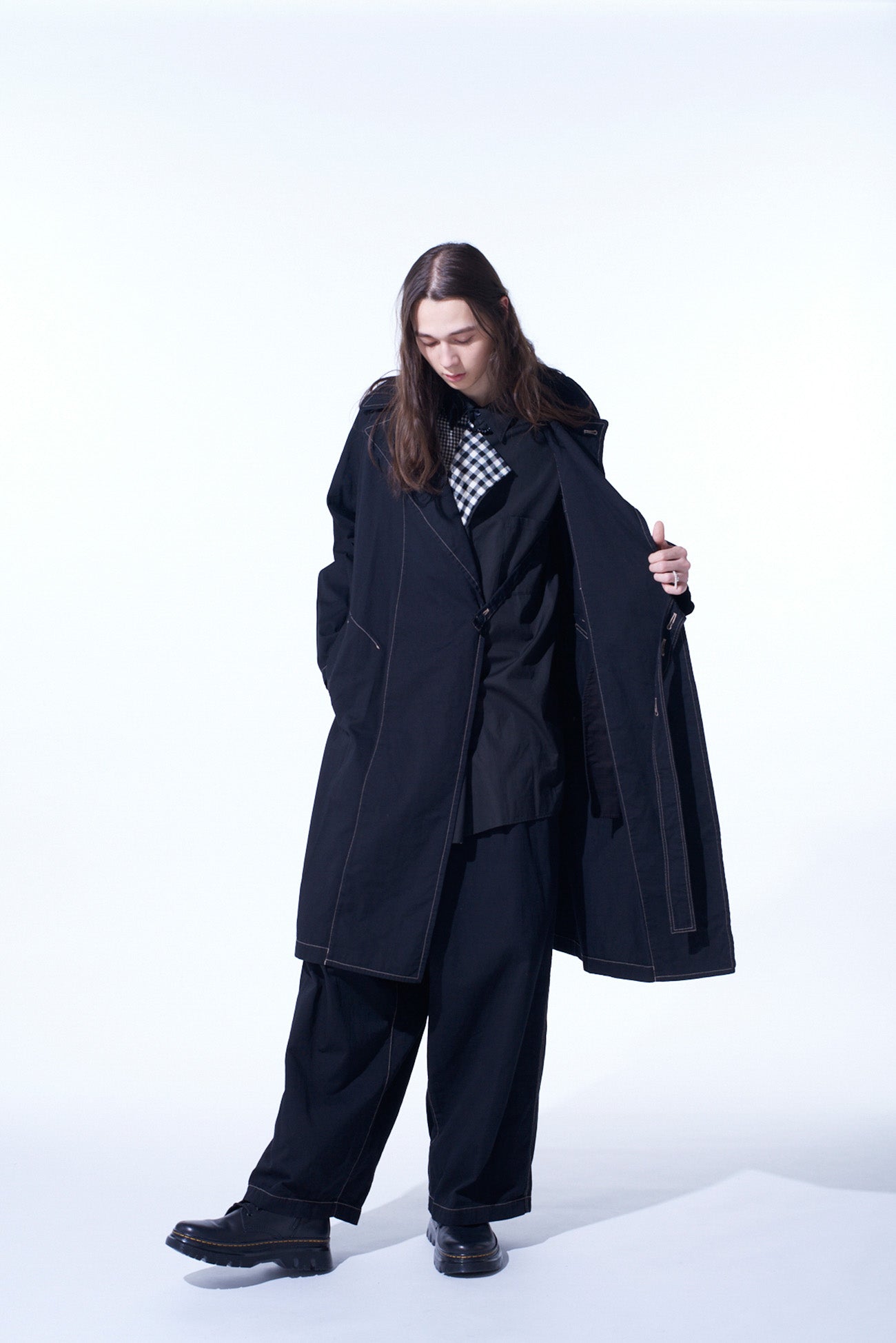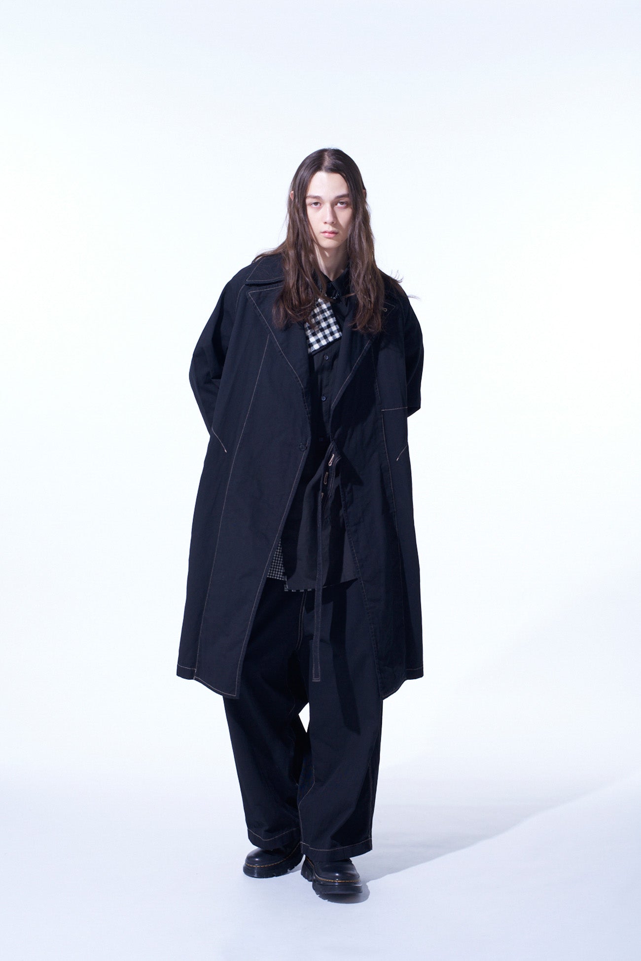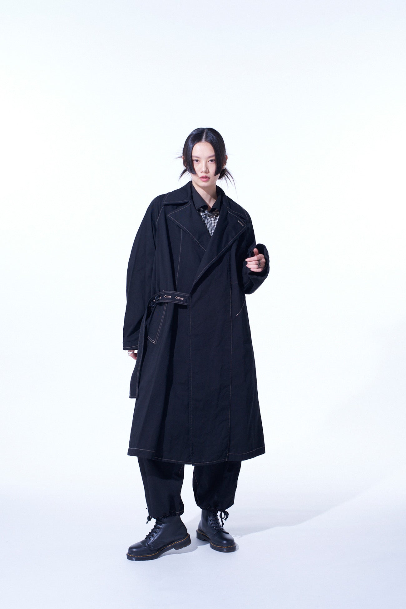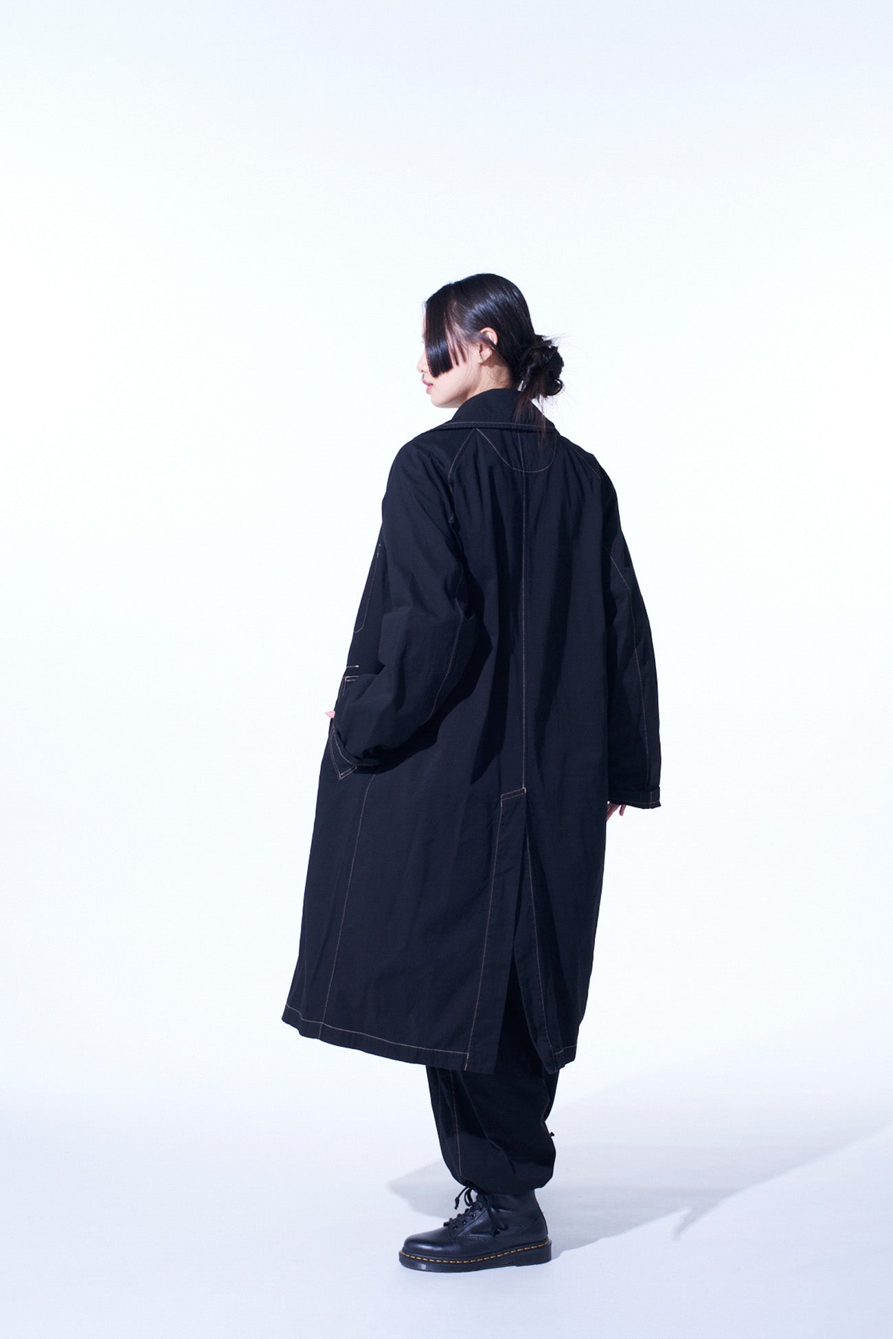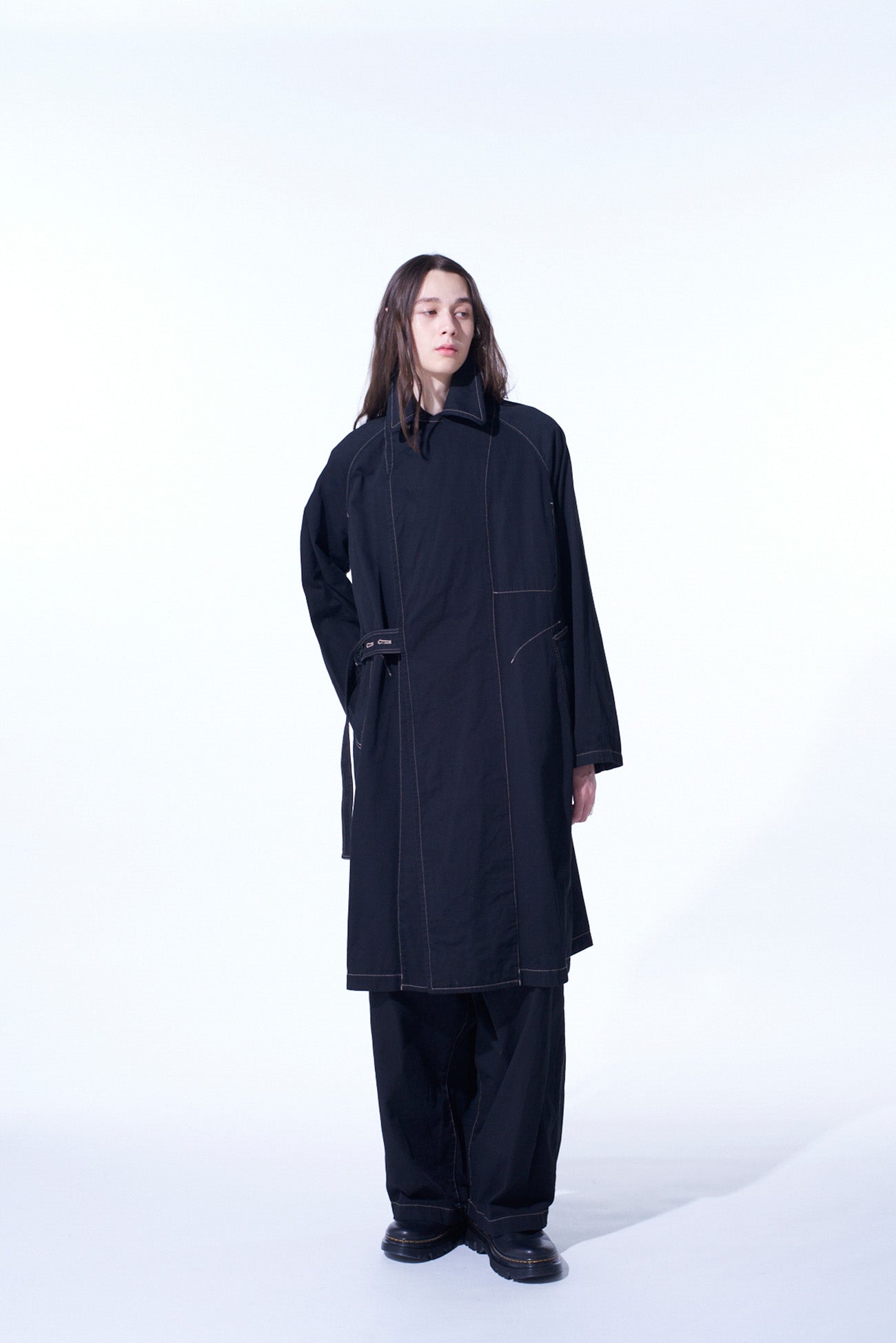 这款提罗尔大衣因其独特的缝线细节和可调的按钮腰带而吸引人。采用染料处理的厚棉斜纹布,提供柔软且轻便的Oversized感。简约设计具有 raglan袖,无正面纽扣,有两种颜色可选:海军蓝和黑色。