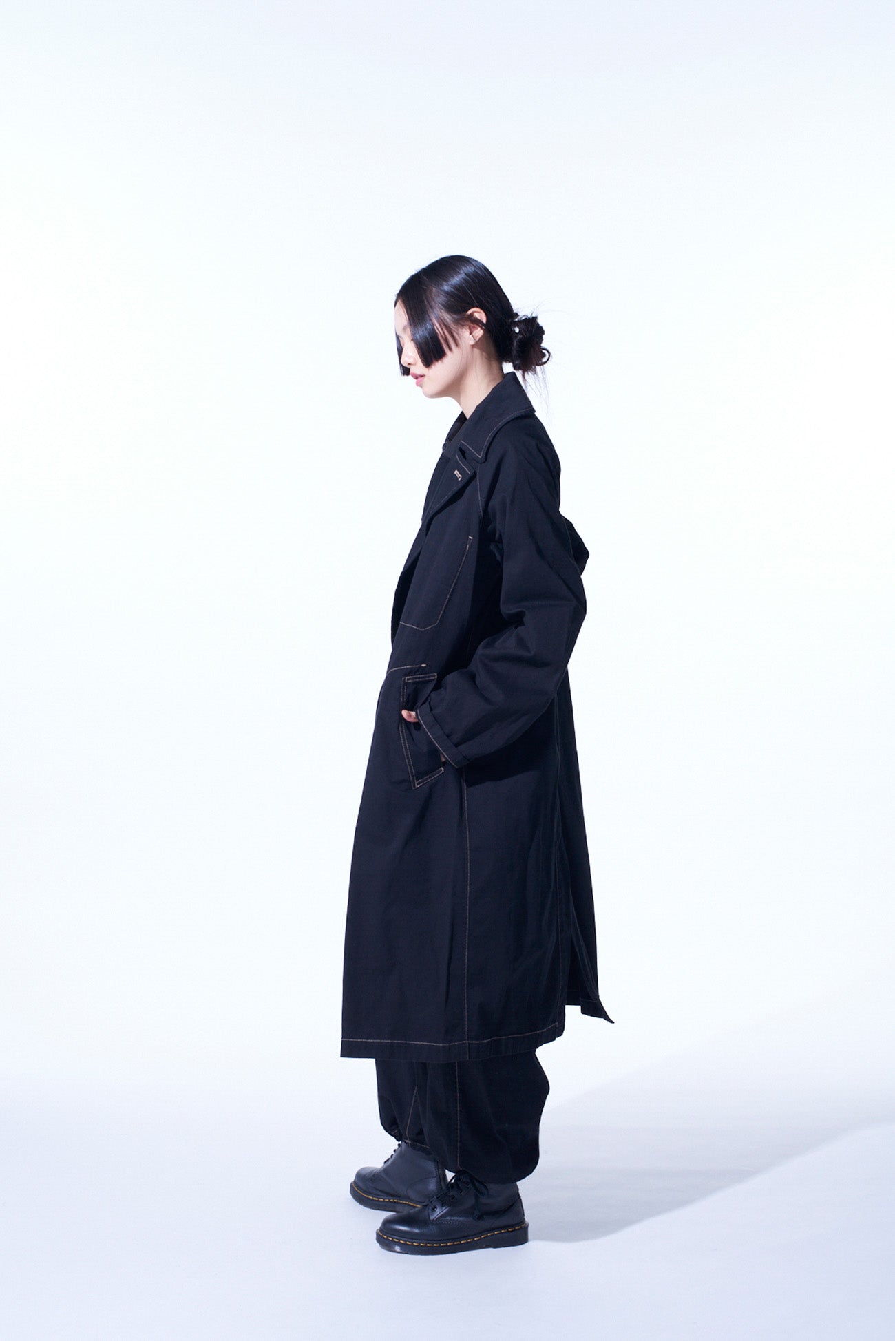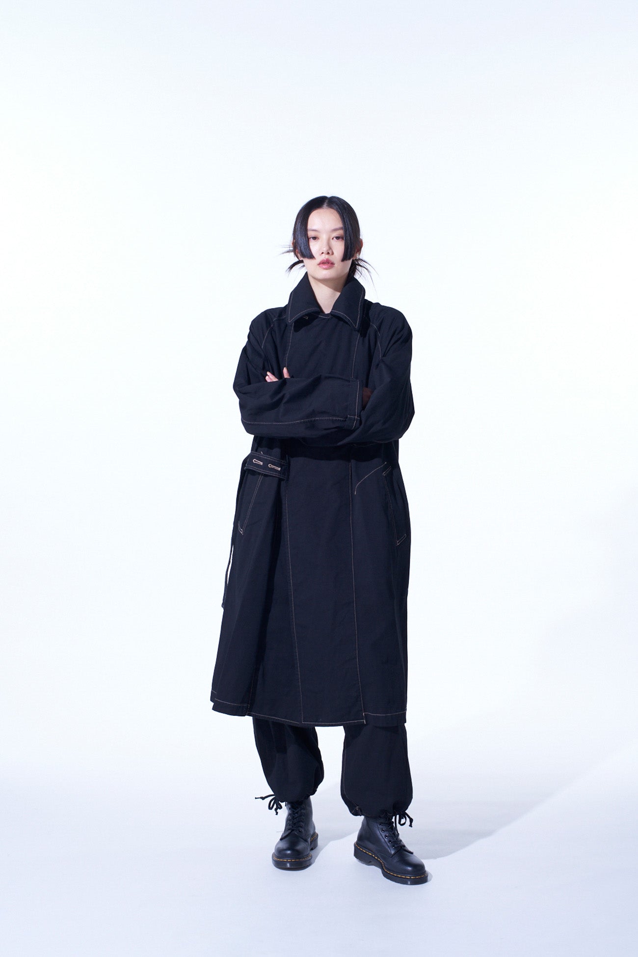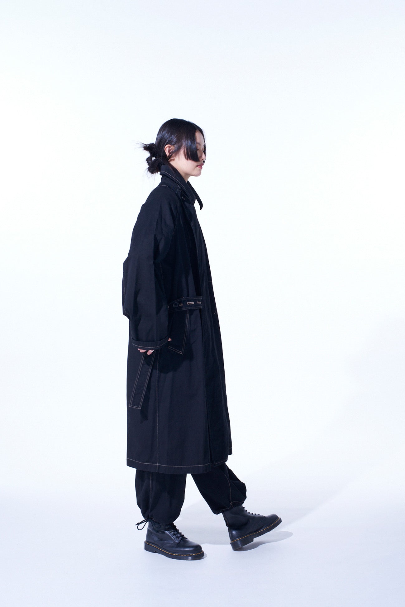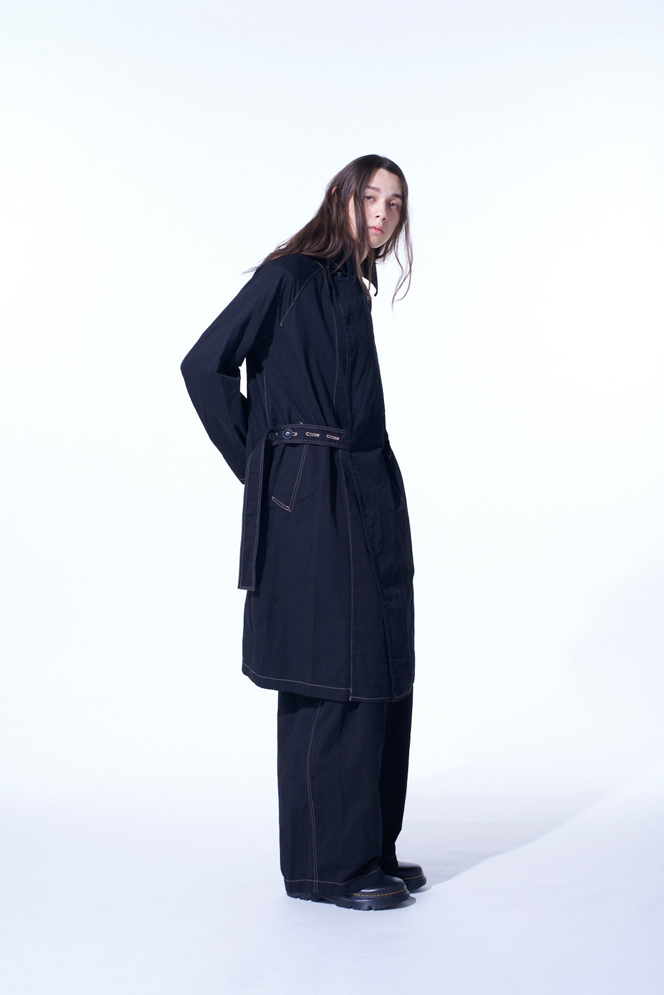 COTTON TWILL GARMENT DYED TIE-LOCKEN COAT
