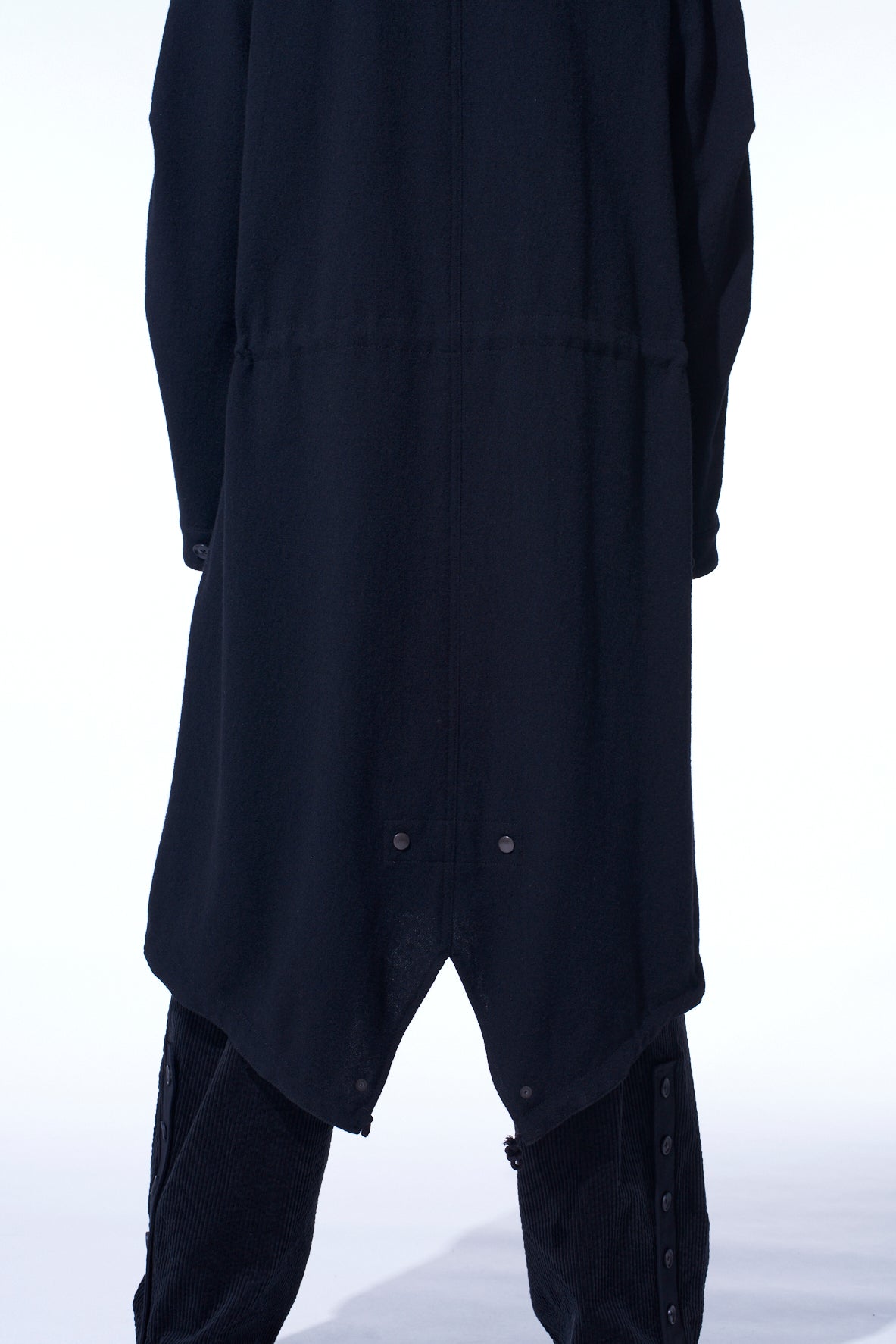 此产品是对美国陆军M-51大衣的现代改编,最初在1960年代受到英国mod风格的欢迎。以法兰绒制成,提供温暖和轻柔的触感。保留了经典细节,如袖褶、燕尾下摆和腰部抽绳,并通过双拉链调整宽松版型。