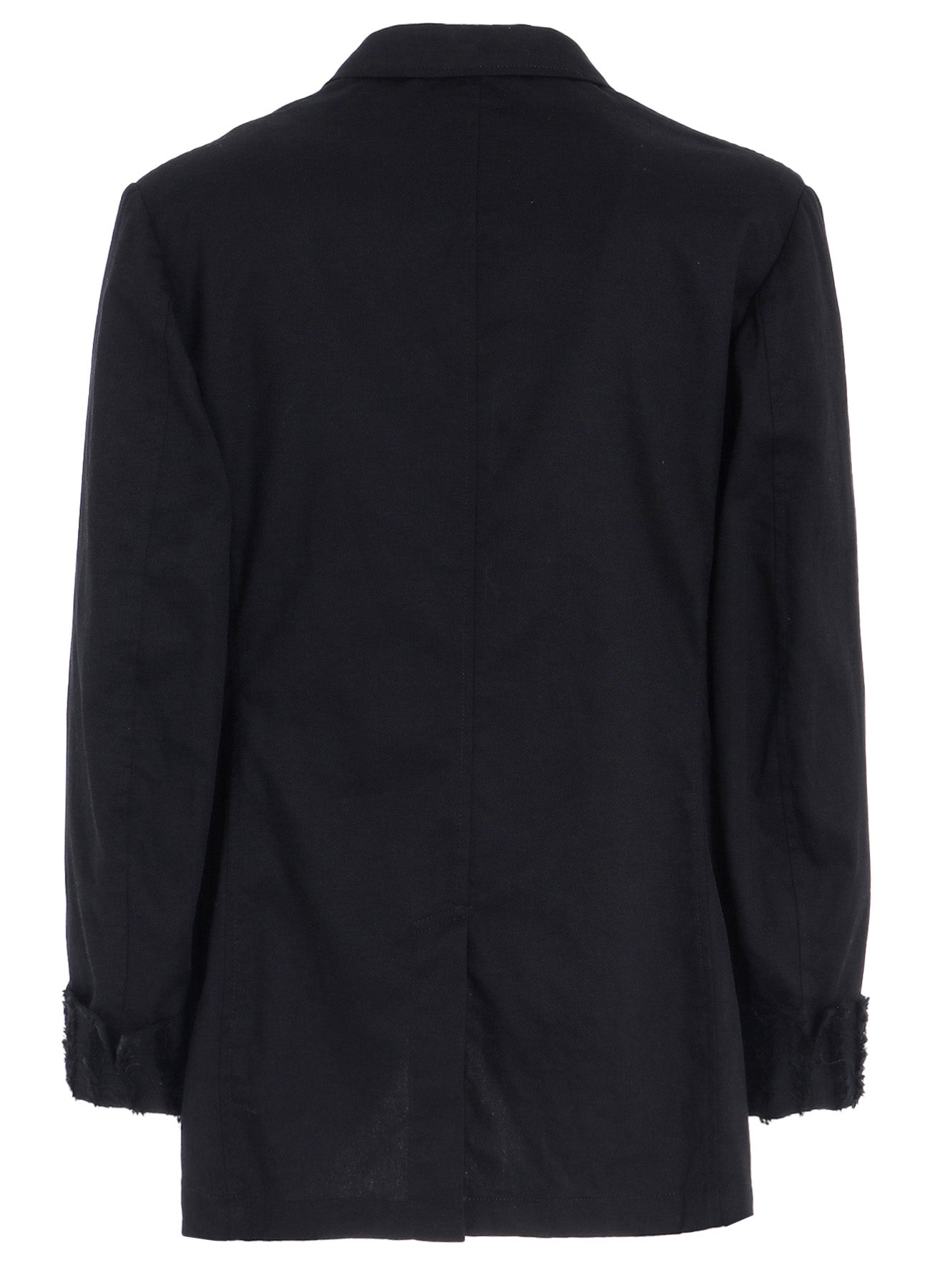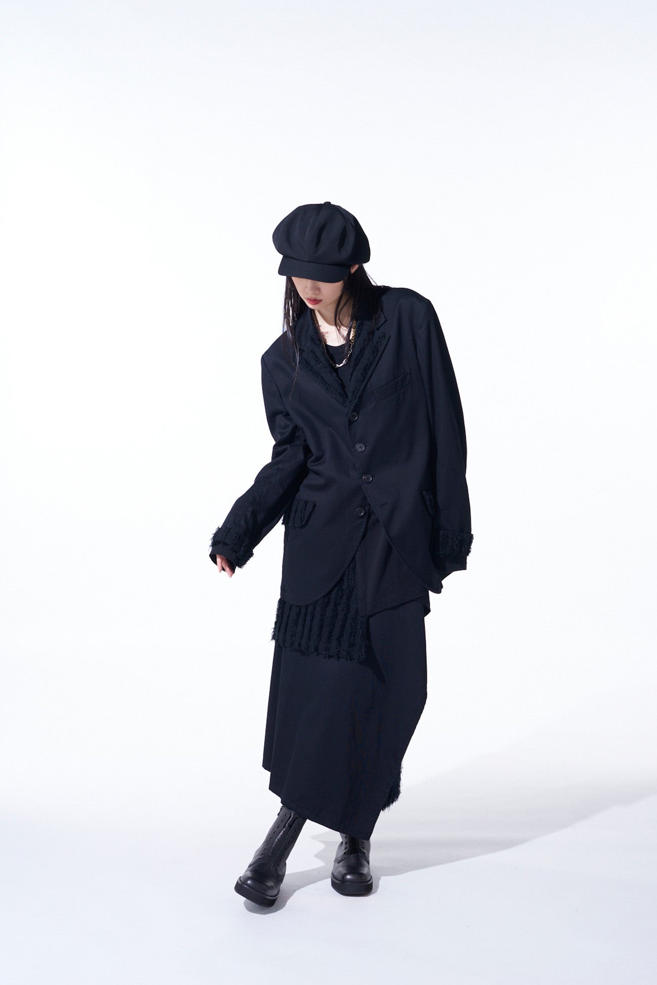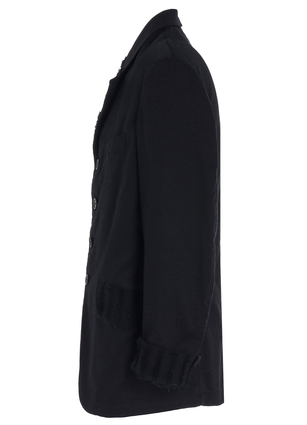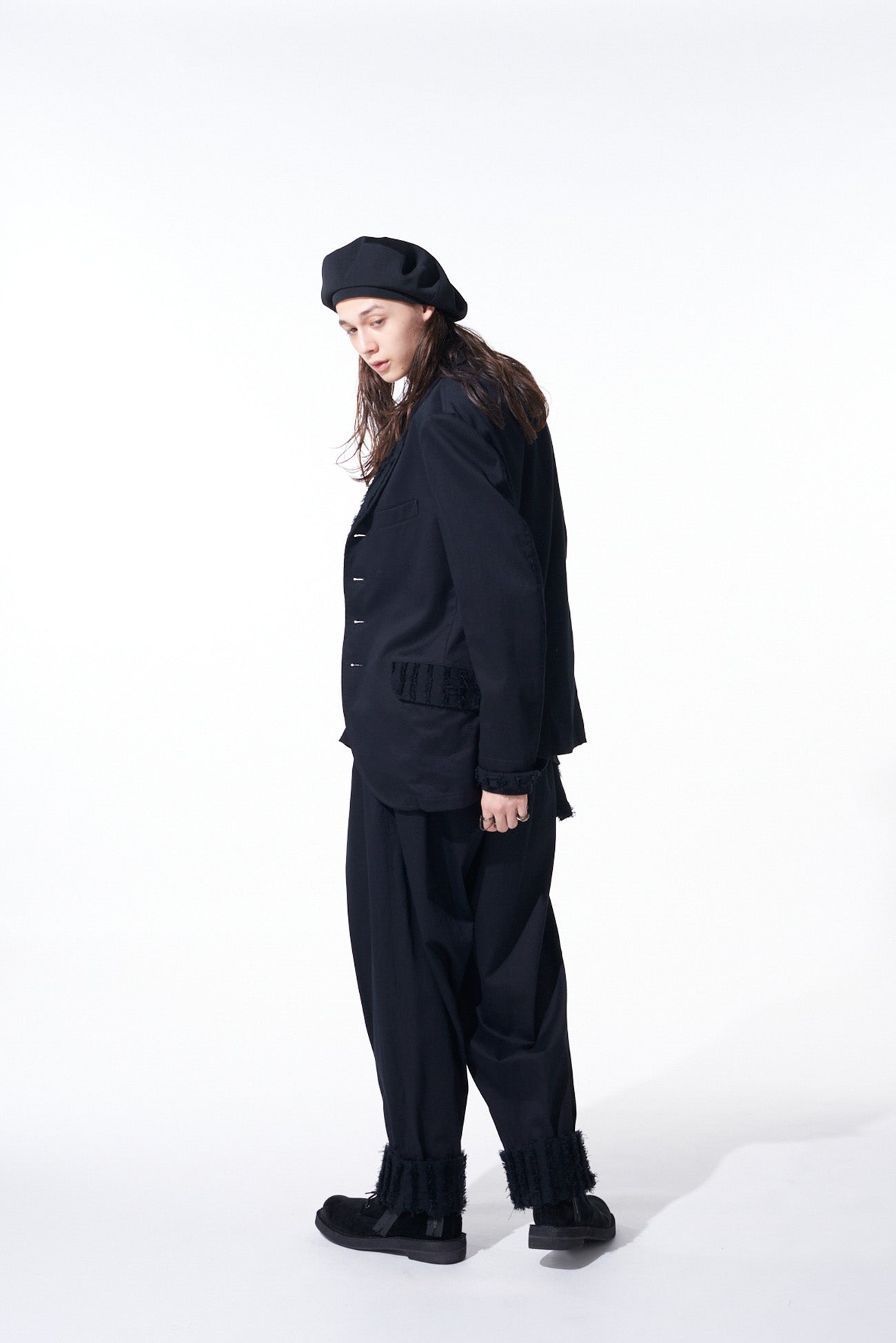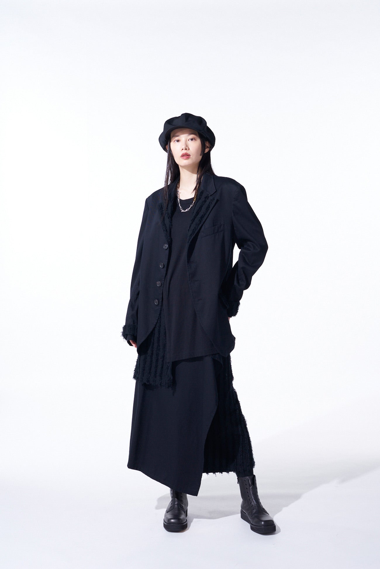 这款四扣棉斜纹夹克采用毛茸茸的JACQUARD面料制成。流苏条纹JACQUARD与平斜纹面料之间的对比形成鲜明的设计。上扣领口可实现立领设计。这款中等厚度的夹克提供了多样化和优雅的外观。