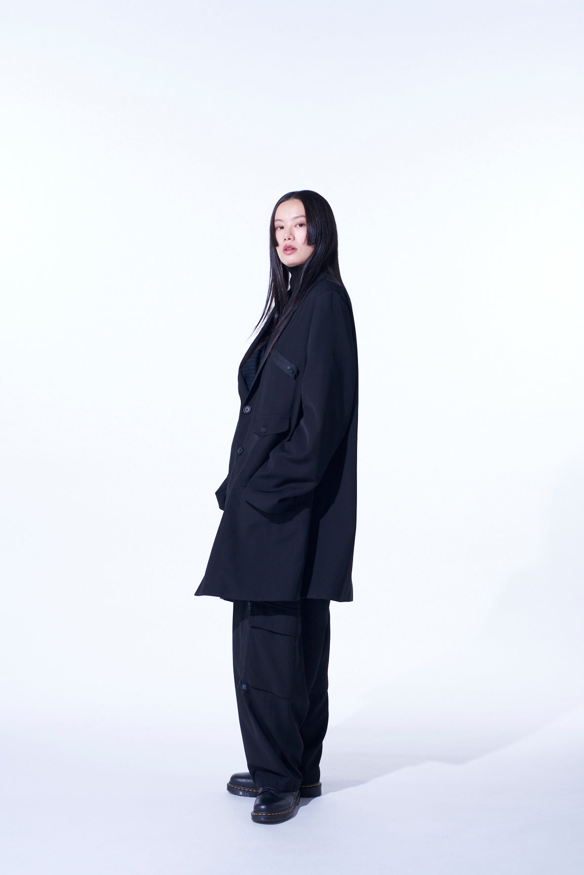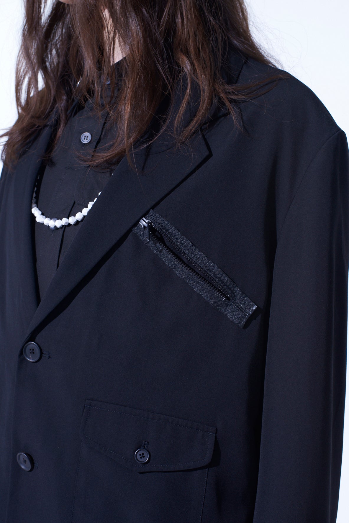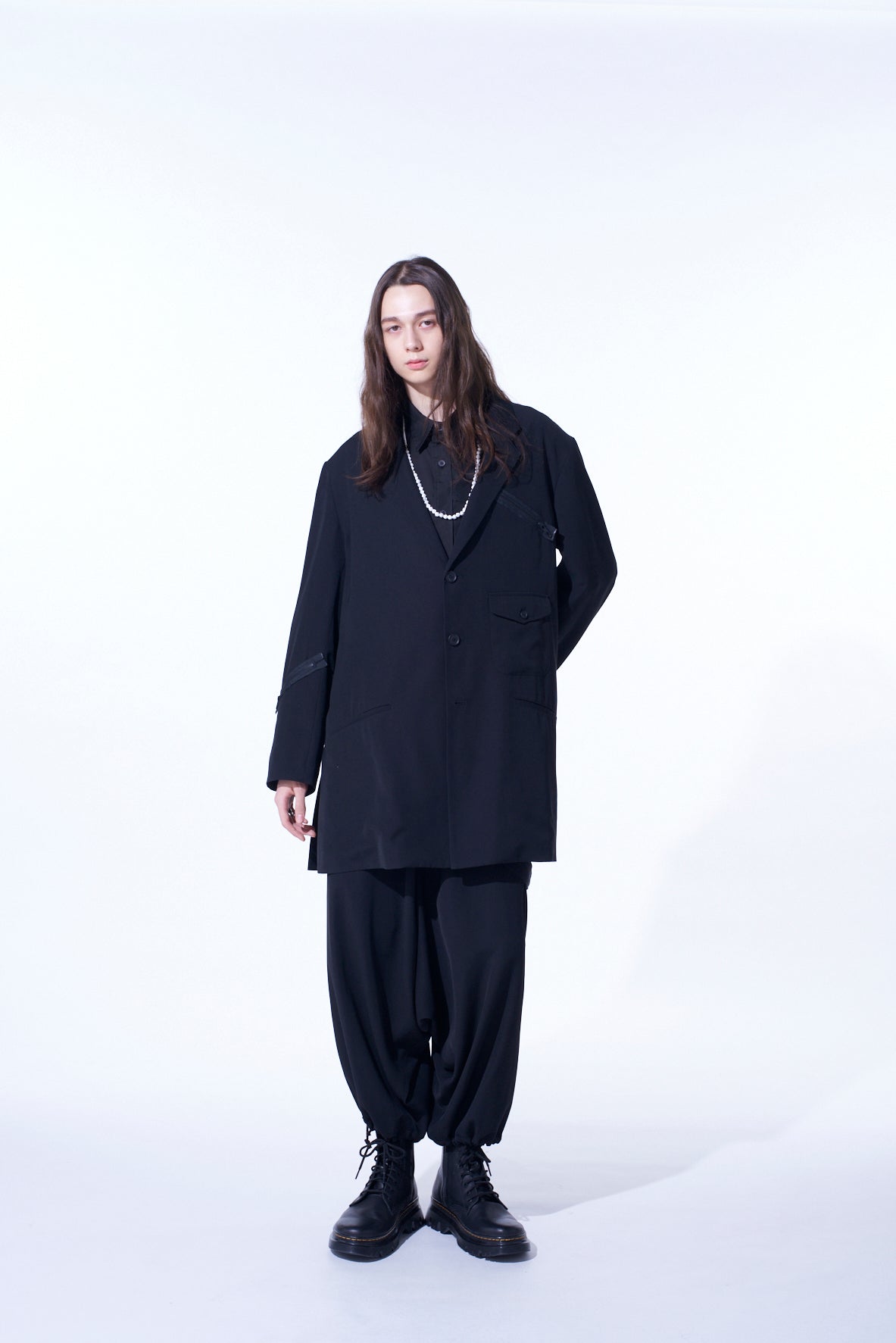 PE/GABARDINE ZIPPER-TAPED LONG JACKET