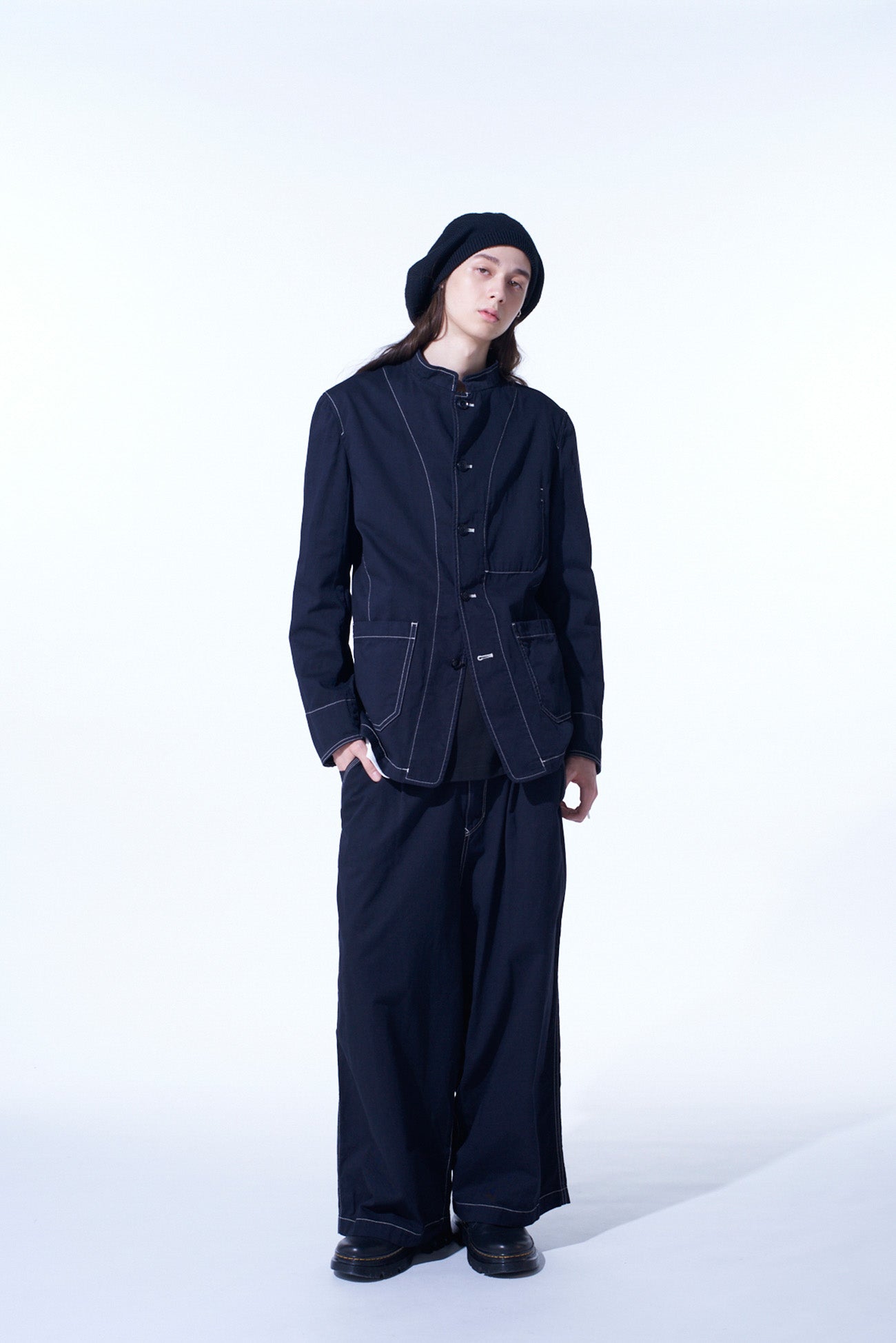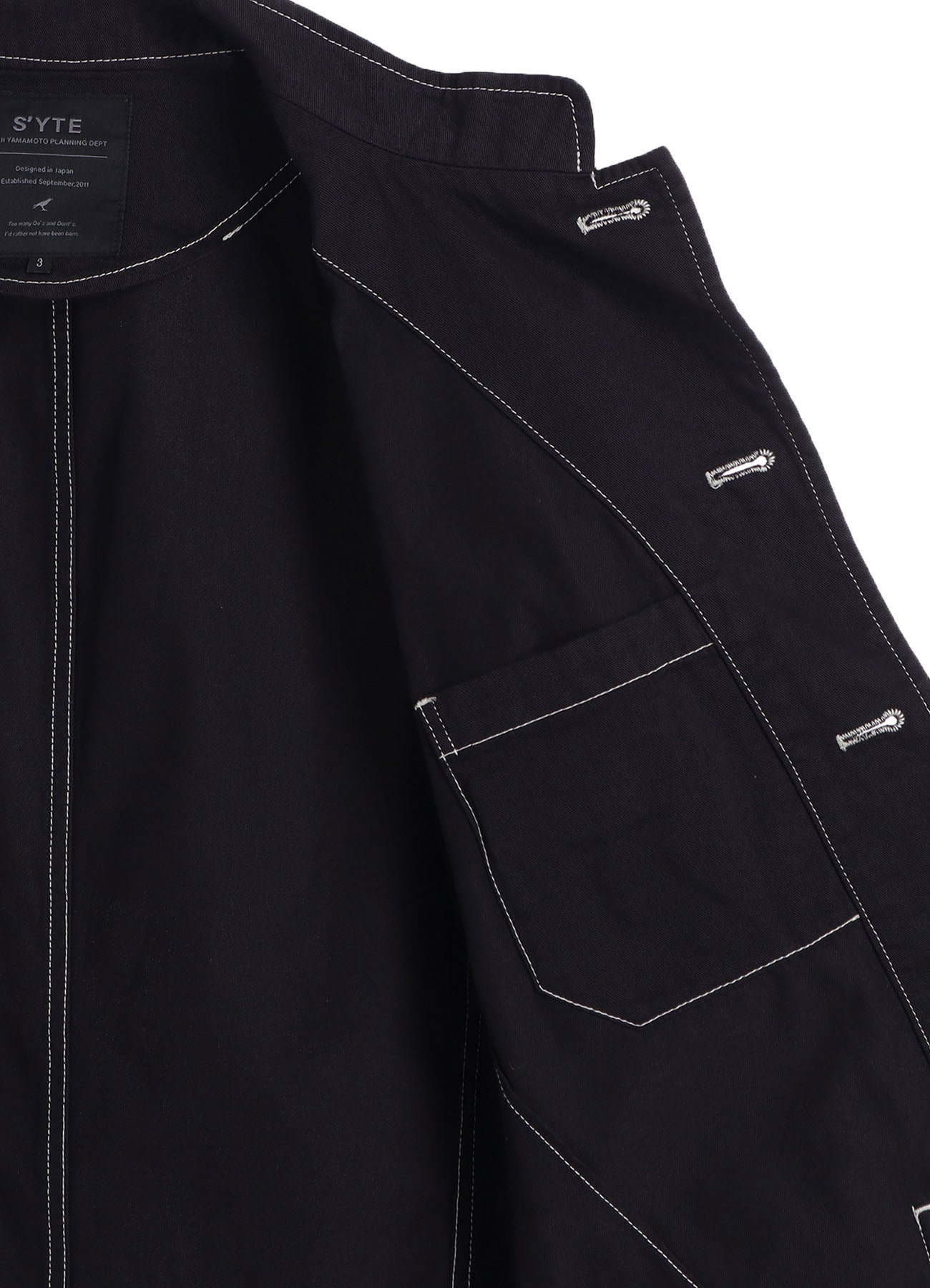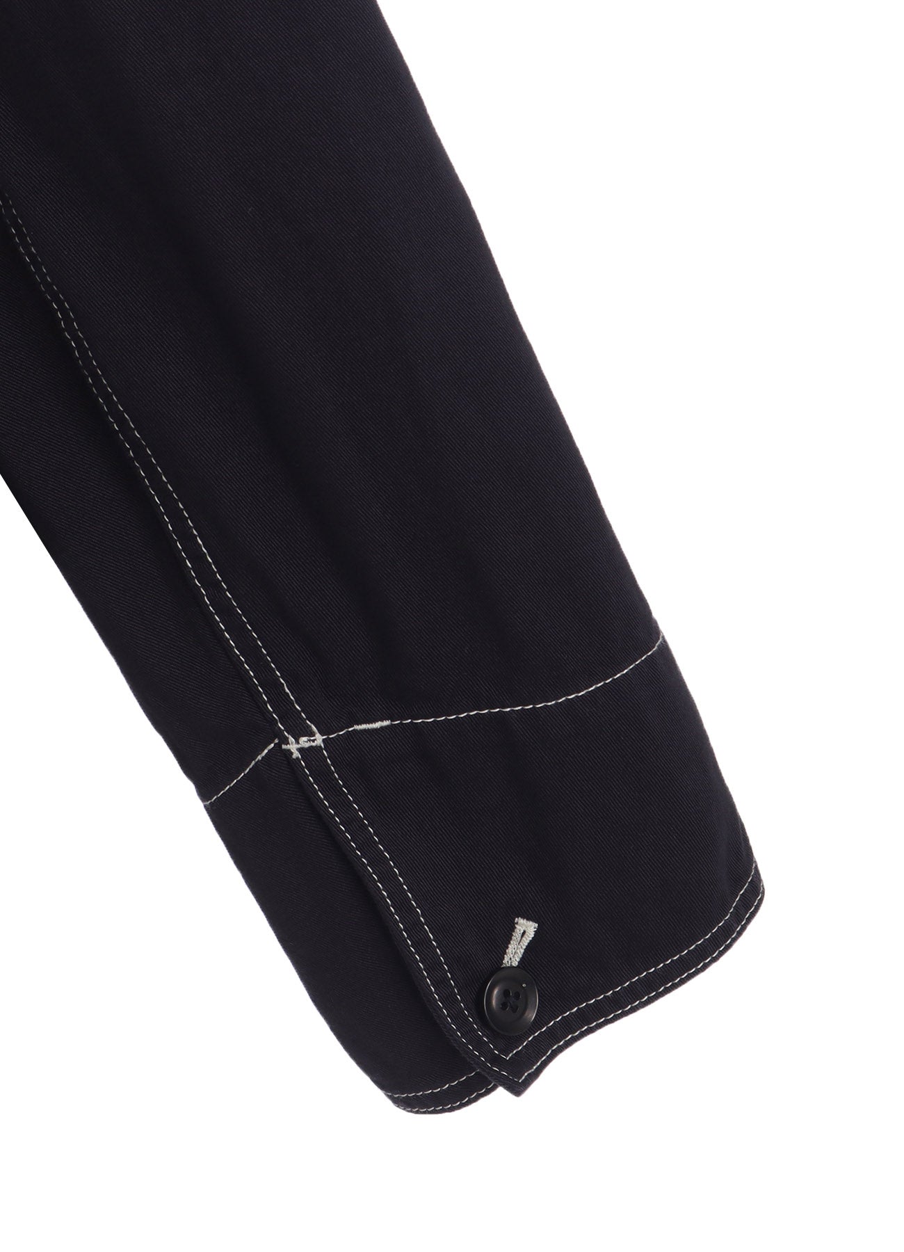 这款单层立领夹克可以像衬衫一样穿着,采用坚韧的棉制斜纹布,经过成衣染色处理,展现出磨损的外观。对比缝线的细节和类似于袋子外套的修身剪裁,提供了现代工作风格。提供海军蓝和黑色两种颜色,四季皆宜。