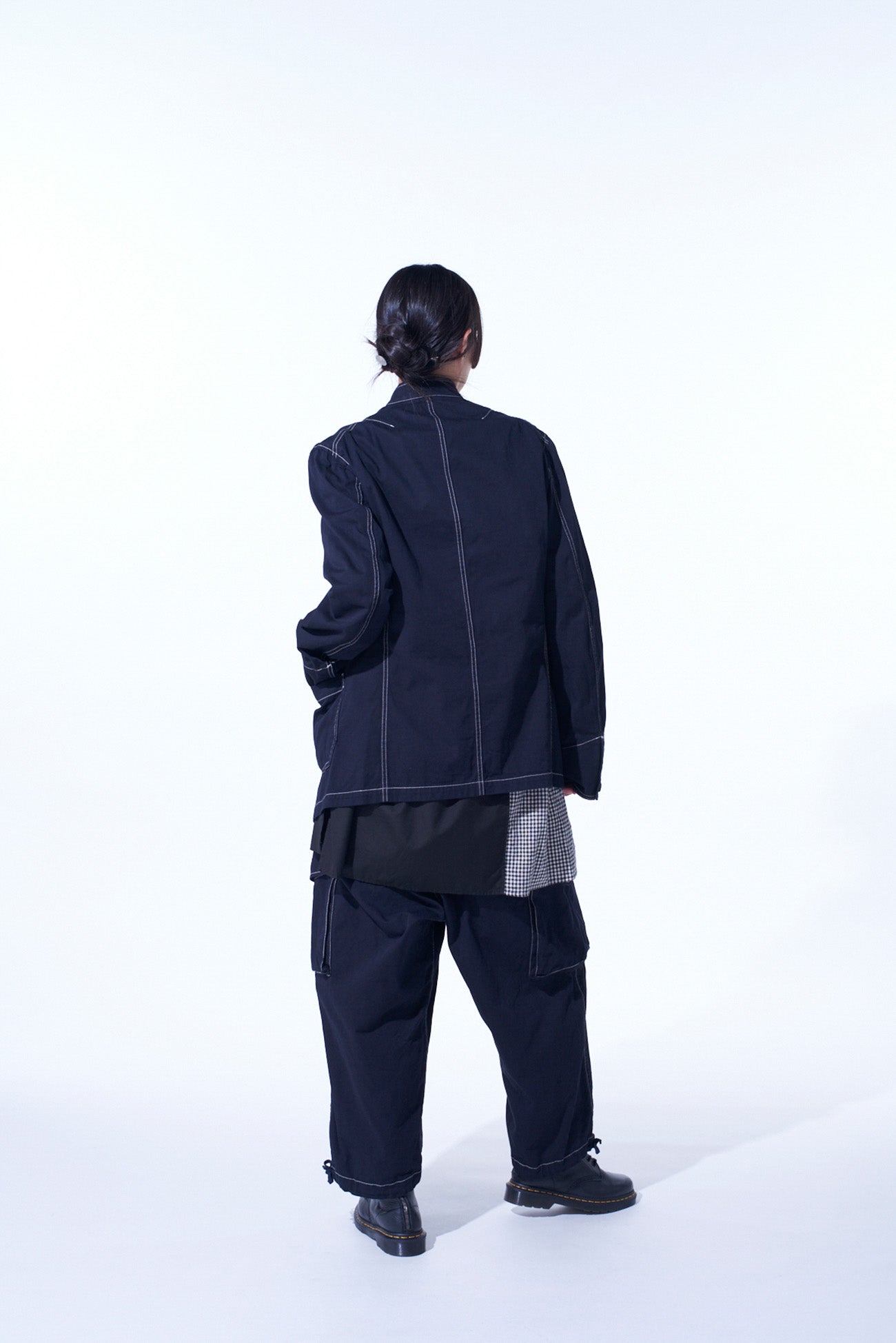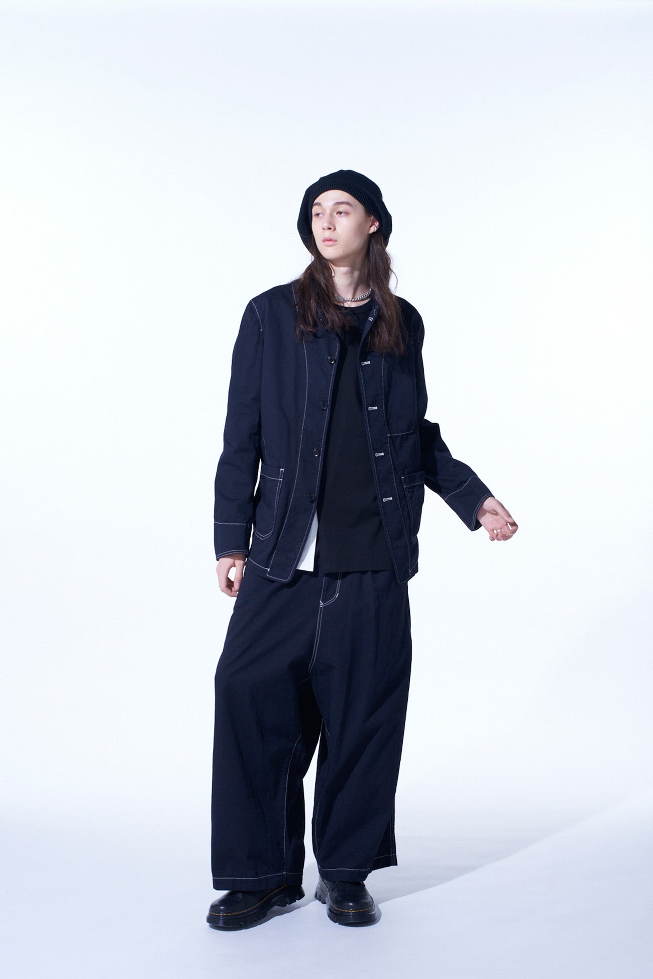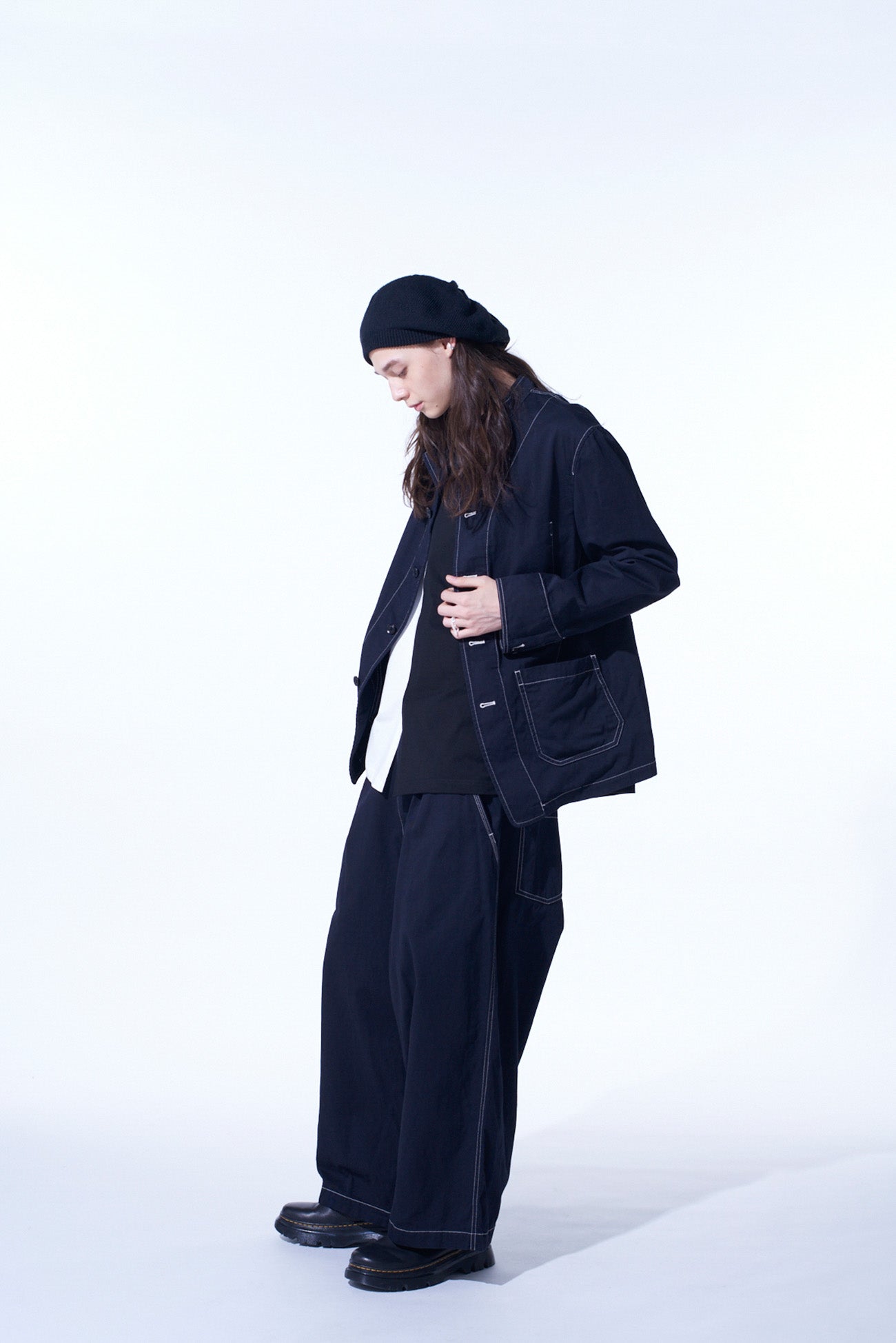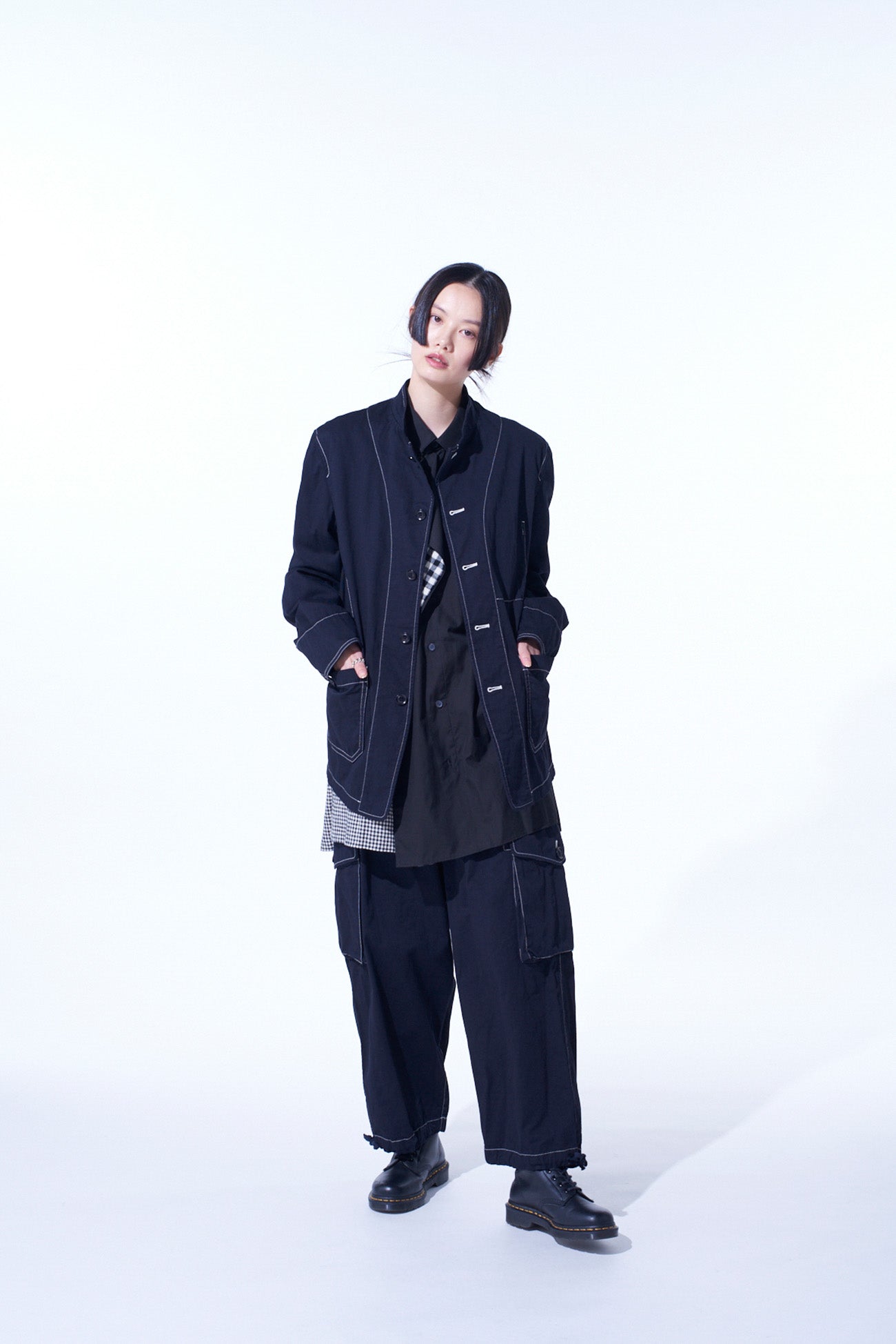 这款单层立领夹克可以像衬衫一样穿着,采用坚韧的棉制斜纹布,经过成衣染色处理,展现出磨损的外观。对比缝线的细节和类似于袋子外套的修身剪裁,提供了现代工作风格。提供海军蓝和黑色两种颜色,四季皆宜。