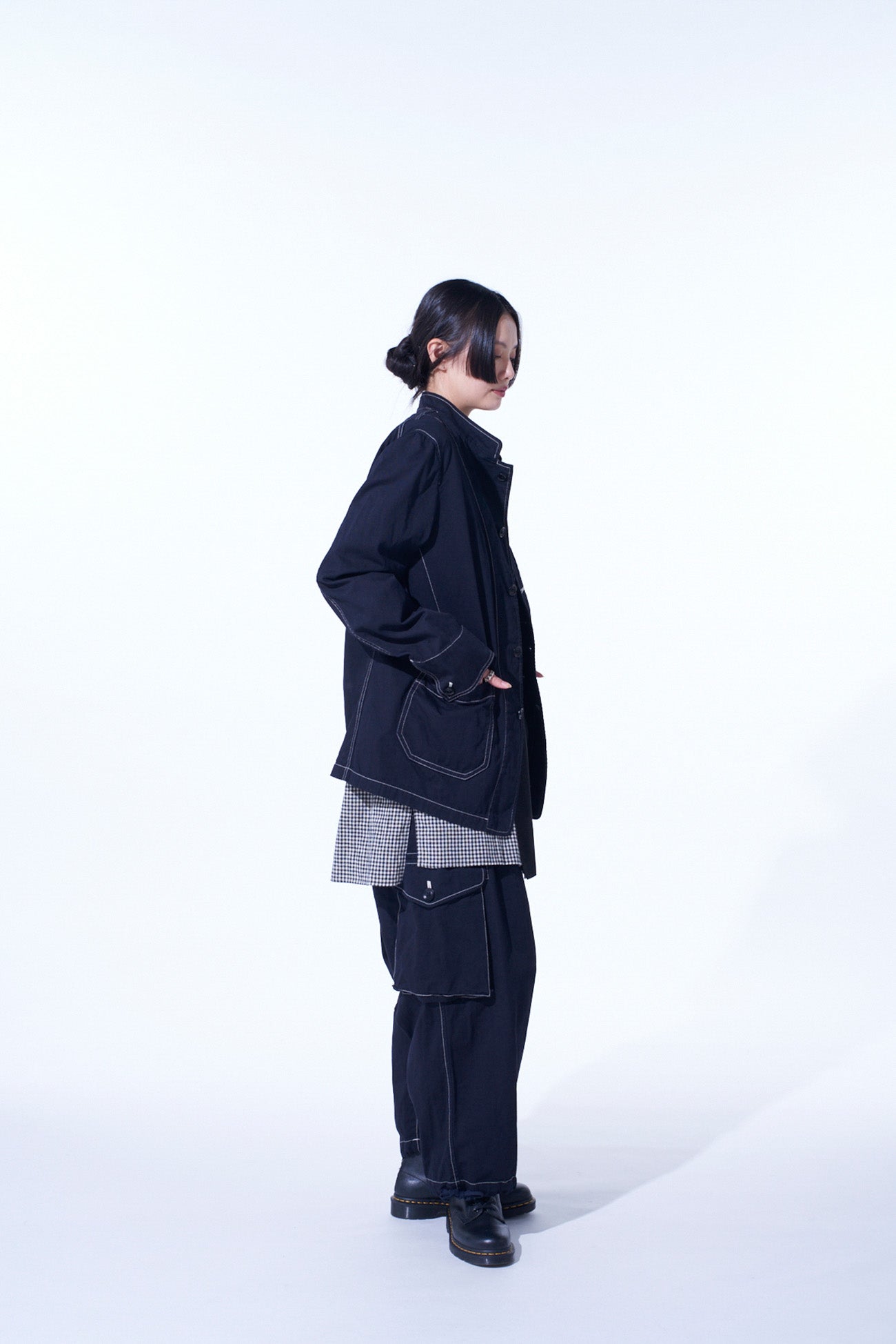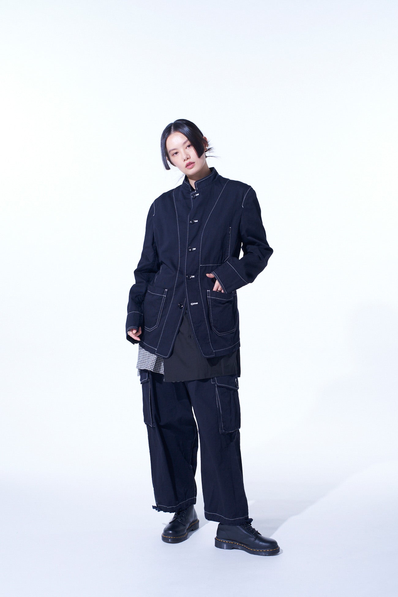 COTTON TWILL GARMENT DYED STAND COLLAR JACKET