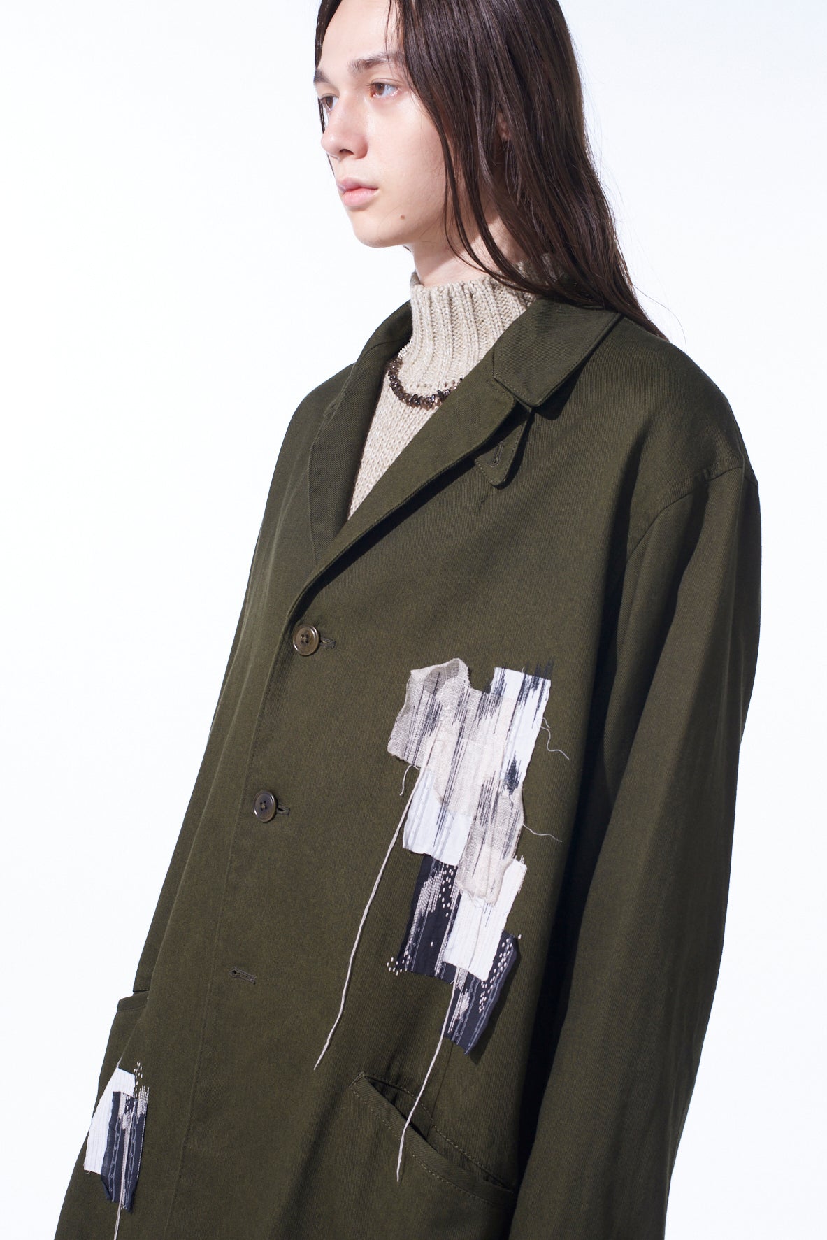 COTTON DRILL "BORO"APPLIQUE LONG JACKET