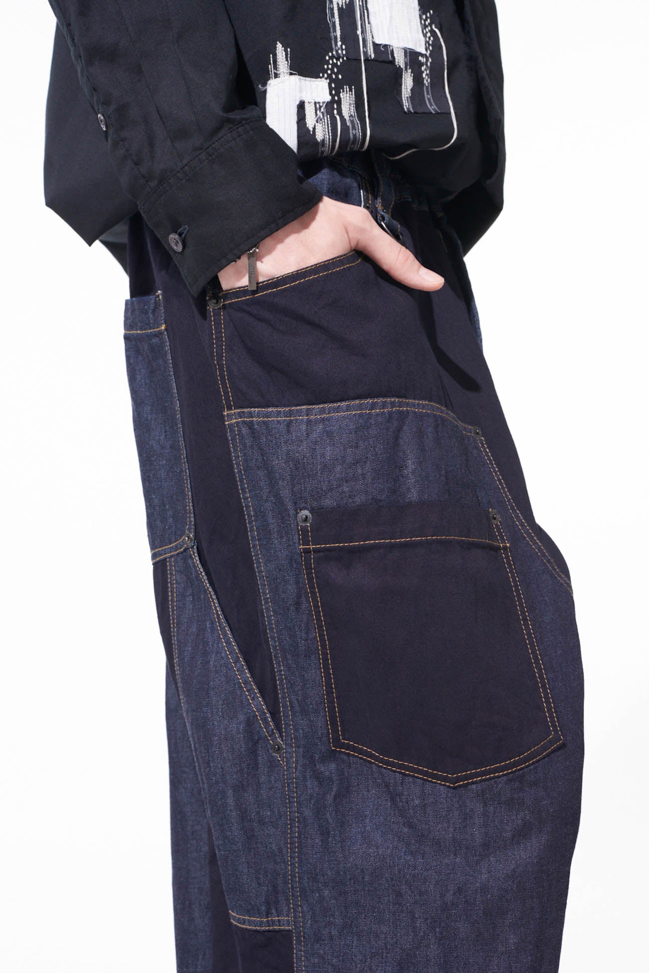 7OZ DENIM CRAZY PATCHWORK DOUBLE KNEE PAINTER PANTS