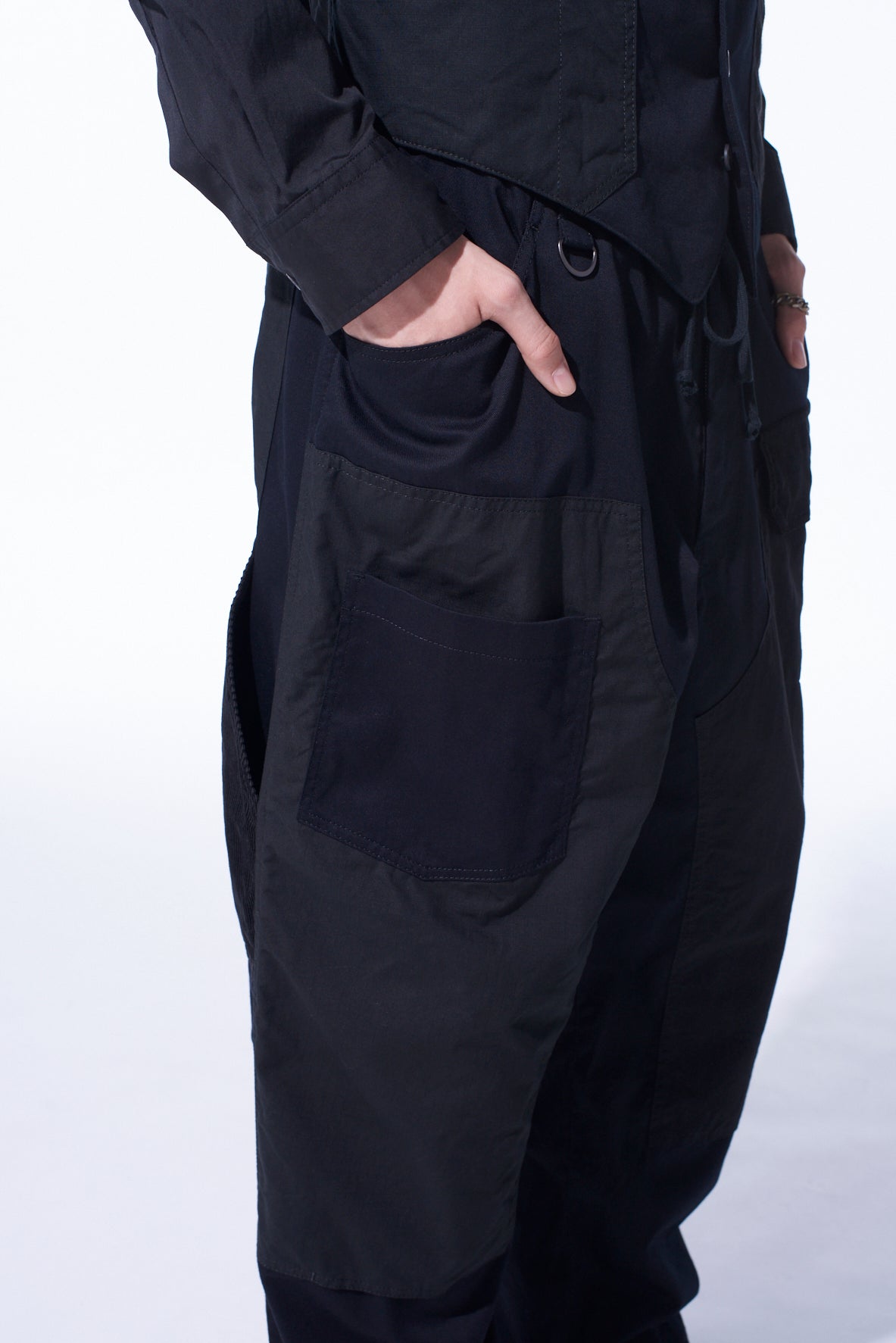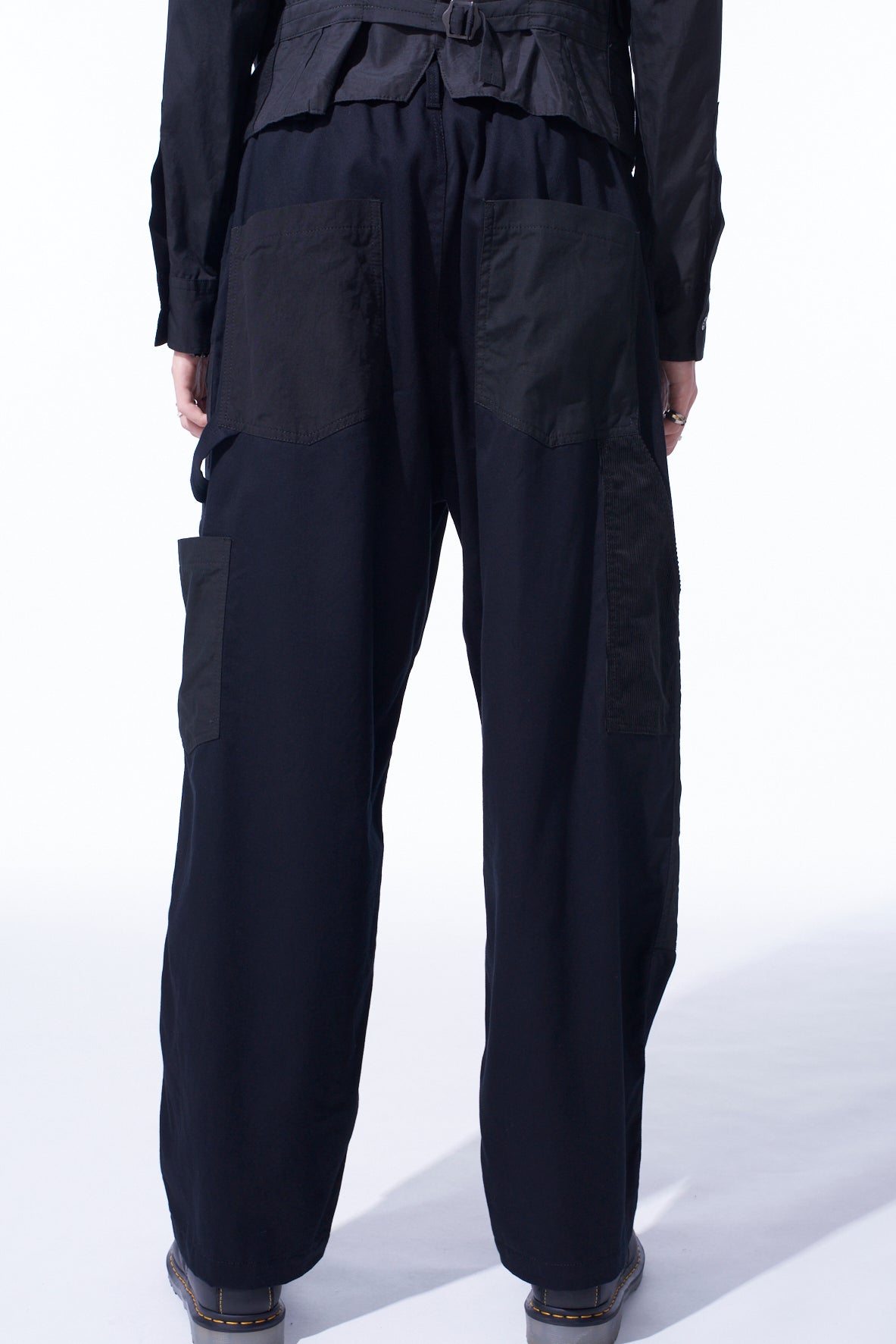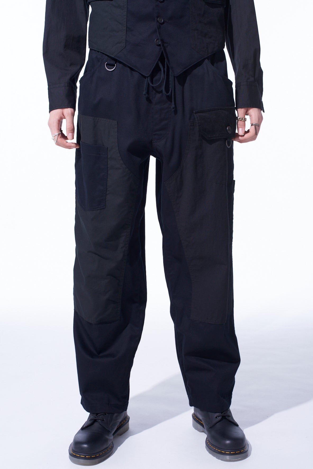 VARIOUS FABRICS CRAZY PATCHWORK DOUBLE KNEE PAINTER PANTS