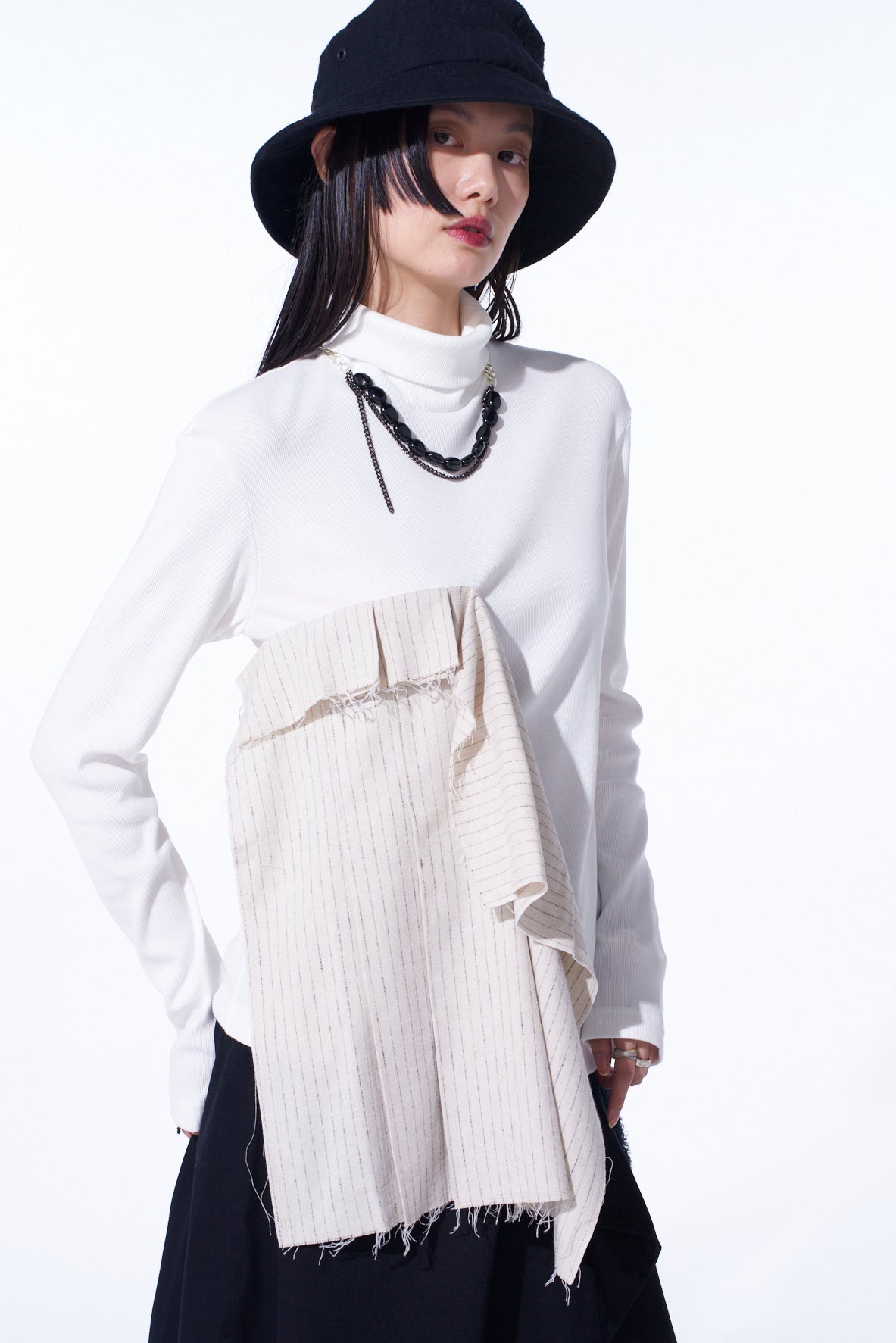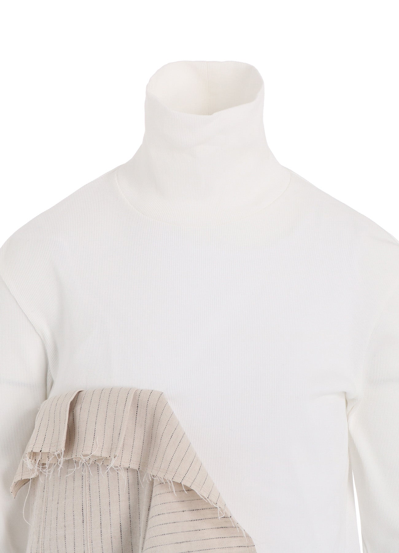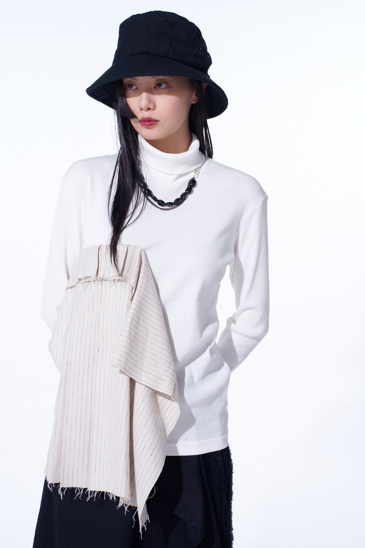 COTTON RIB JERSEY LONG-SLEEVED HIGH-NECK T-SHIRT WITH PLEATED STRIPES FABRIC