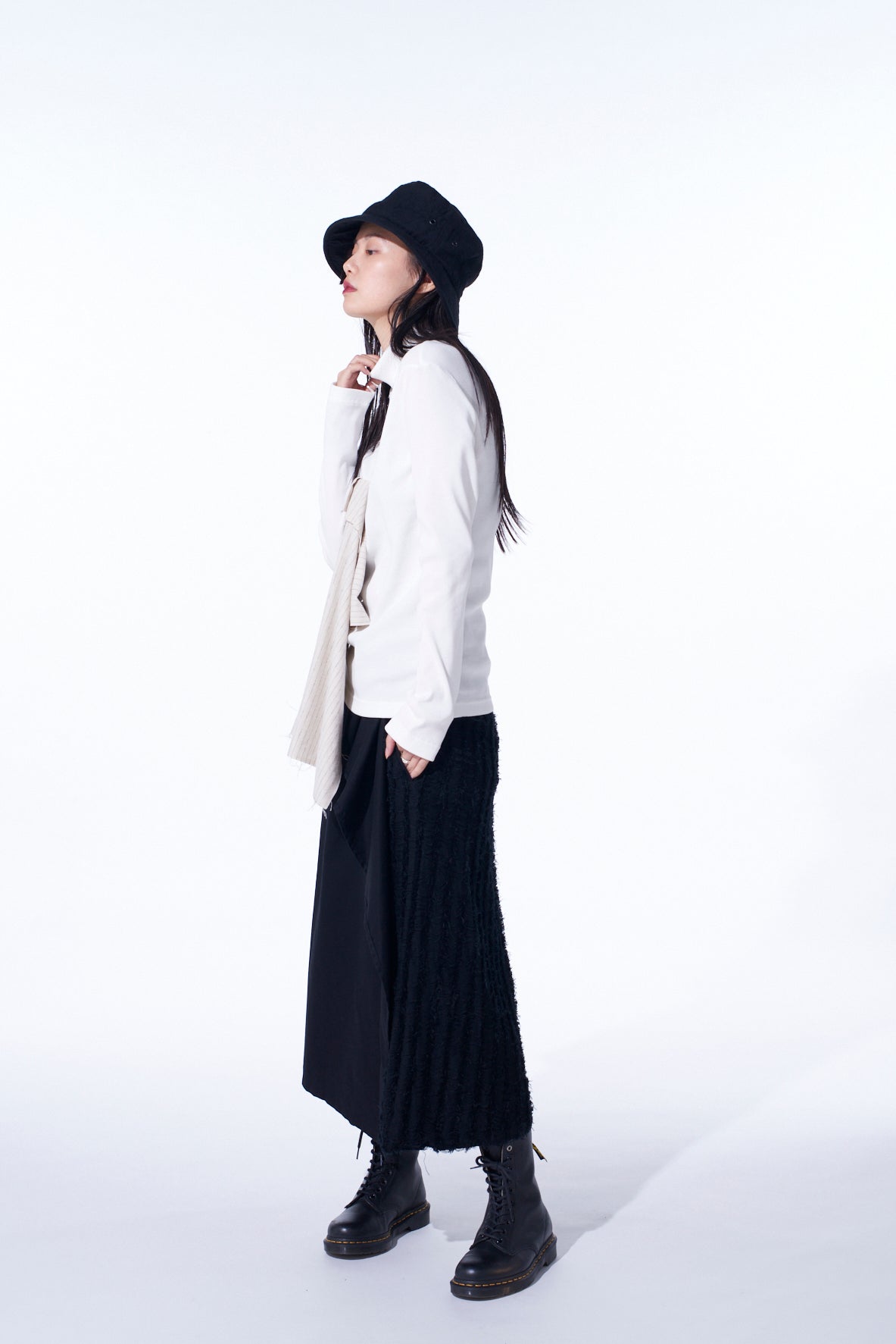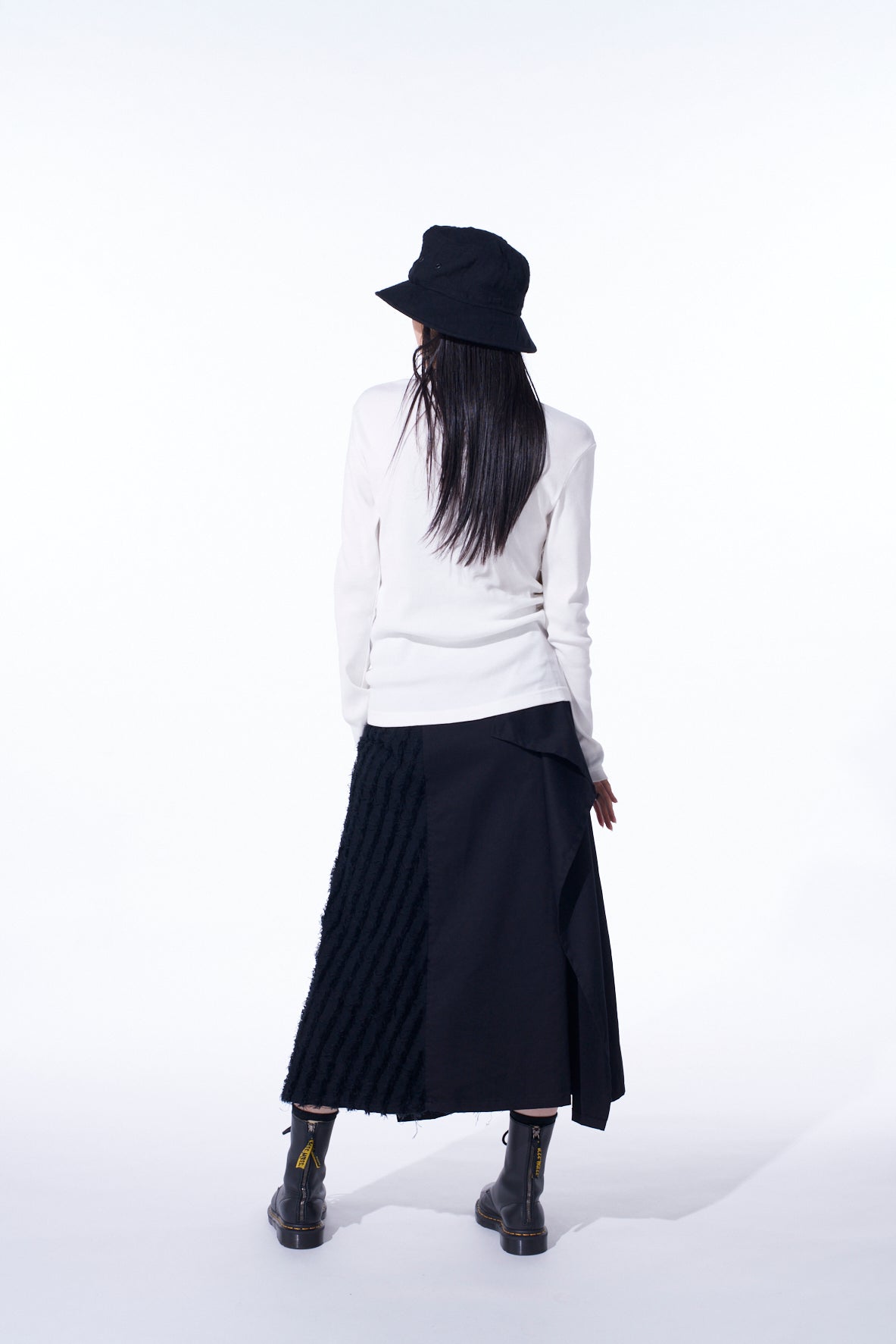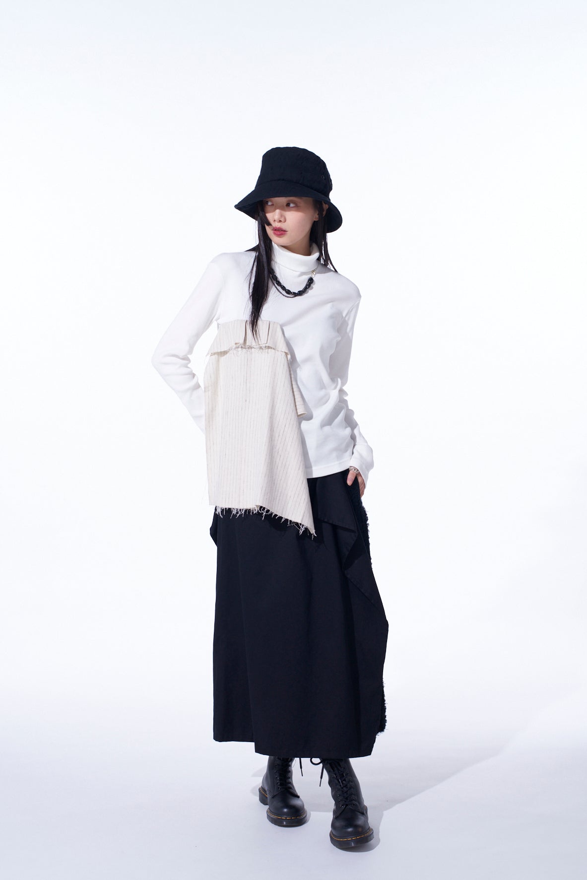 COTTON RIB JERSEY LONG-SLEEVED HIGH-NECK T-SHIRT WITH PLEATED STRIPES FABRIC