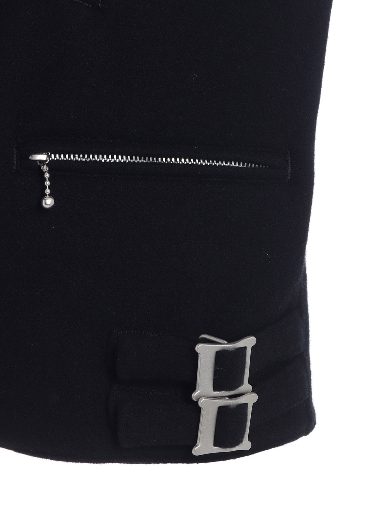 这款双层摩托车夹克由Bishu melton羊毛制成,以其防风性和保暖性著称。它通过使用球链口袋、双扣带和UNIVERSAL拉链等设计元素,为粗犷时尚带来现代感。短版设计提升了下装的搭配多样性,结合温暖与舒适。