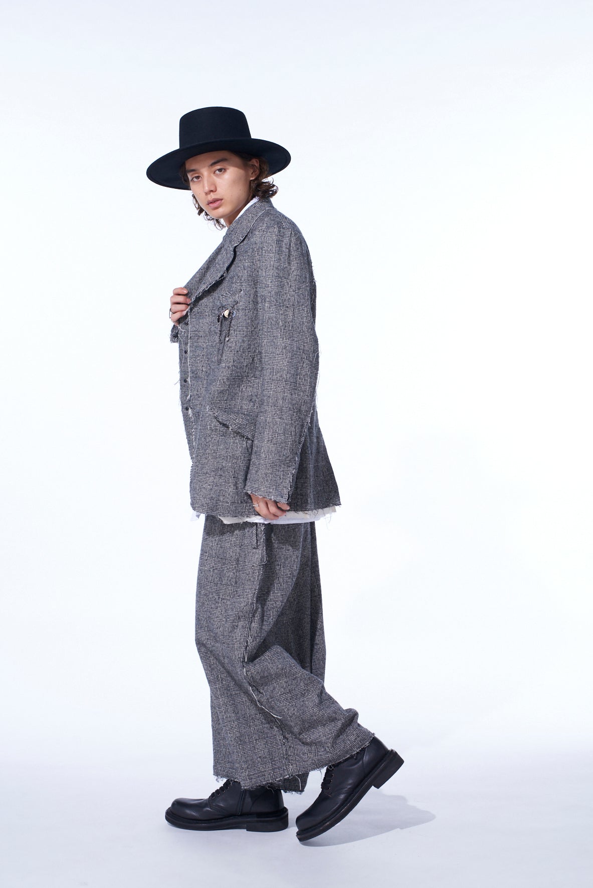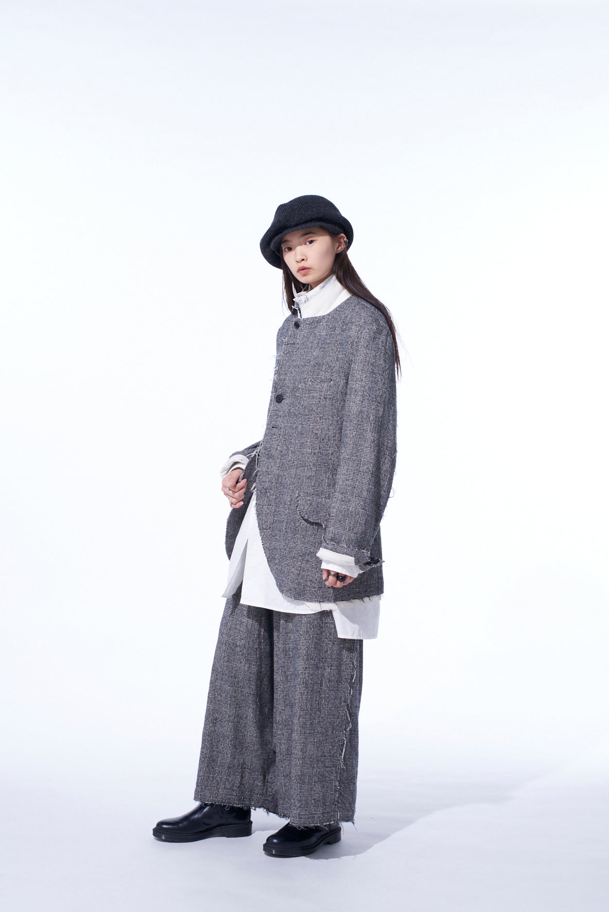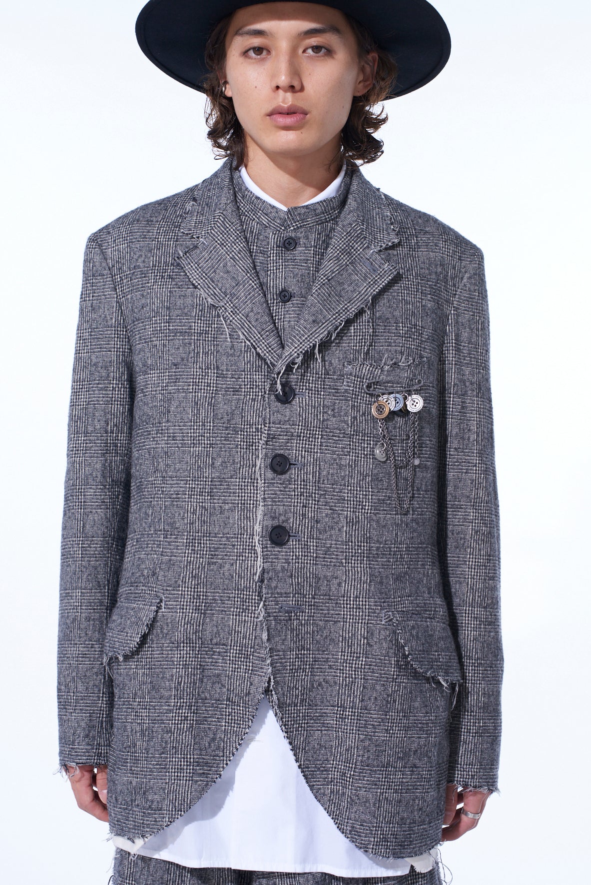 GLEN CHECK CUT-OUT HEM JACKET