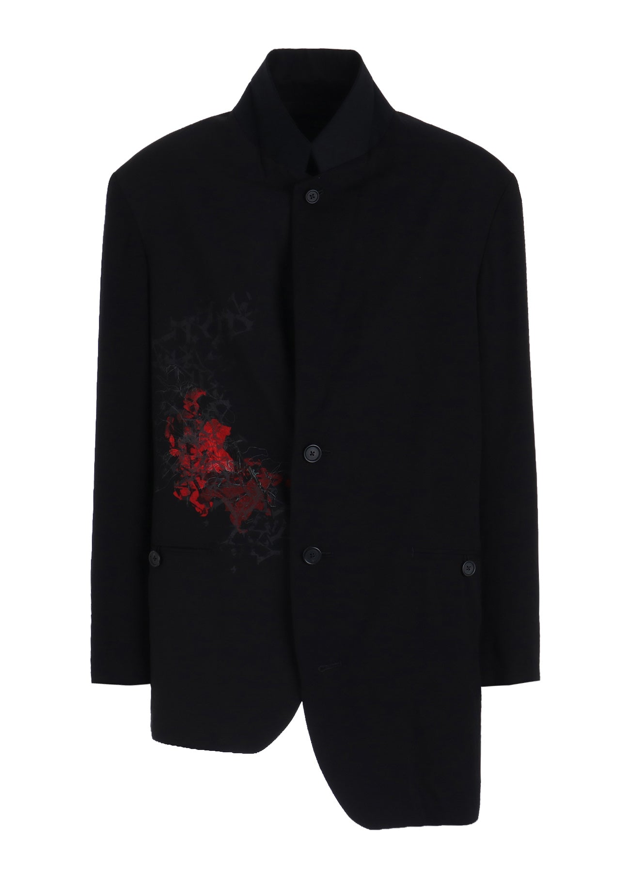 HIGH-TWIST TA/VIS “Y” LETTER AND RED FLOWER PRINT ASYMMETRIC JACKET