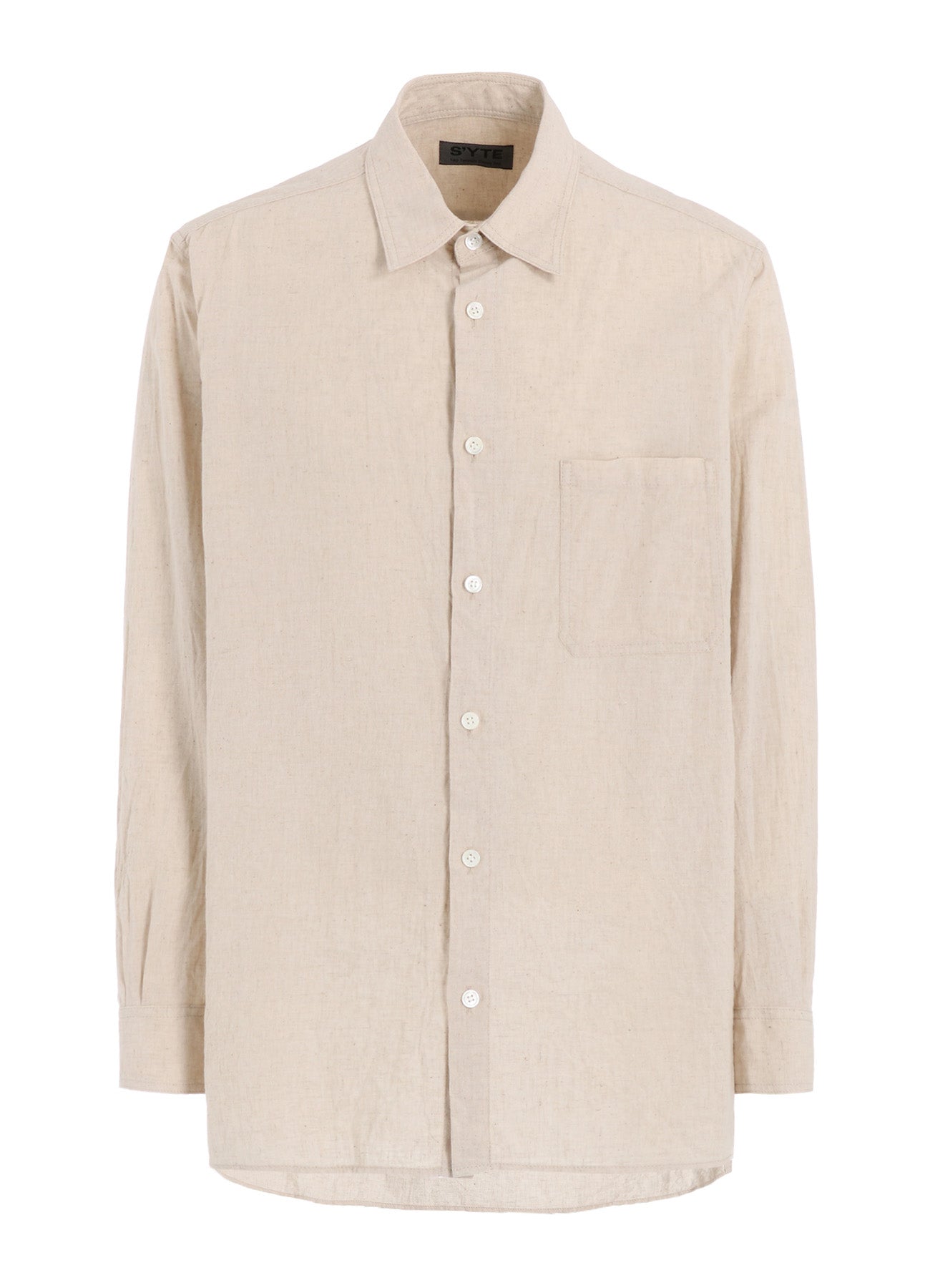COTTON/LINEN POPLIN LOOSE-FIT REGULAR COLLAR SHIRT
