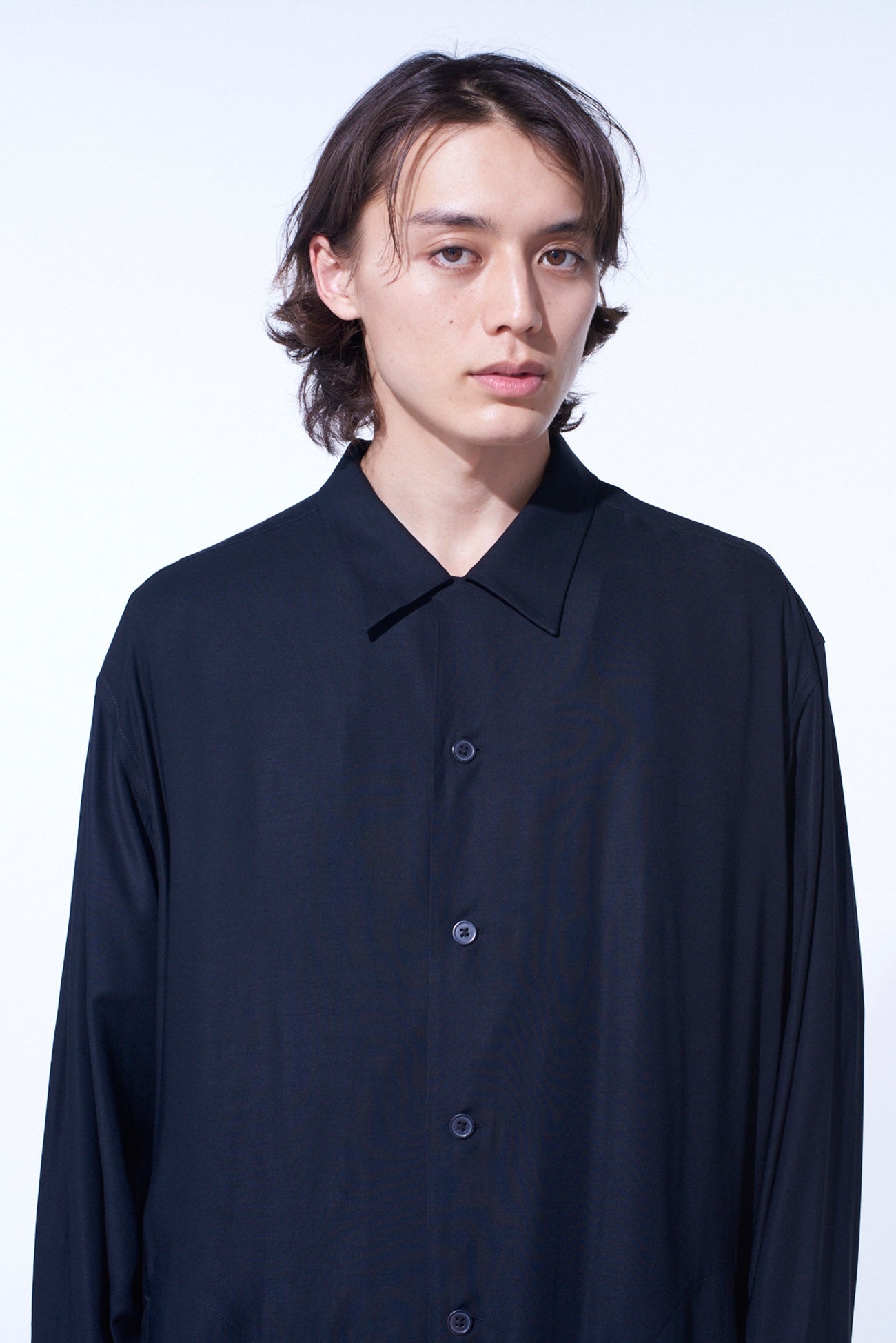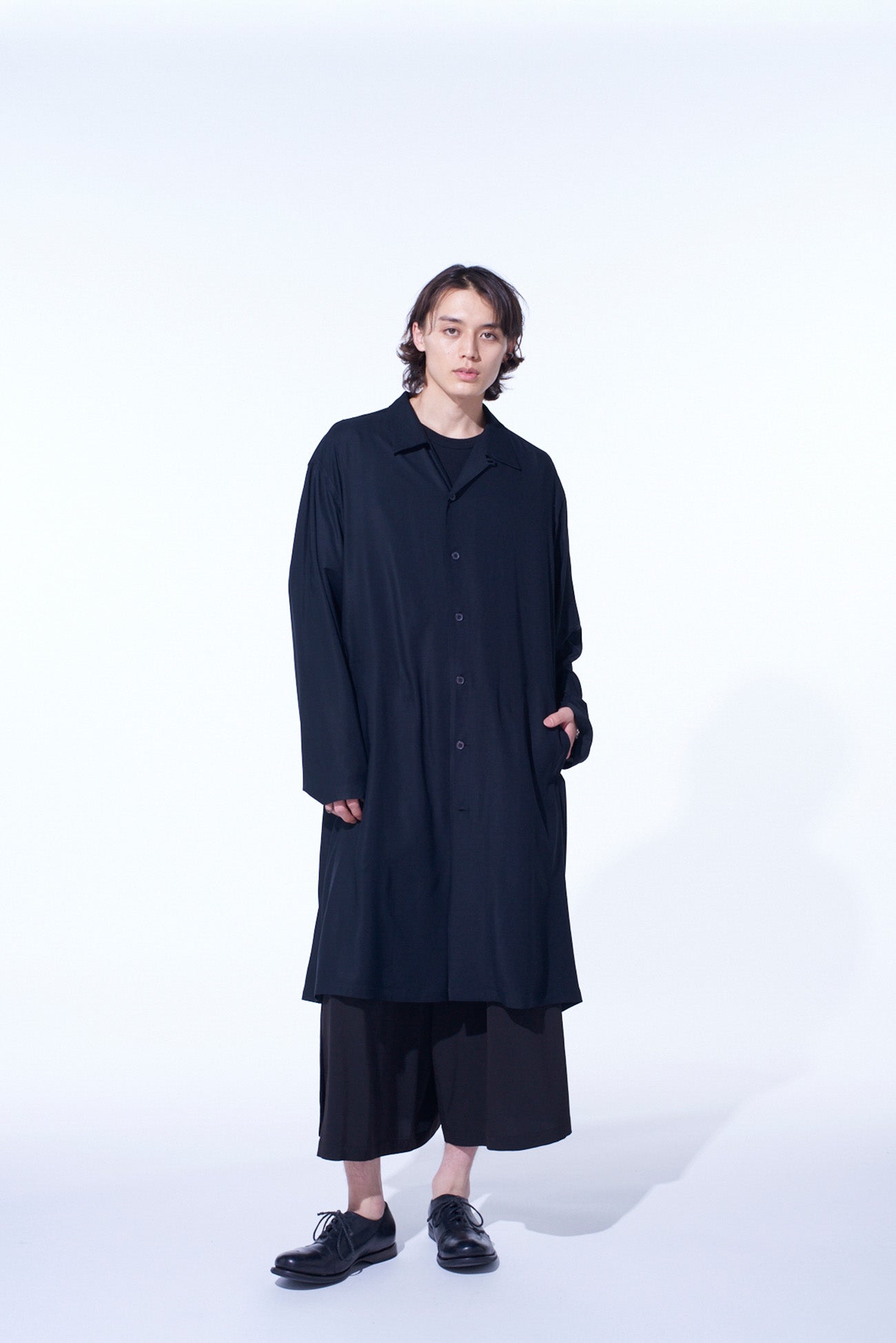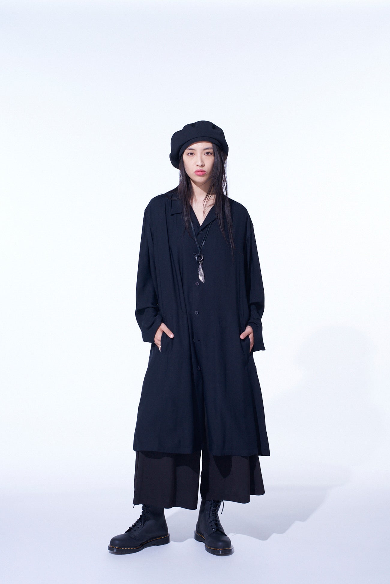 RAYON TWILL OPEN-COLLAR LONG SHIRT