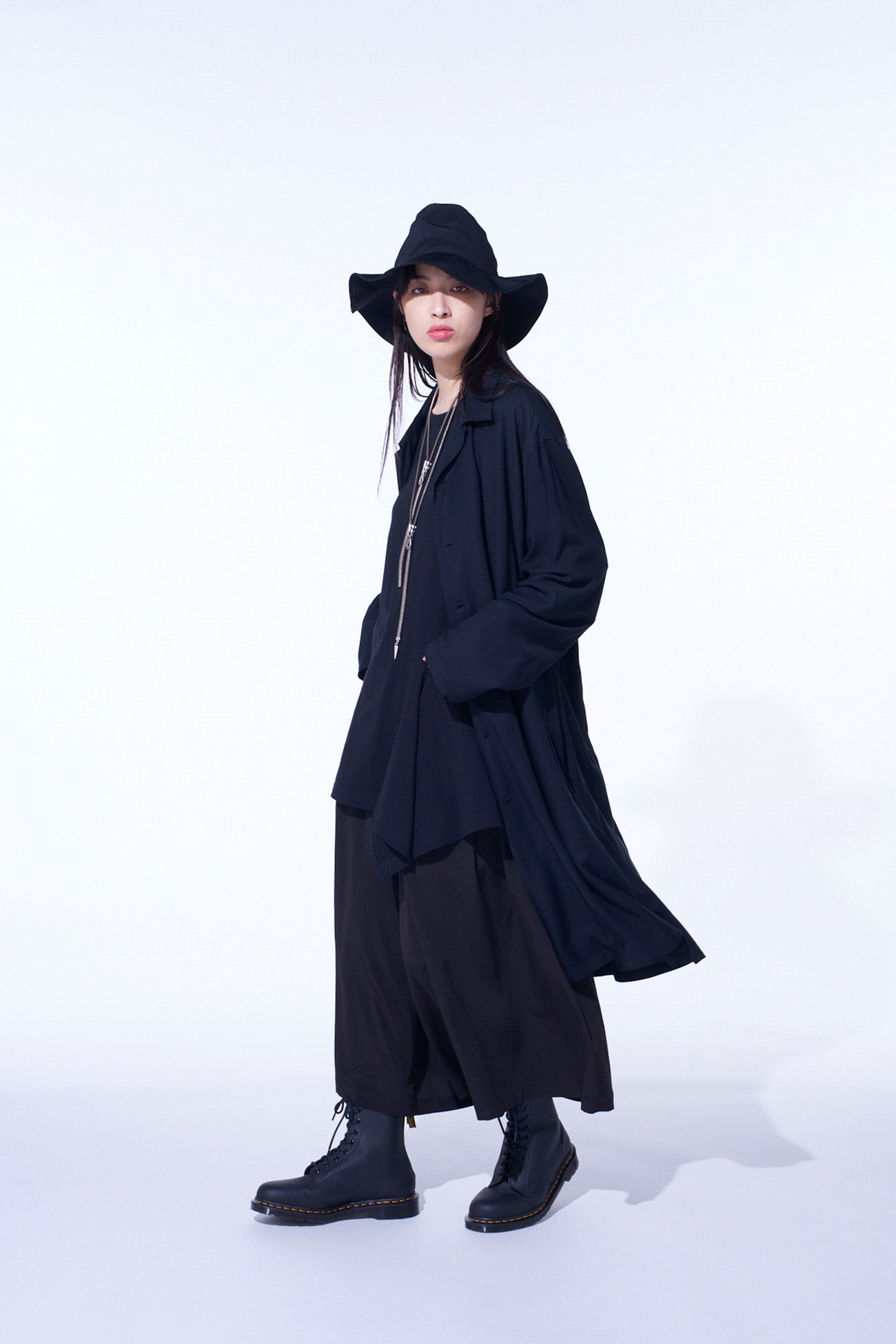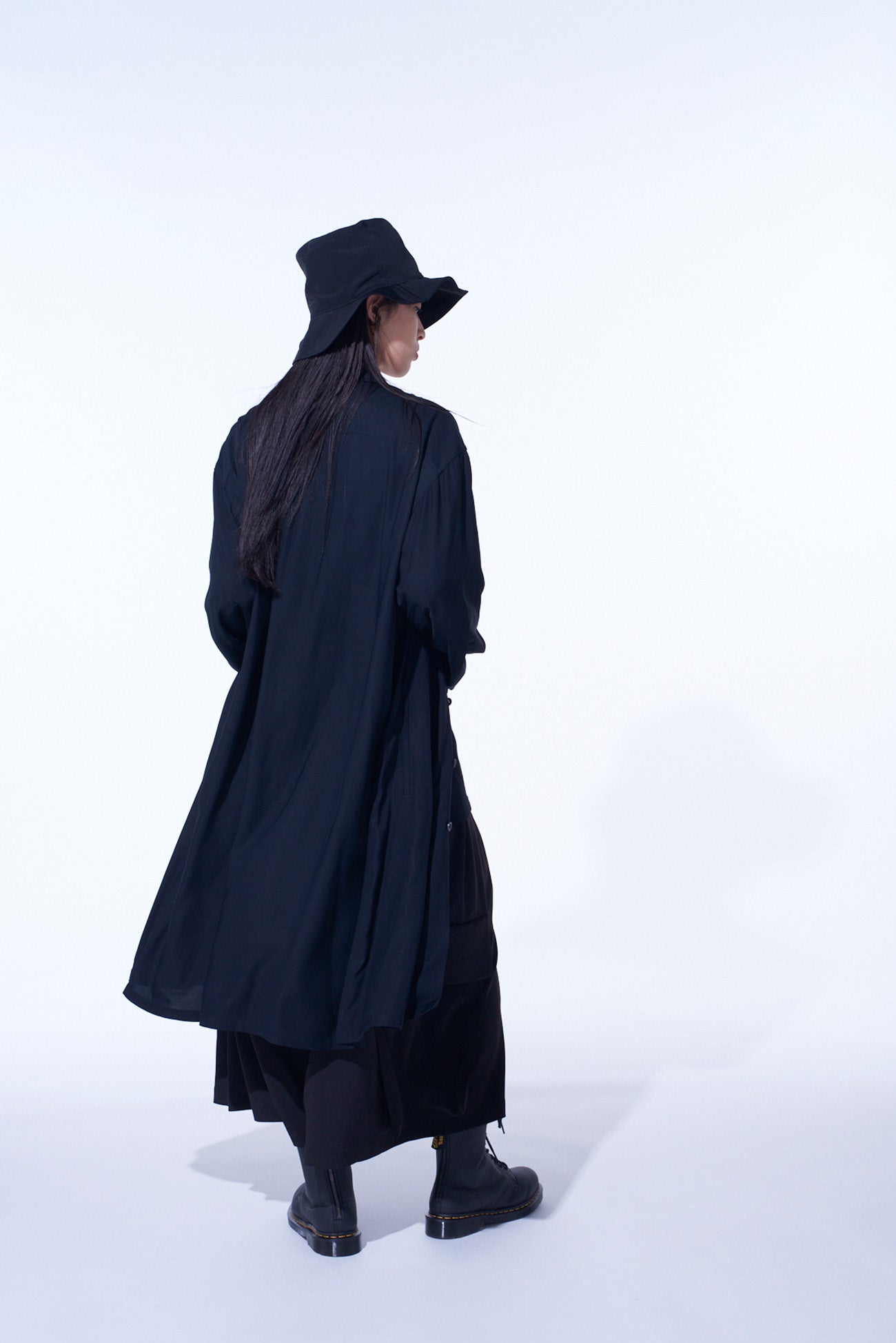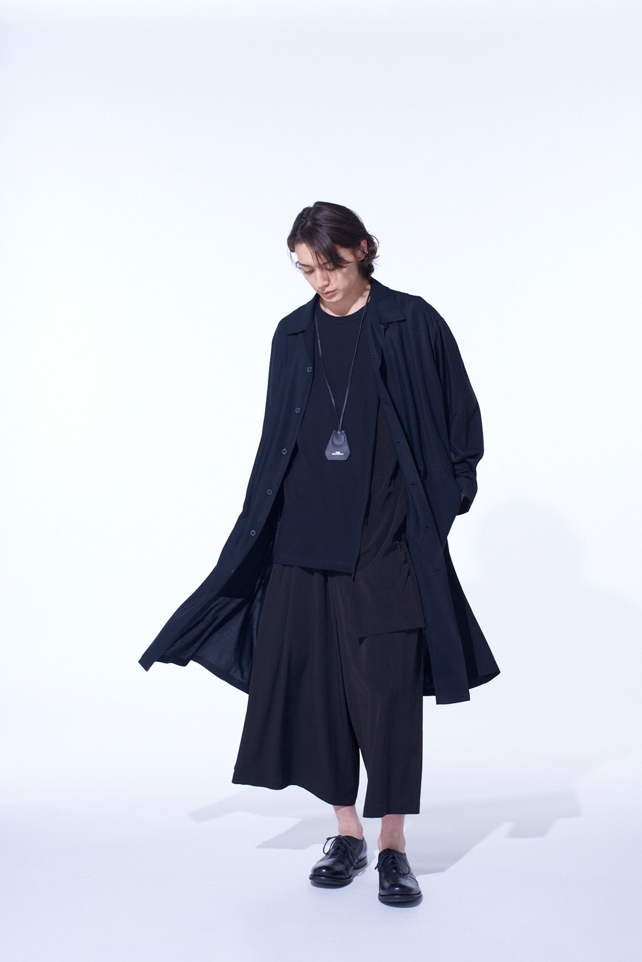 RAYON TWILL OPEN-COLLAR LONG SHIRT