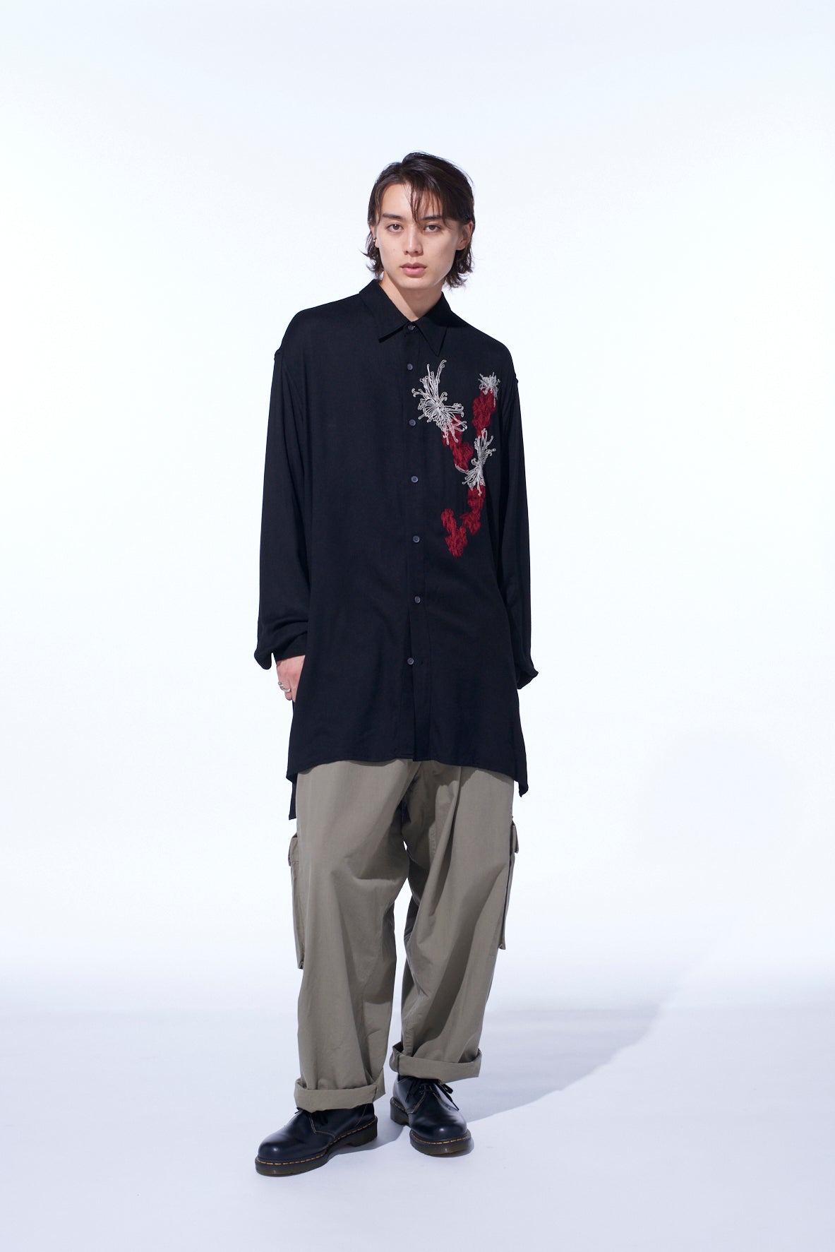 VISCOSE TWILL CHRYSANTHEMUM EMBROIDERY OVERSIZED SHIRT