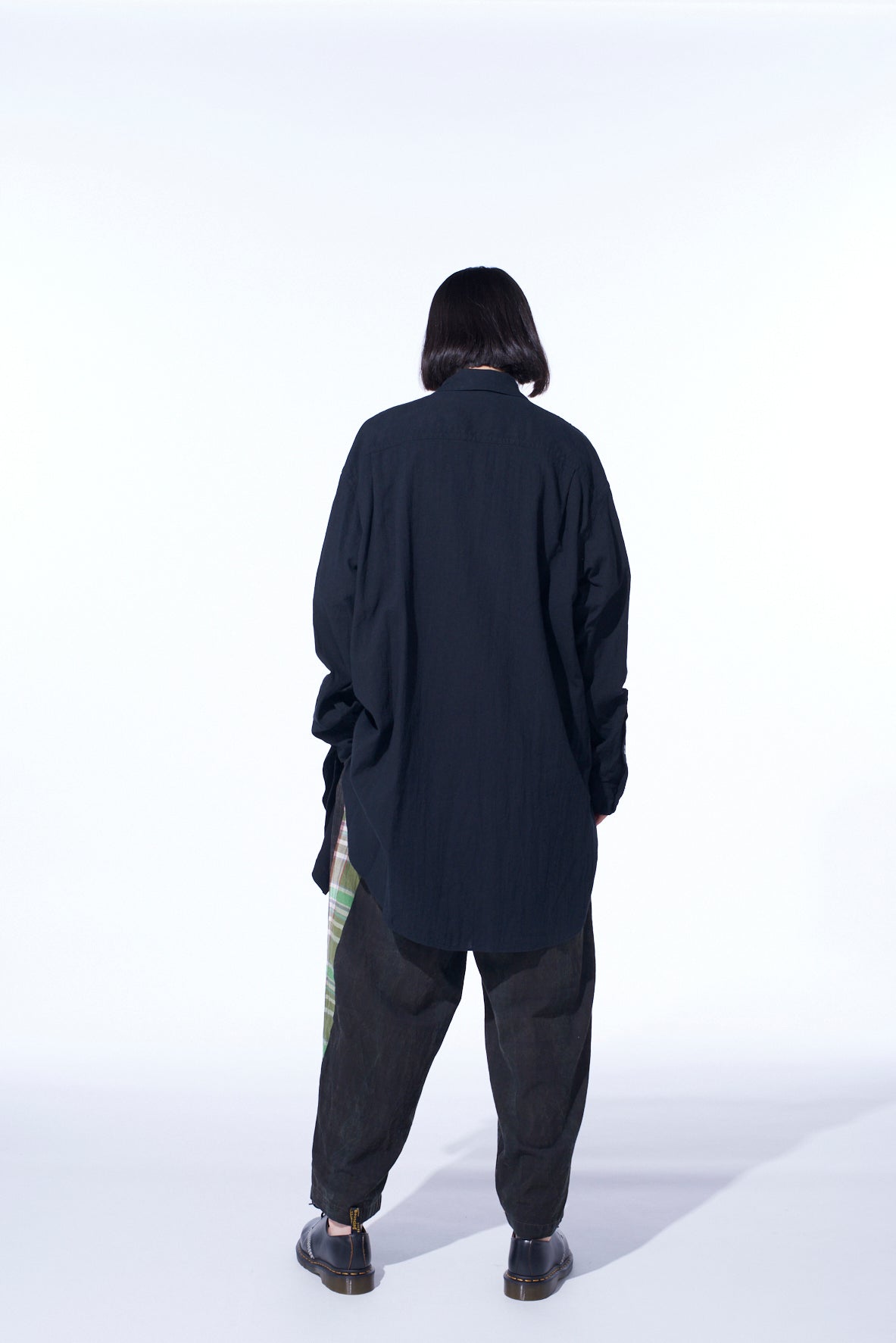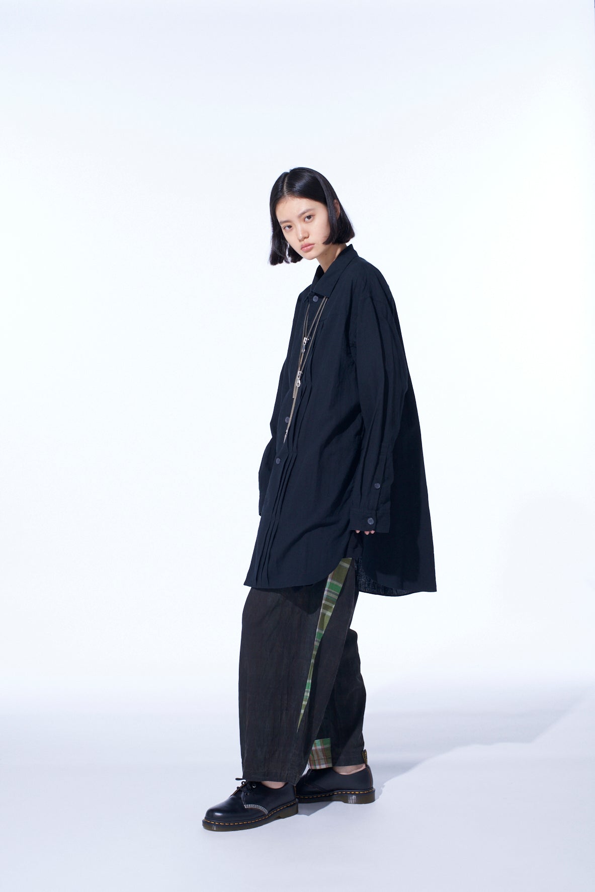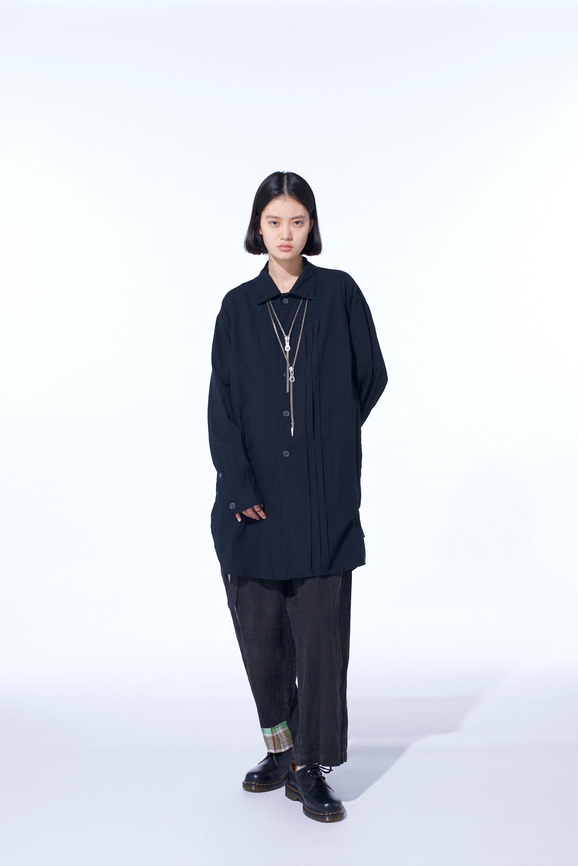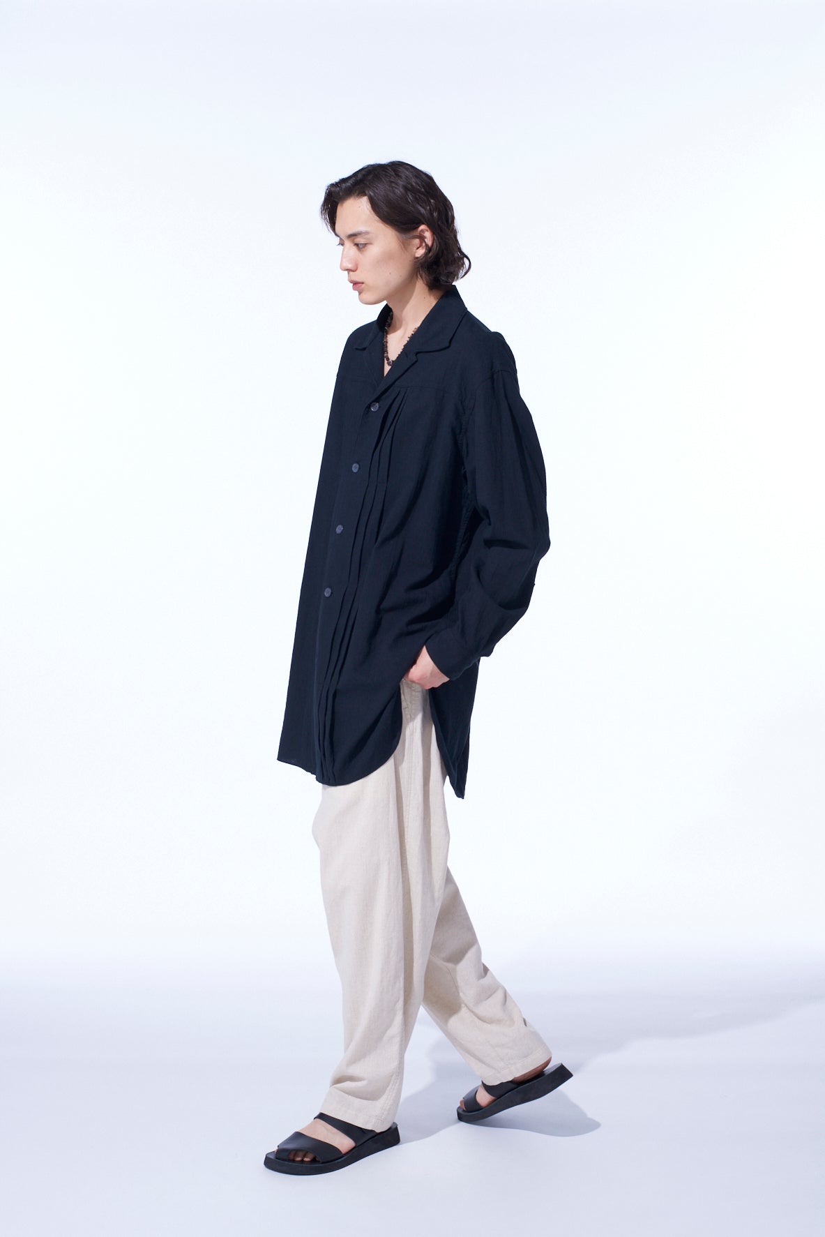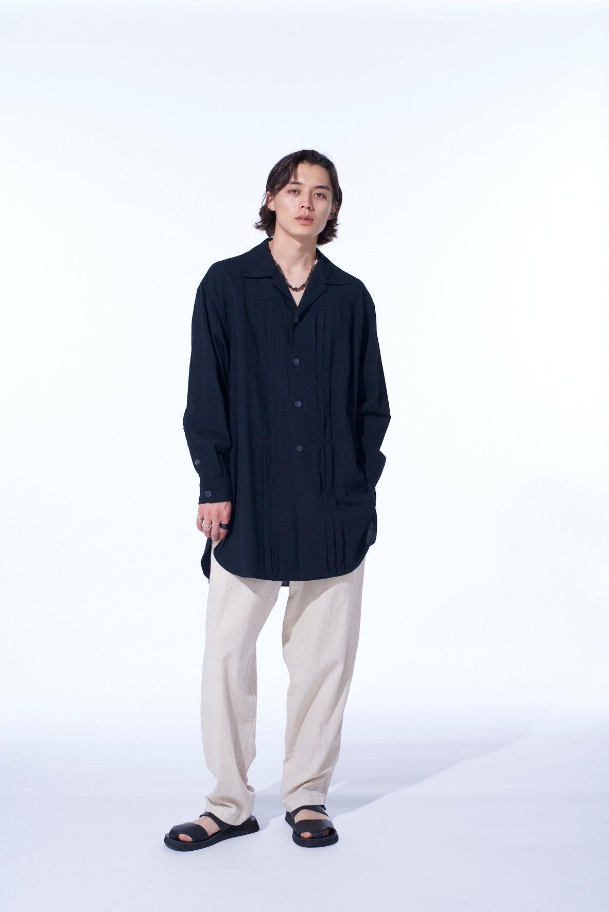COTTON/LINEN POPLIN PLEATED OVERSIZE SHIRT