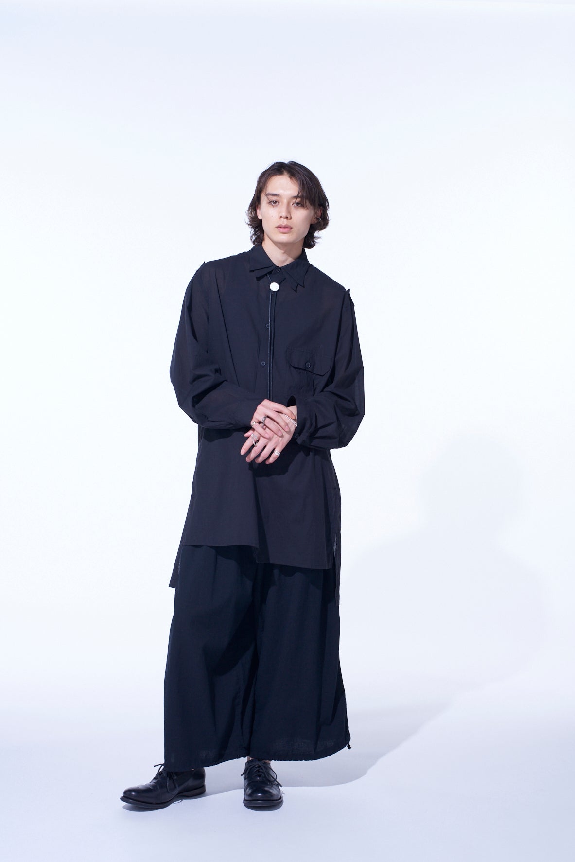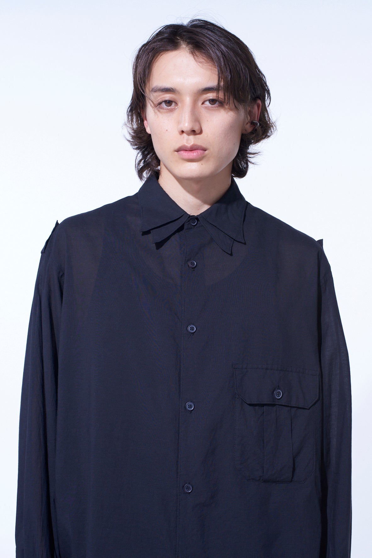 COTTON SILK LOAN OVERSIZED DOUBLE COLLAR MILITARY SHIRT