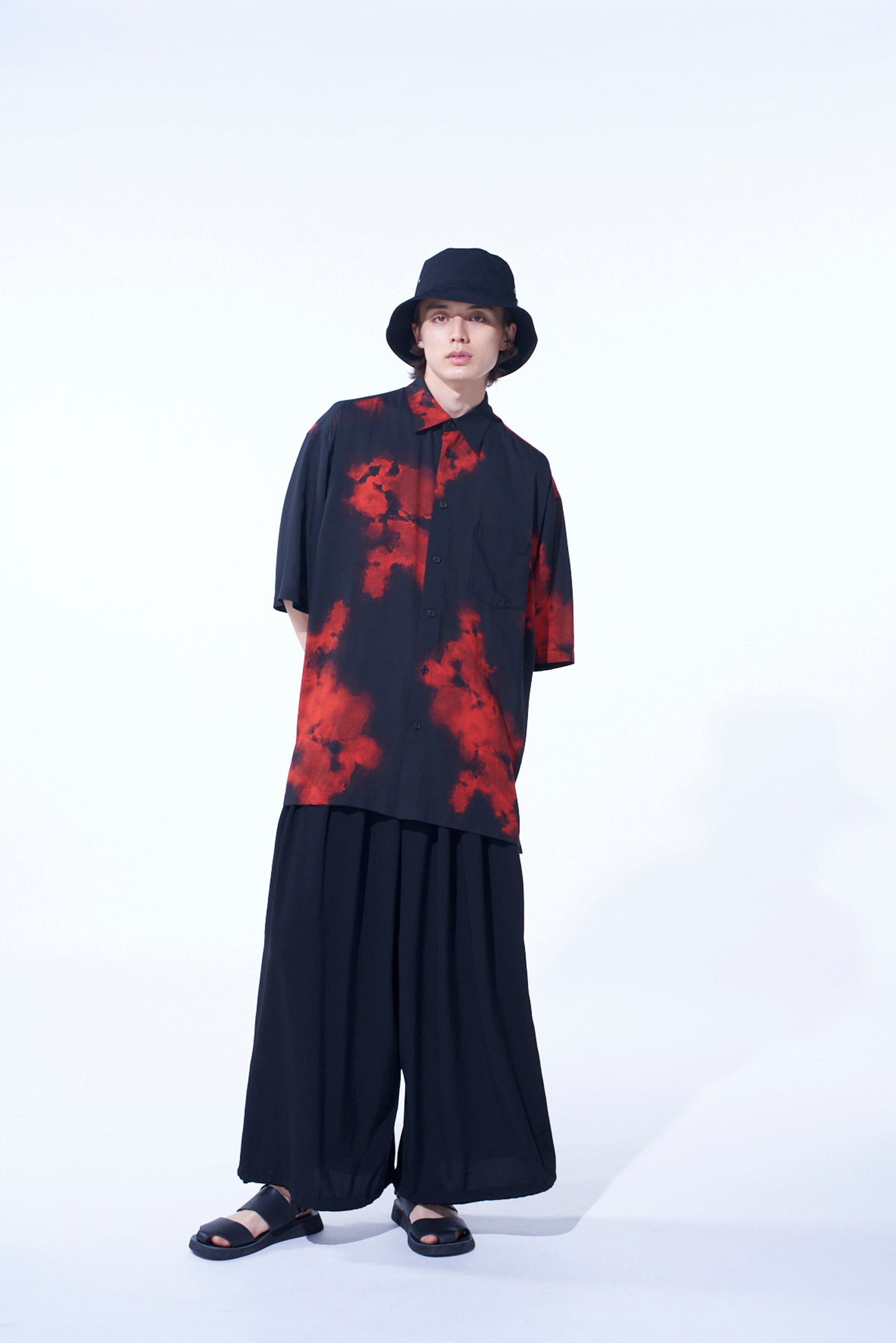 这款印花衬衫以引人注目的火焰图案吸引眼球。它拥有优雅的大廓形,袖长覆盖肘部。衬衫采用粘胶纱布制成,以其柔软的质地和独特的垂感闻名,营造出柔和的氛围。适合多种裤装的百搭造型。
