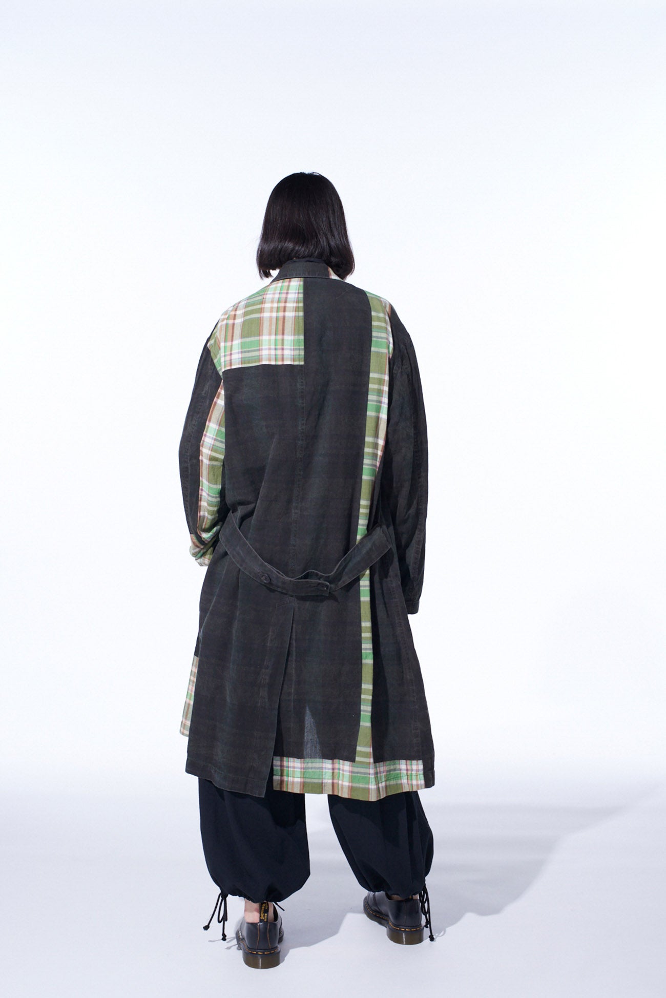 这款轻便外套采用传统的马德拉斯格子面料制成,来自钦奈,印刷的色素展现随机的格纹图案。它结合了工装细节,如翻盖口袋、侧袋和腰带,设计实用。面料独具韵味,随着时间的推移展现其魅力。