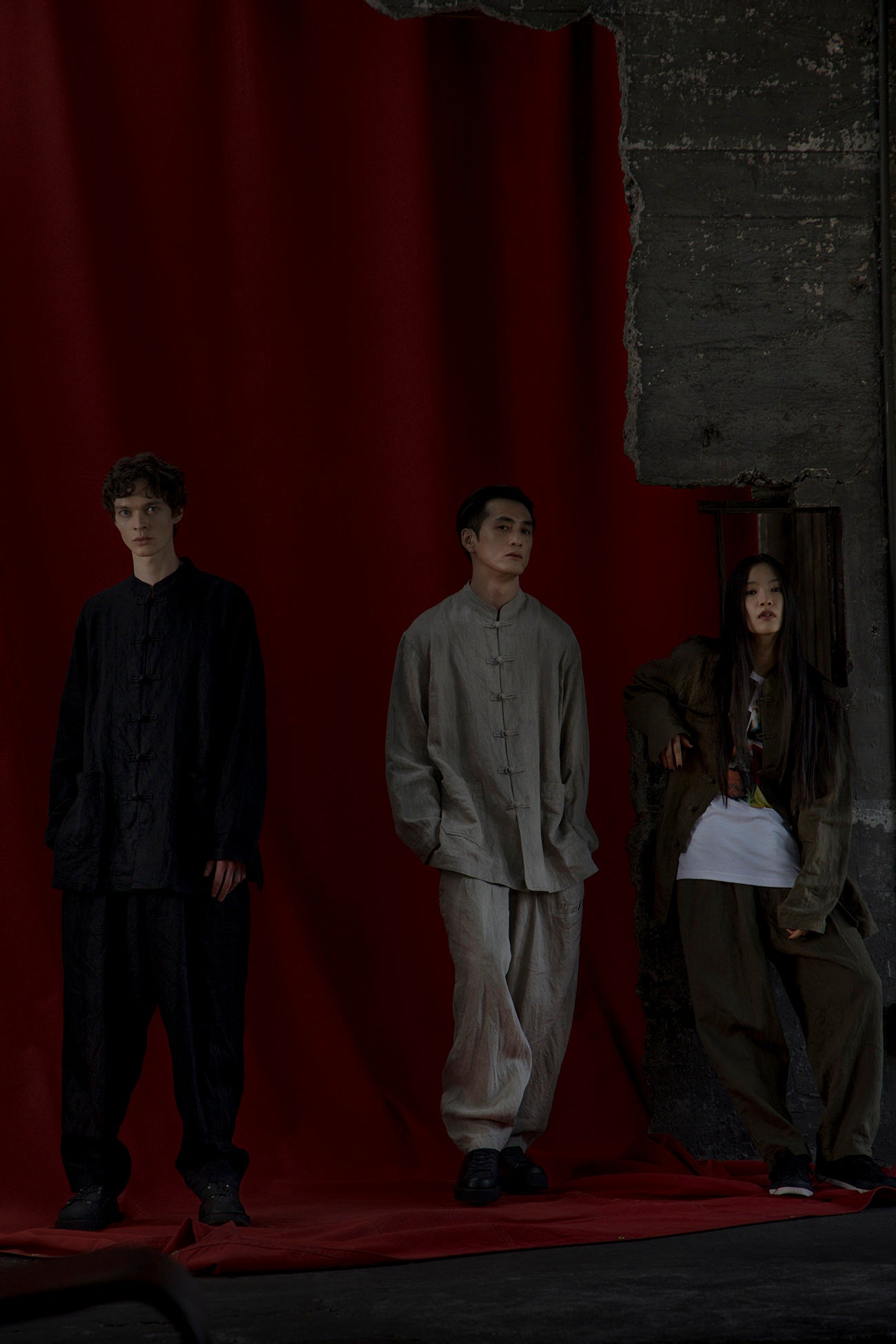 与Takanobu Kumagai的街头品牌GDC的首次合作创造出独特的China夹克。采用丰富质感和垂感的flax chino布料,设计包括立领、佛珠扣、大贴袋和宽松裤型。夹克可与匹配裤子搭配,完美呈现整体造型。